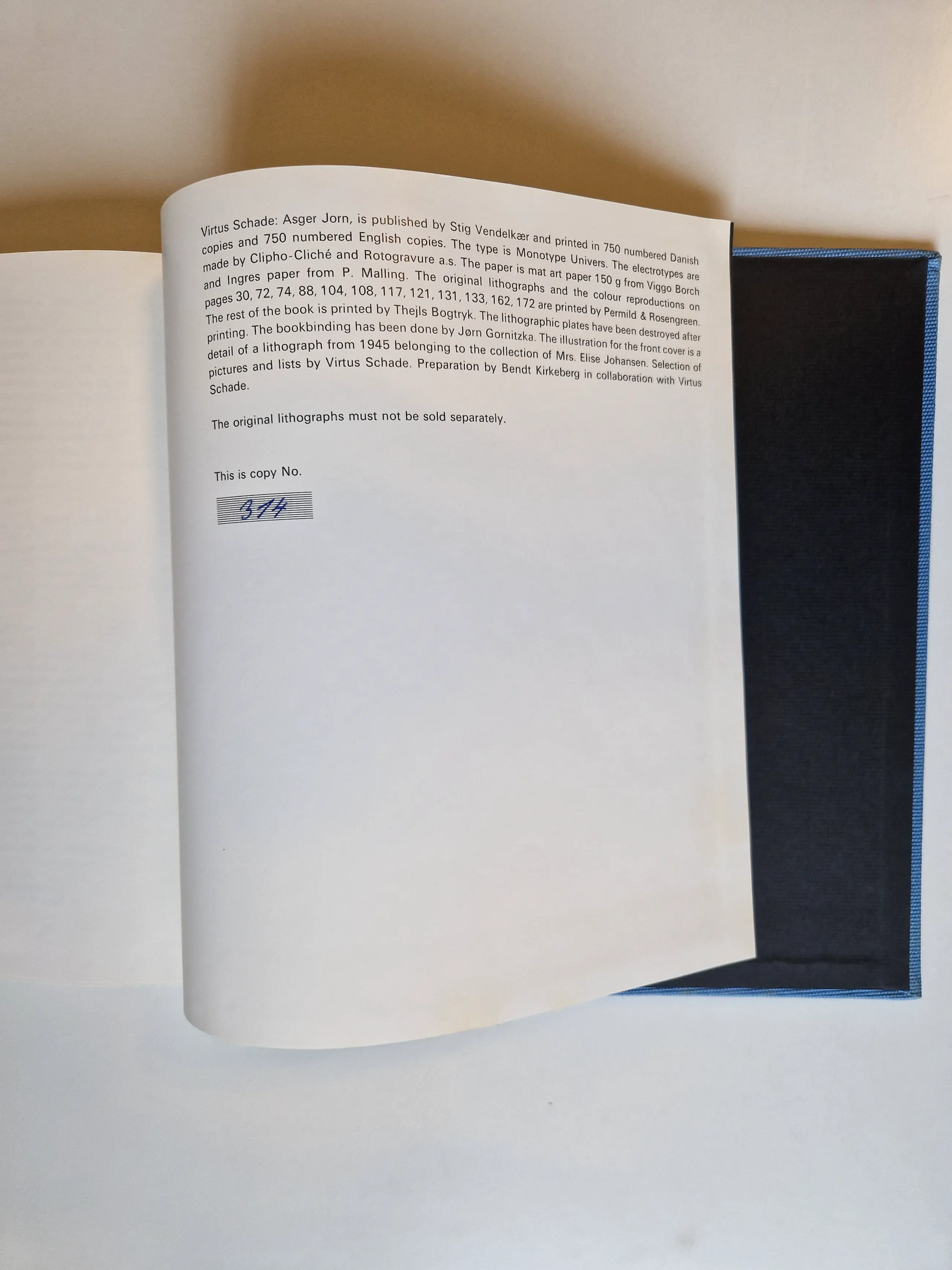 - Bijzonderheden: Nr. 314 in een gelimiteerde uitgave van 750 Hardcover met omslag, in originele (besch.) stofhoes. Asger Jorn. Met vier originele kleurenlitho's. Gedrukt in een oplage van 750 Engelstalige exemplaren. Schone en strakke inhoud.
