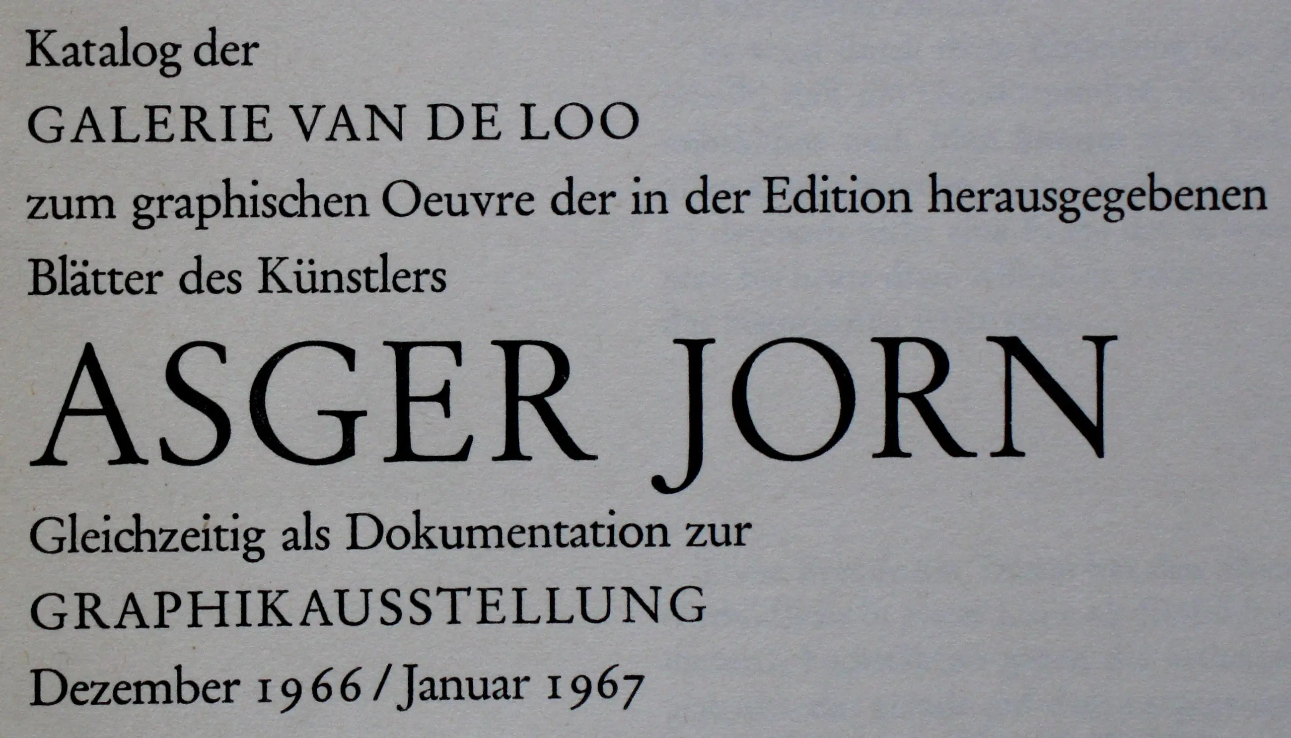 Tentoonstellingscatalogus van Asger Jorn. Galerie van de Loo. Afmetingen boekje: H23.5 x b23cm. Het boekje is niet gesigneerd.