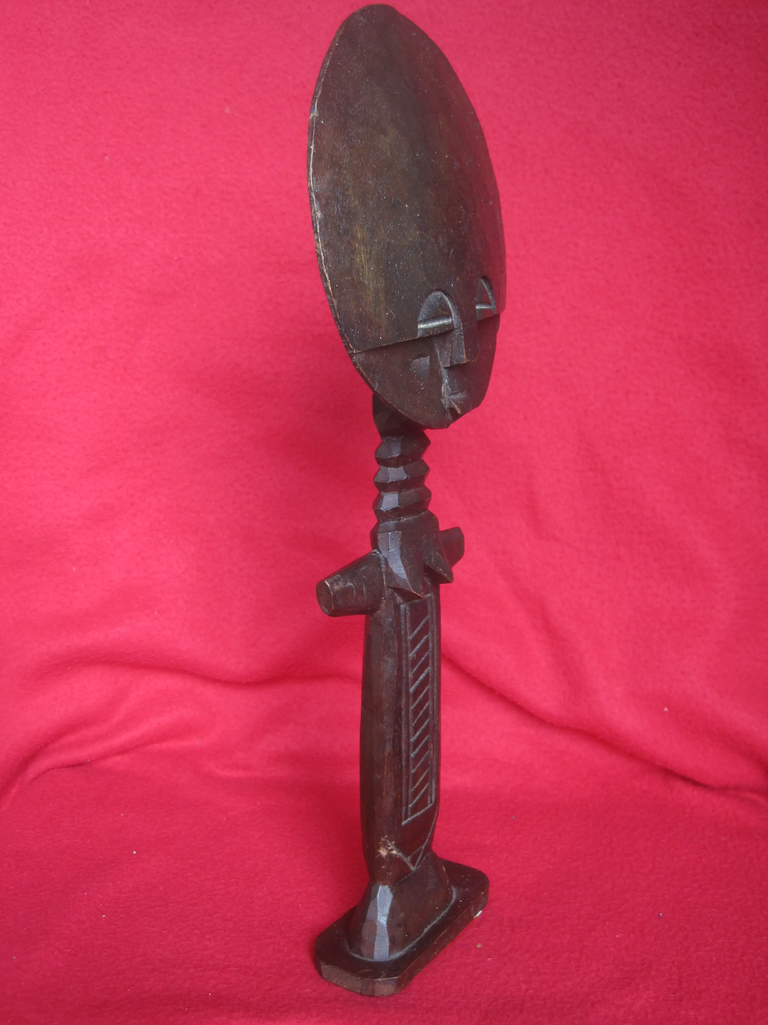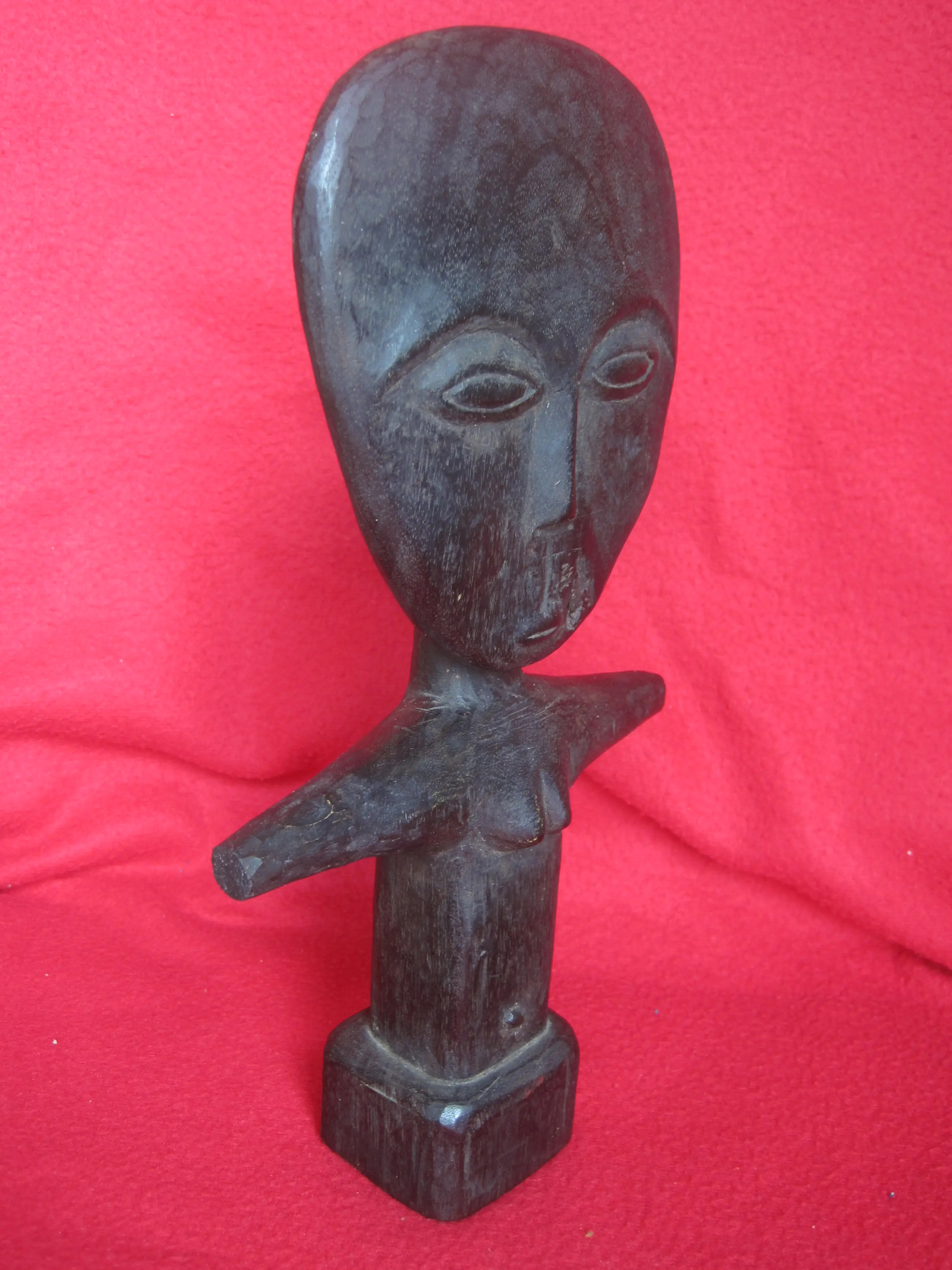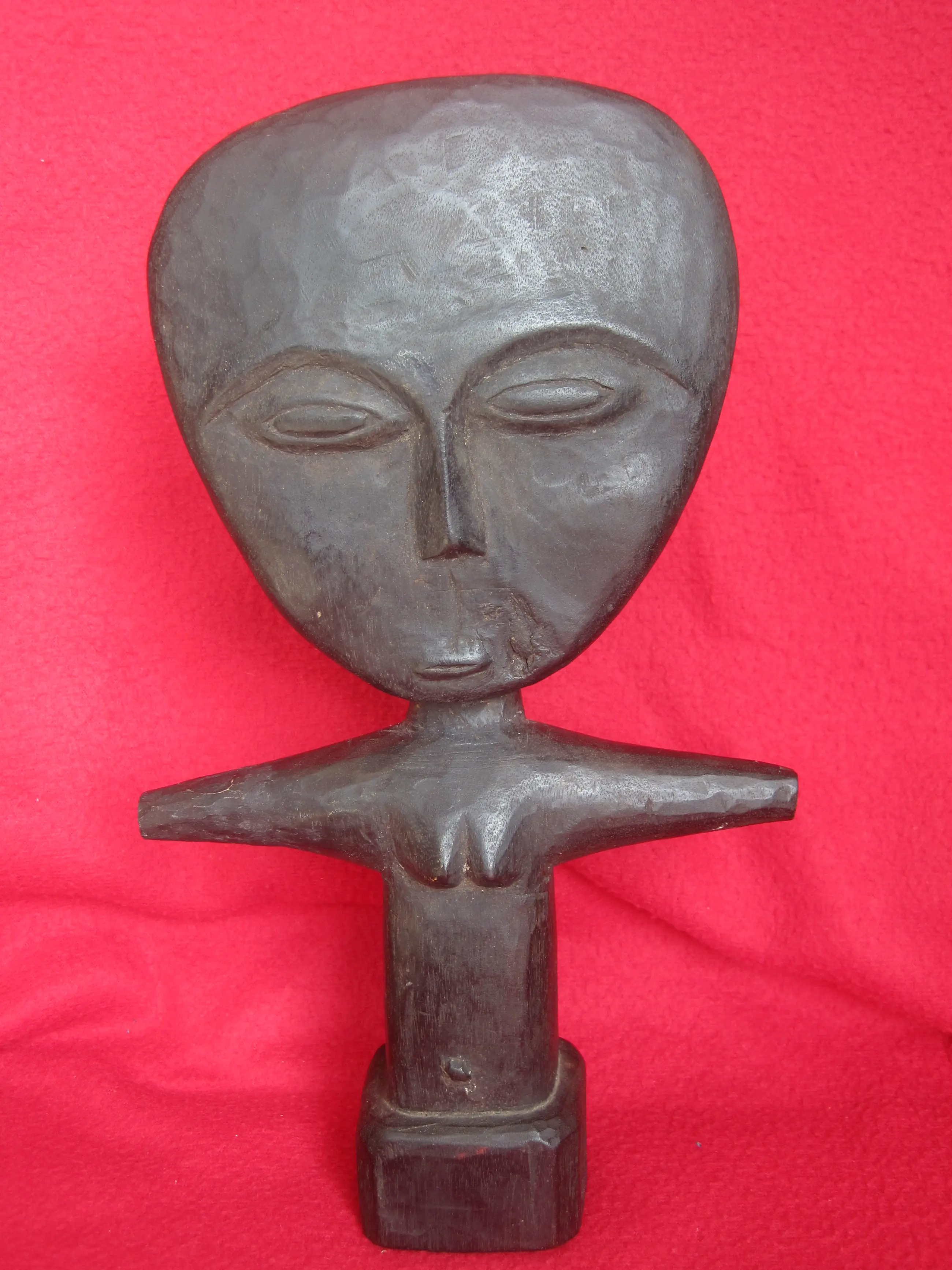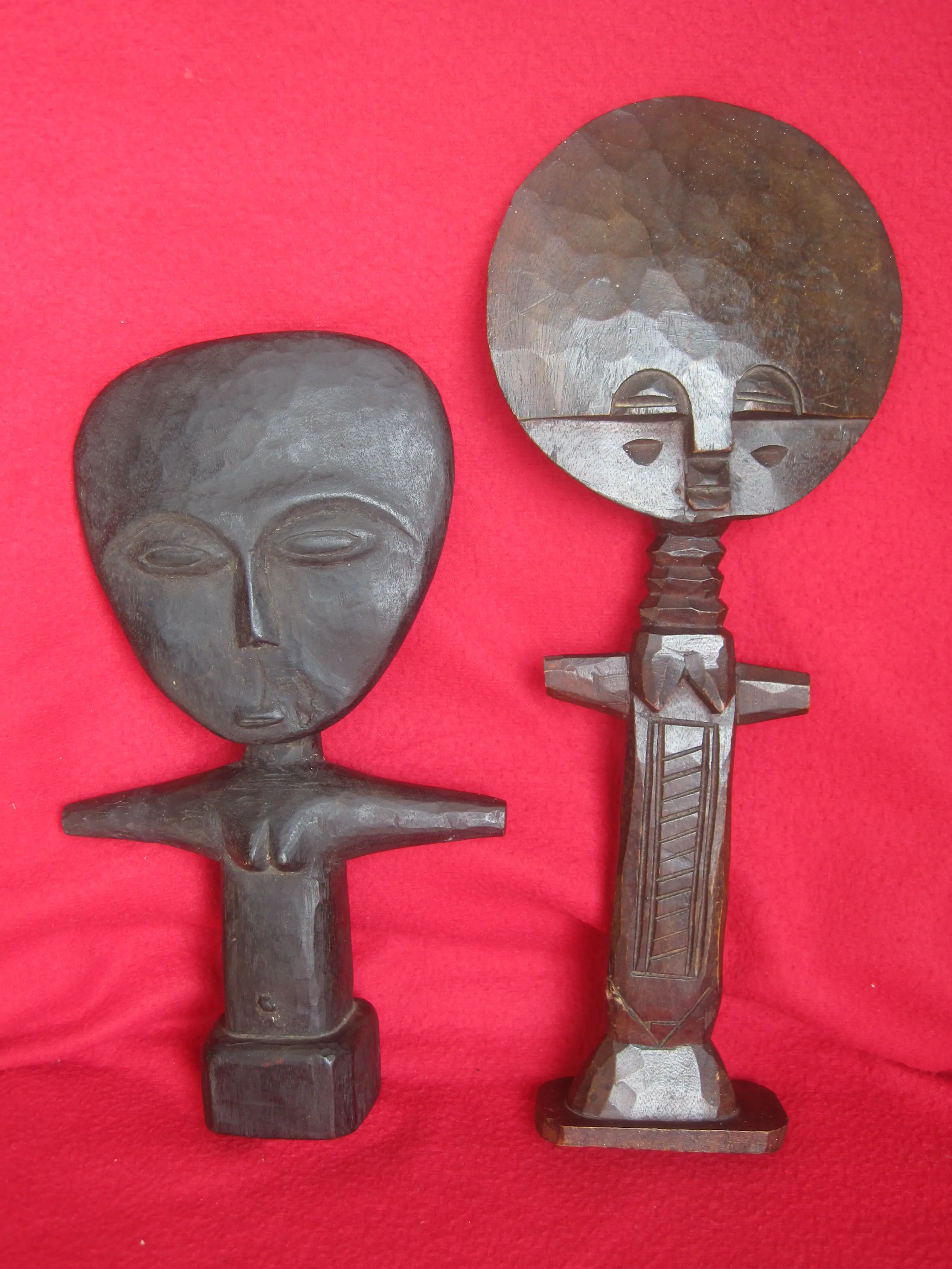 Twee fraaie zgn. Akuaba vruchtbaarheidsbeelden van het Ashanti /Asante volk uit Ghana. Deze beelden/poppen werden gedragen door vrouwen die zwanger wilden worden. De grootste pop meet 36 cm in lengte, 16 cm breed en 5,5 cm diep. Gewicht 200 gram. De andere pop meet 28 cm in lengte, 14 cm breed en 4,5 cm diep. Gewicht 300 gram.