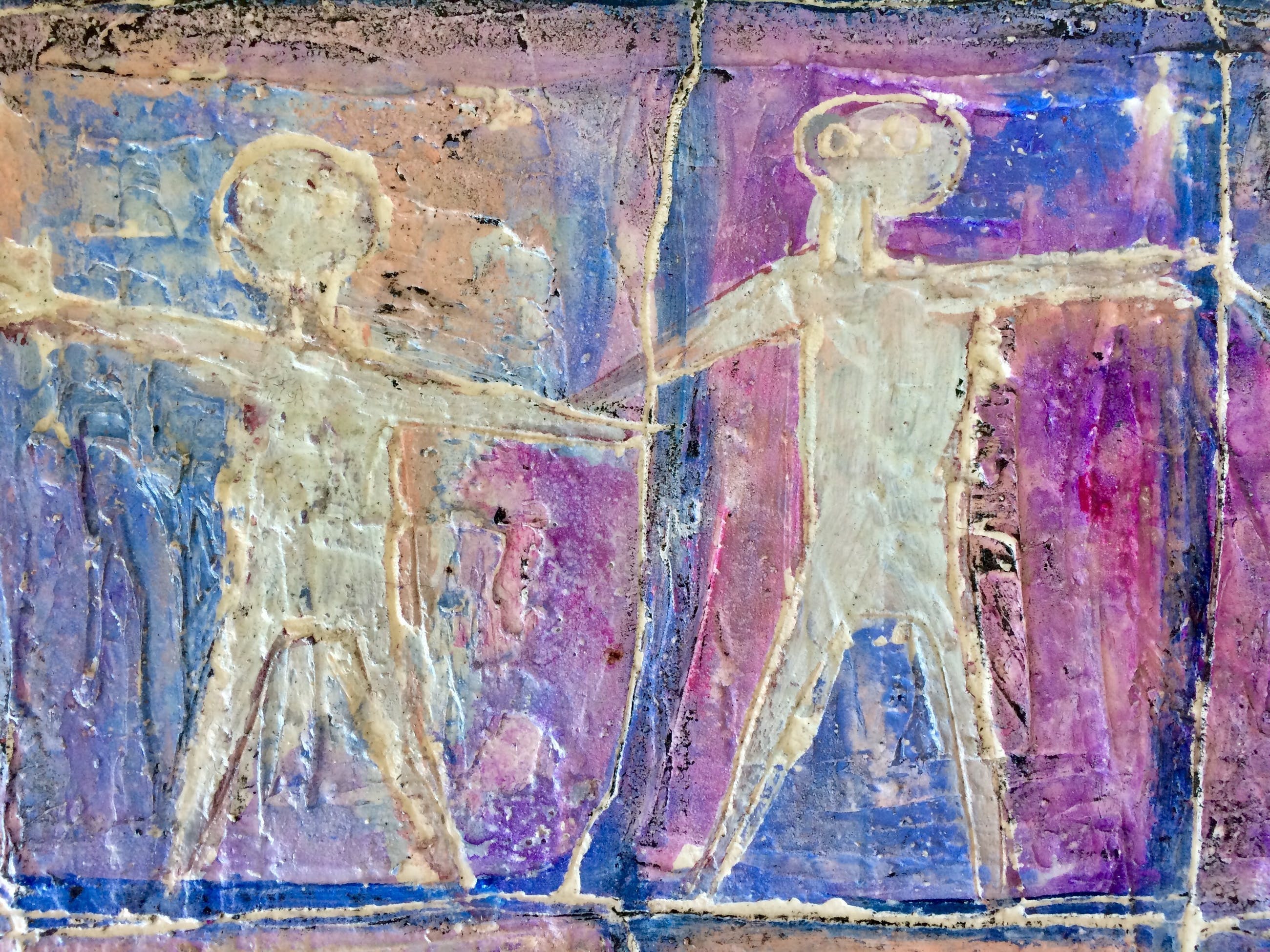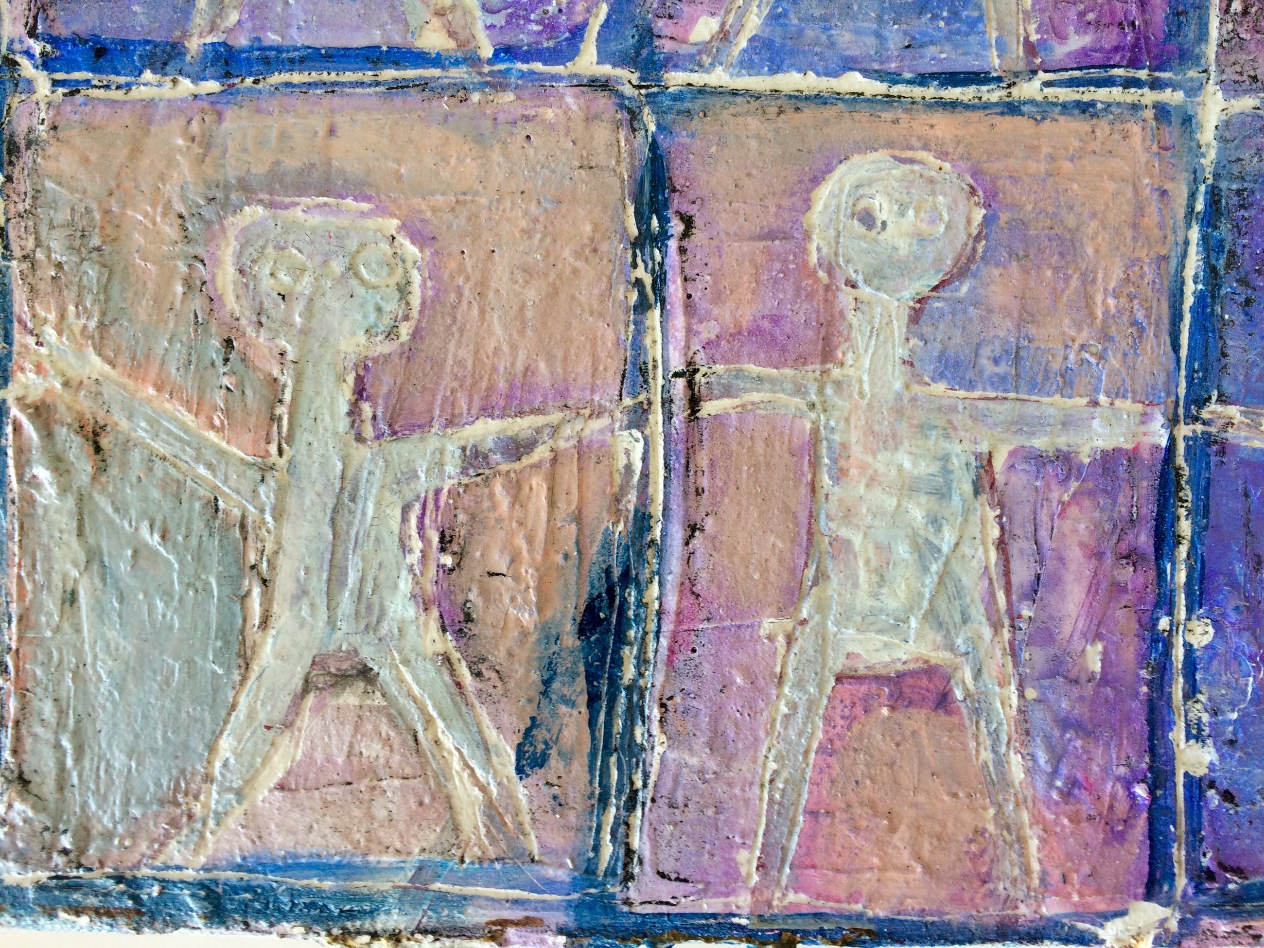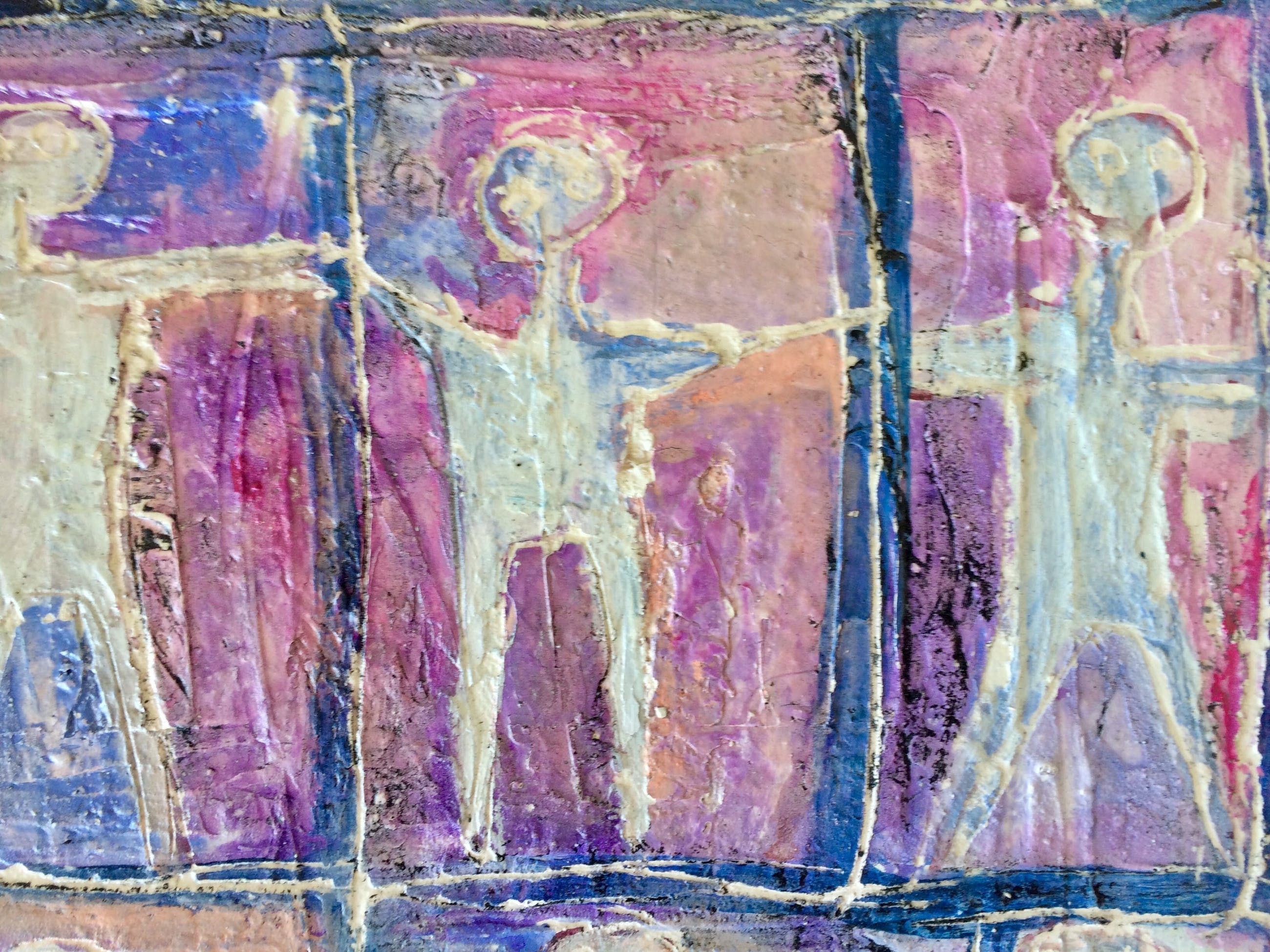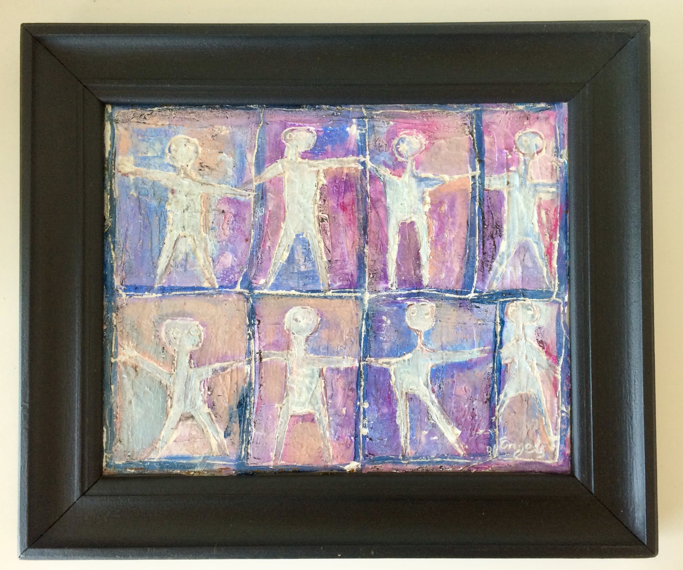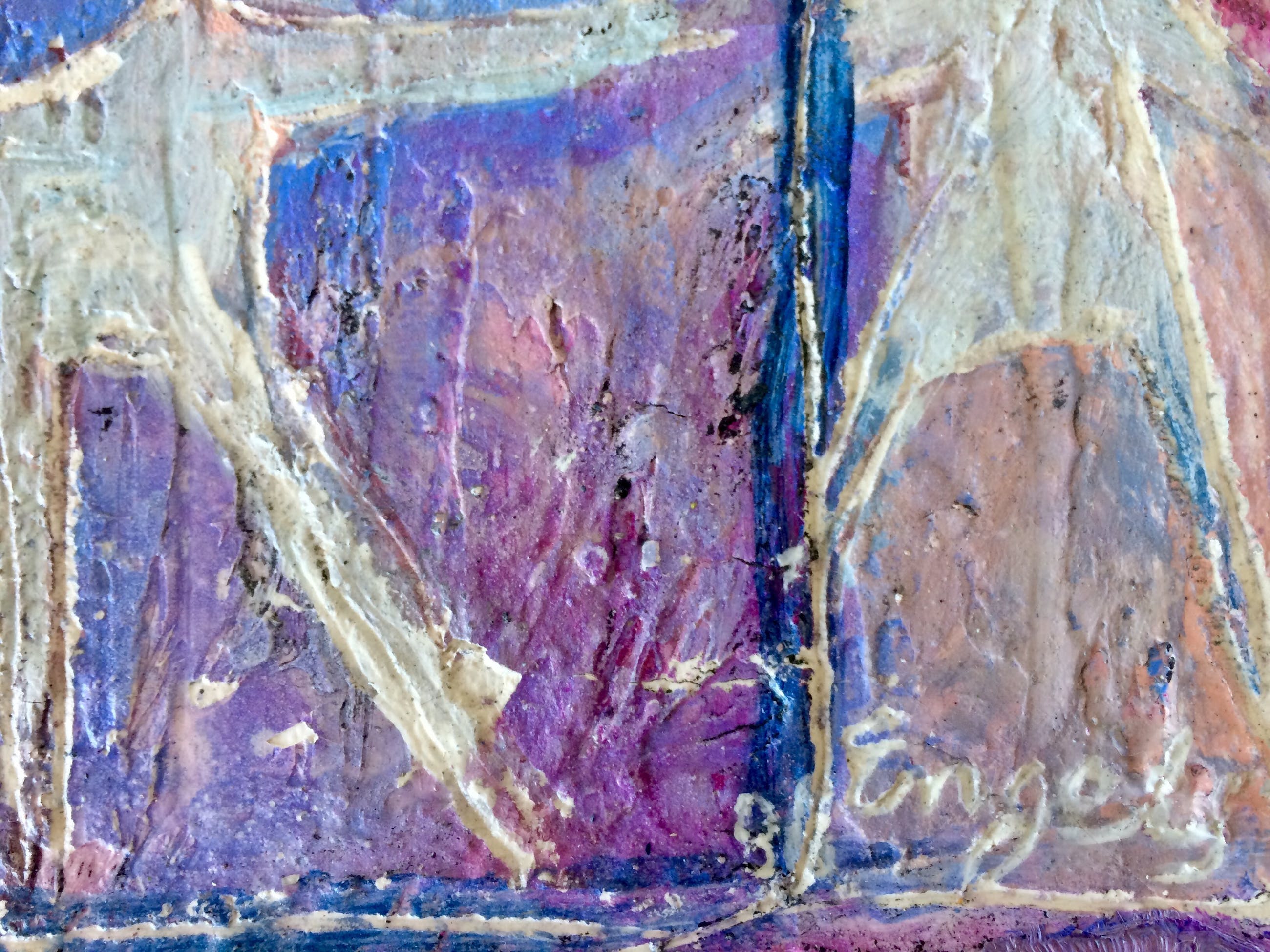 Prachtig vroeg werk van de bekende kunstenares Astrid Engels. Dik opgezet en bewerkt met kwast en paletmes. Het schilderij verkeerd in goede staat.