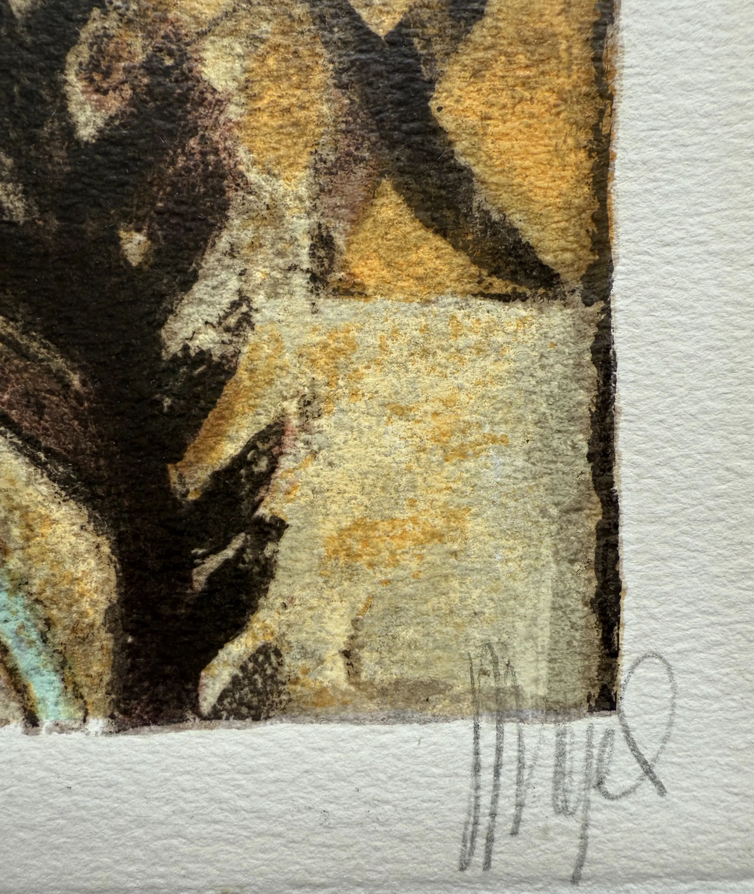 Mooie en zeldzame zeefdruk van de hand van Astrid Engels. Papierformaat is 22x20cm.