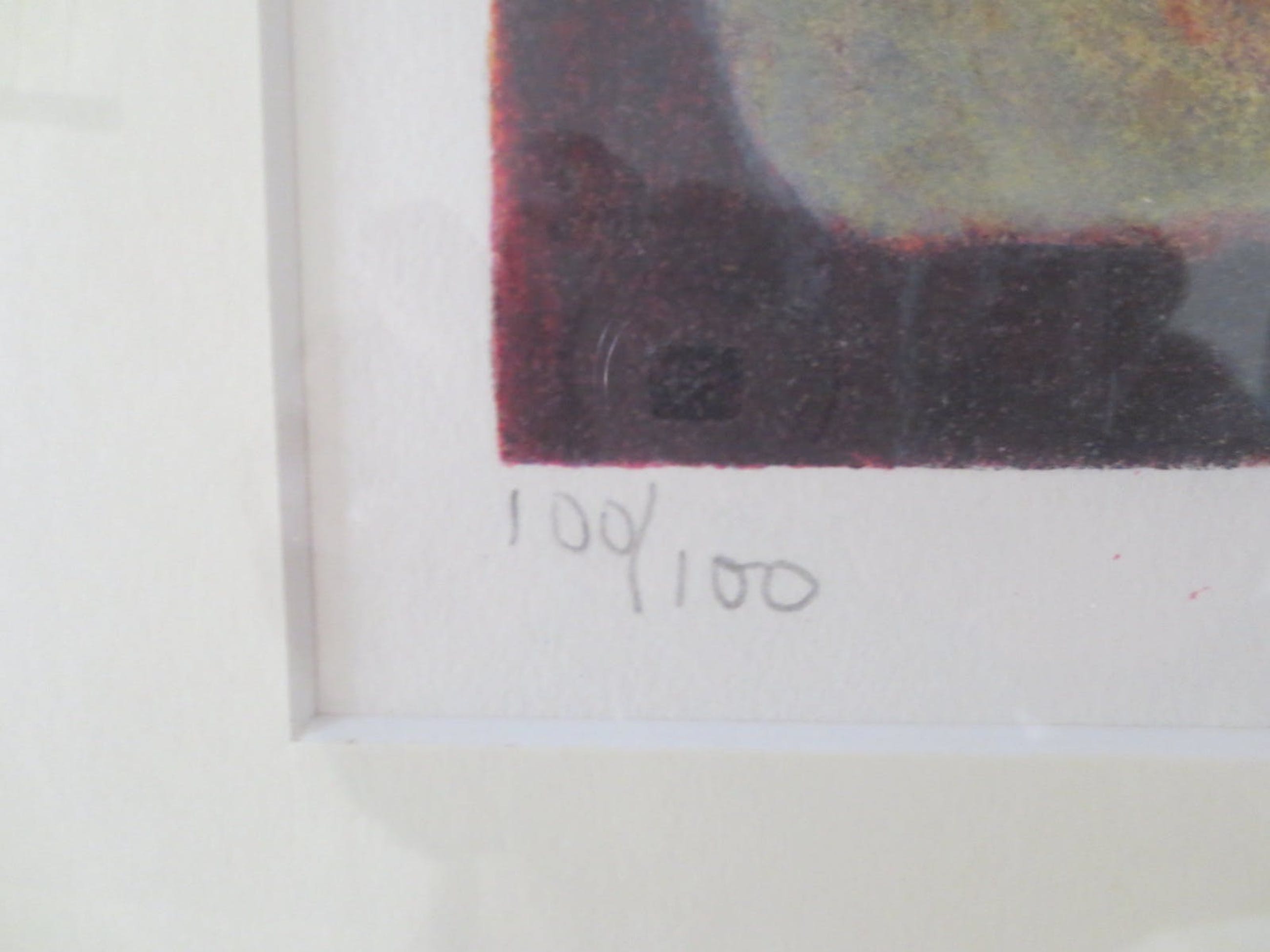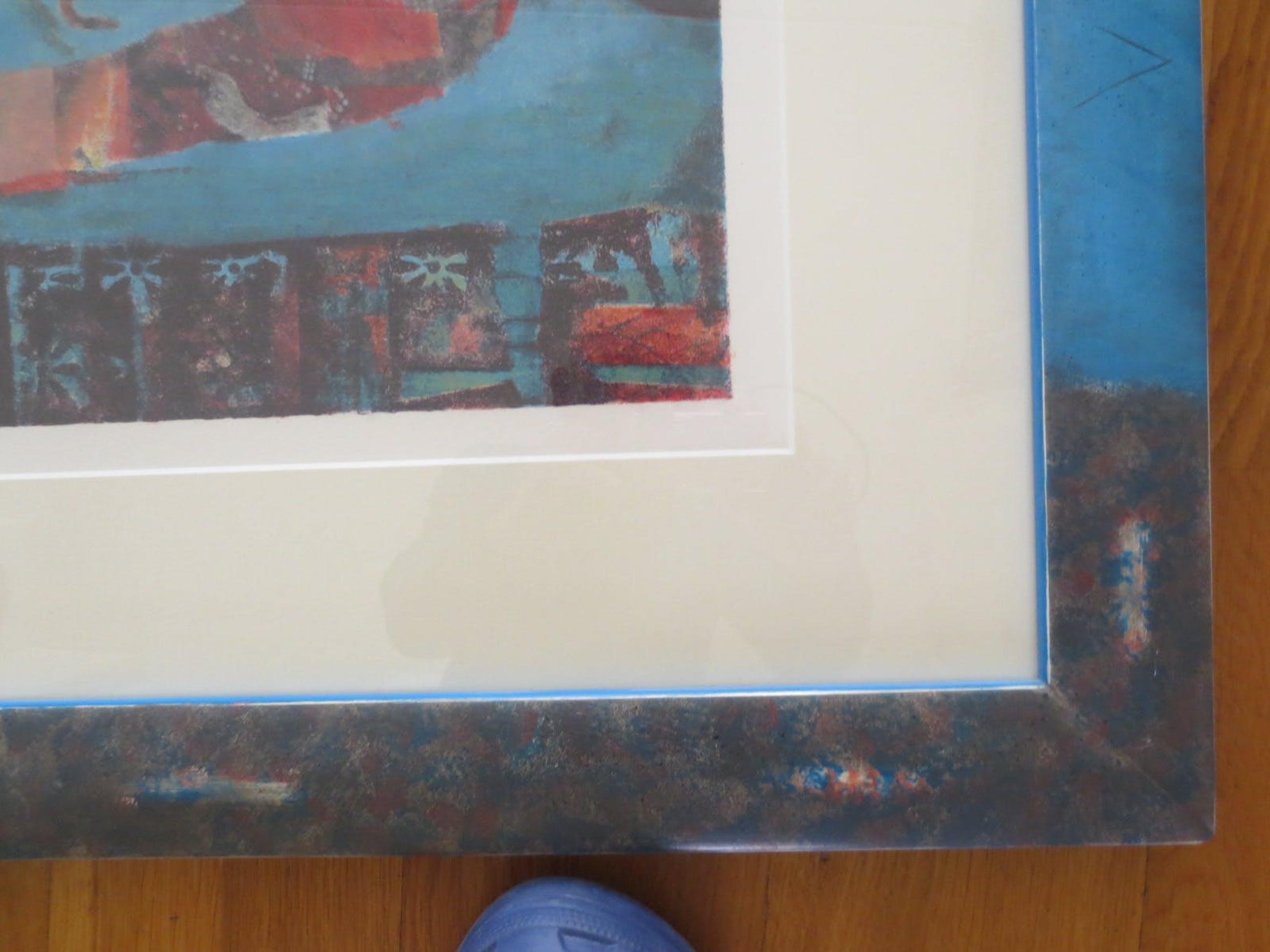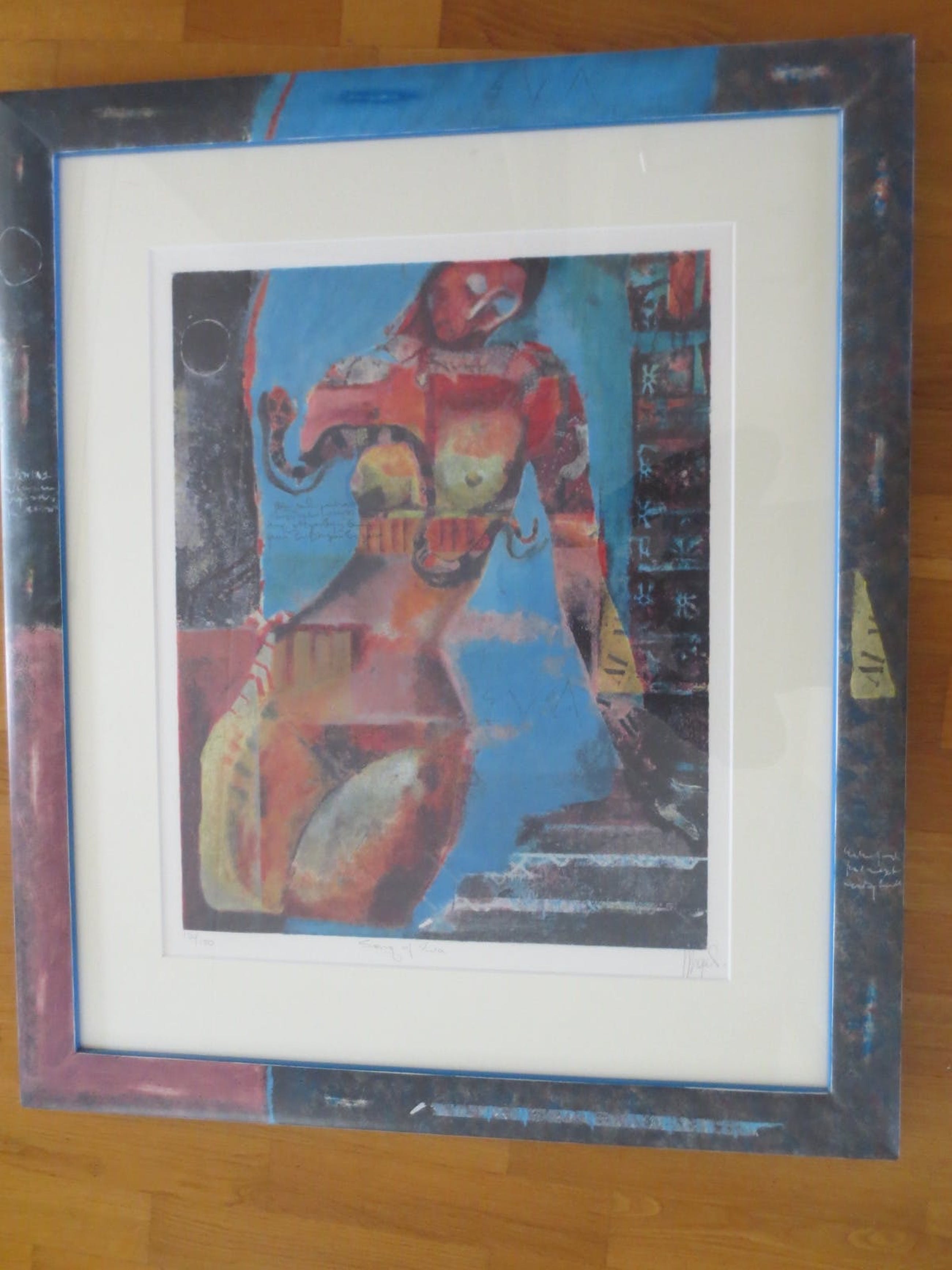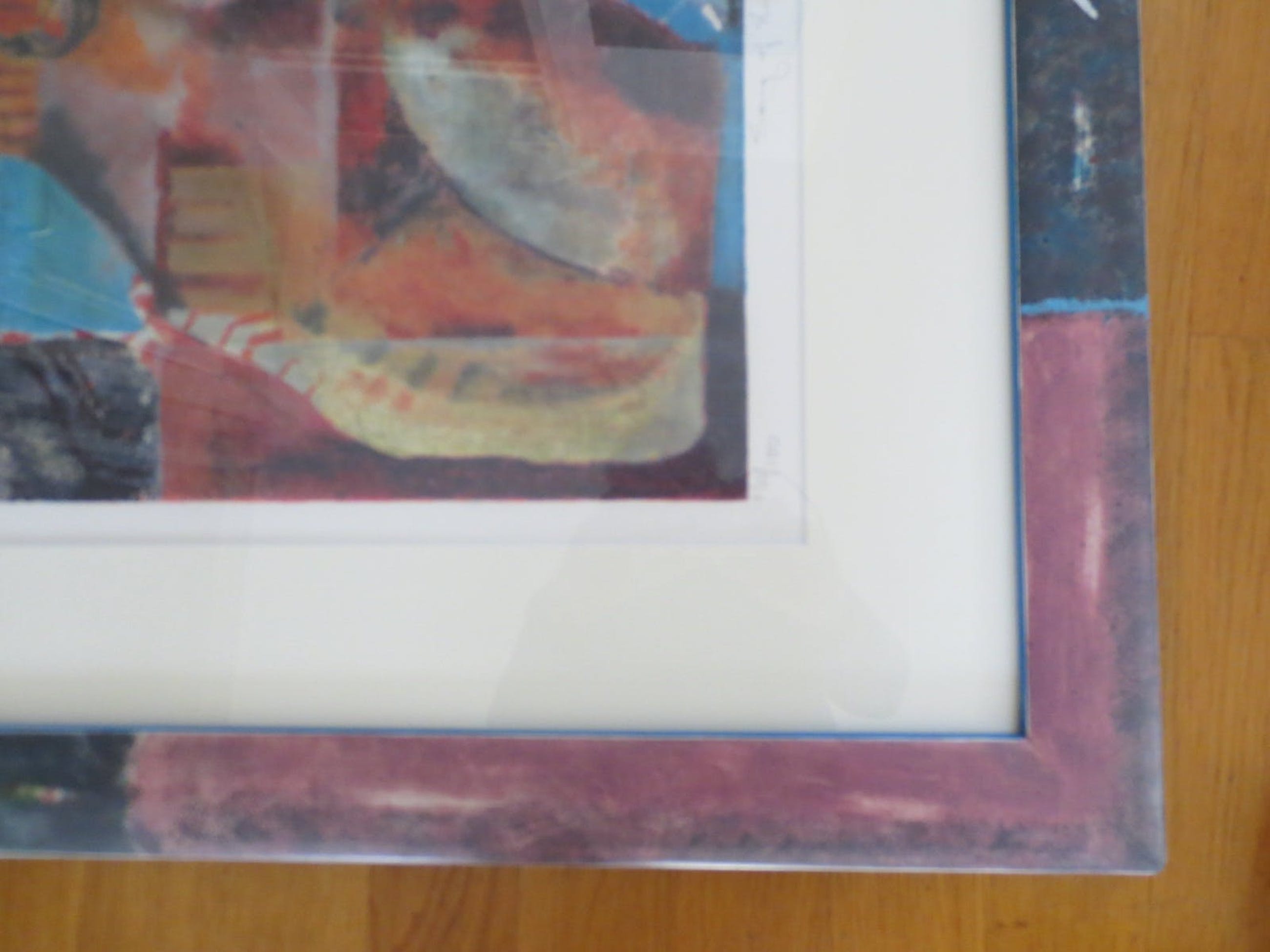 ingelijst in een met de hand ingekleurde exclusieve lijst van 6 cm breed en 2.5 cm. dik.