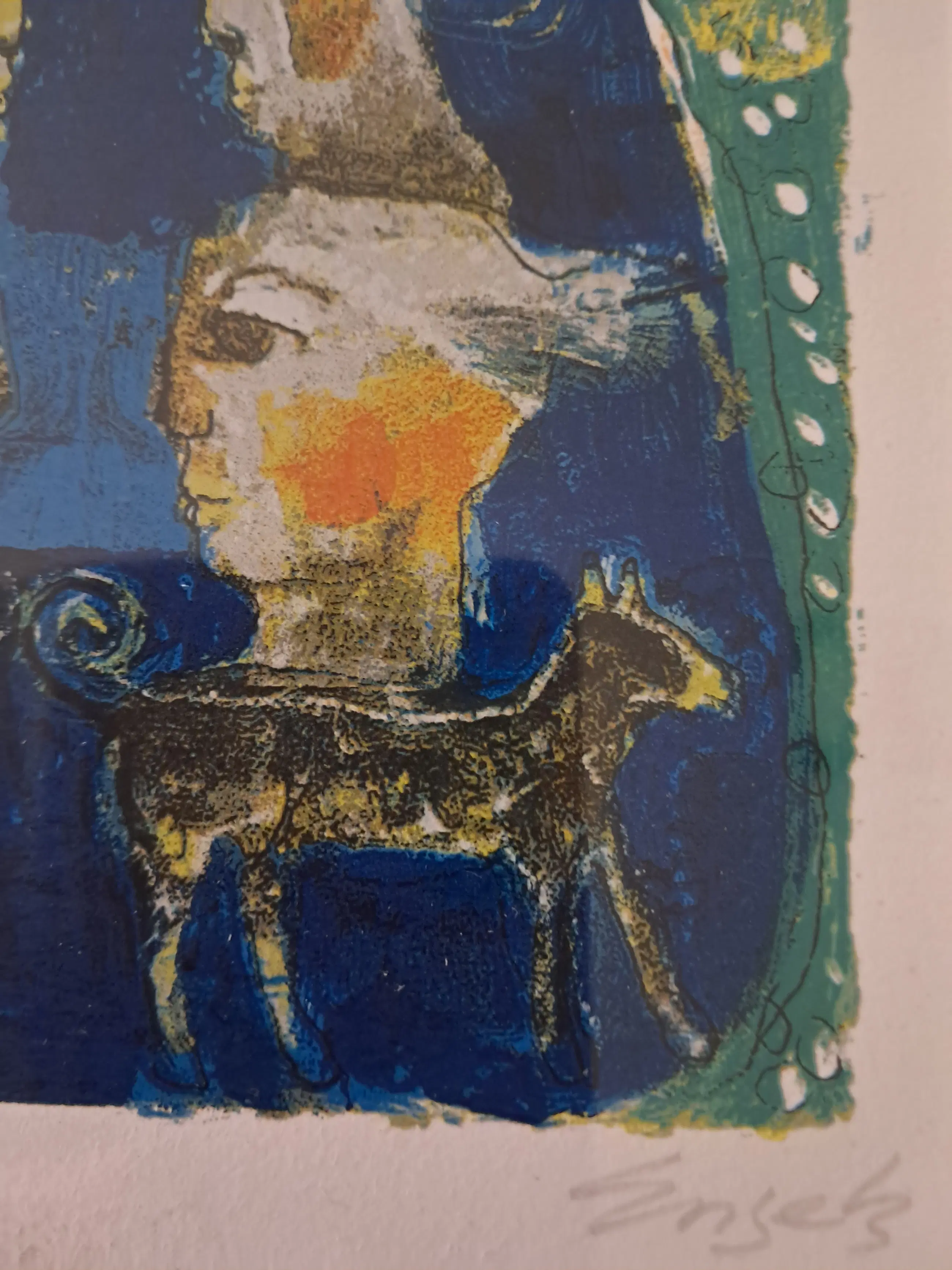 Mooie zeefdruk van Astrid Engels. Ingelijst in een goudkleurige aluminium lijst.