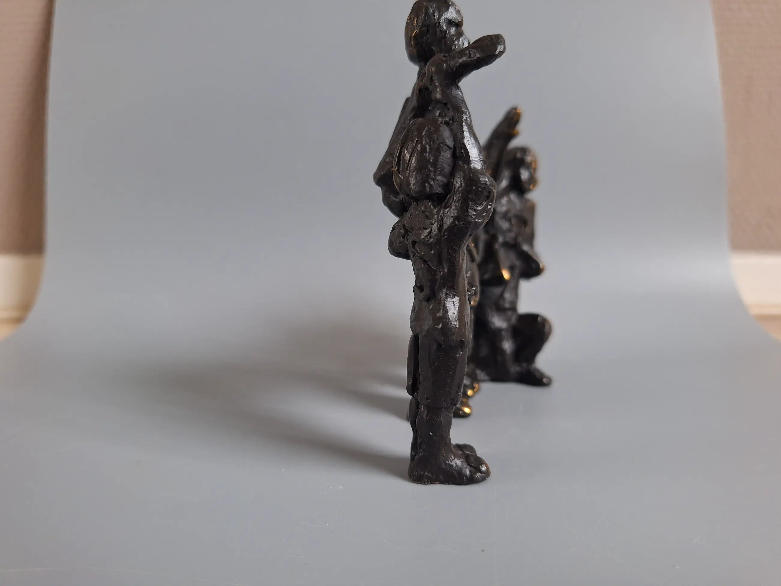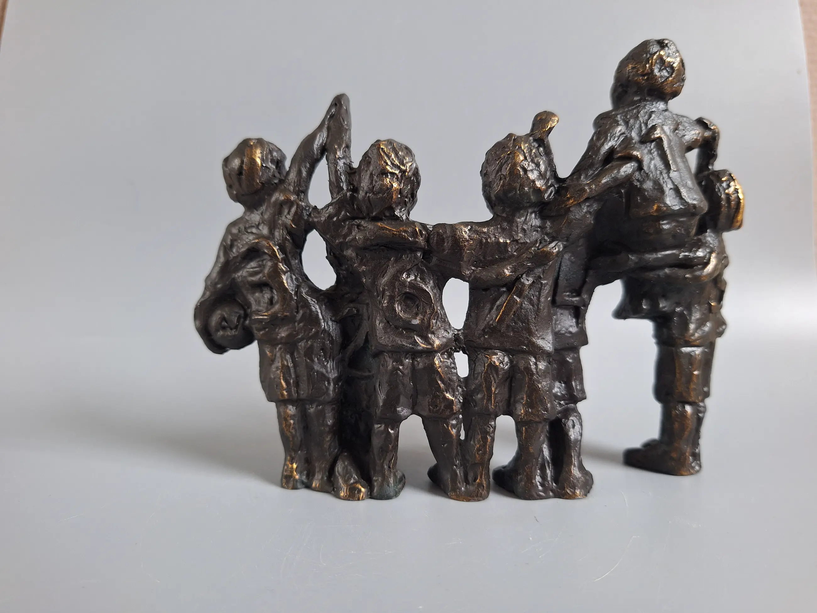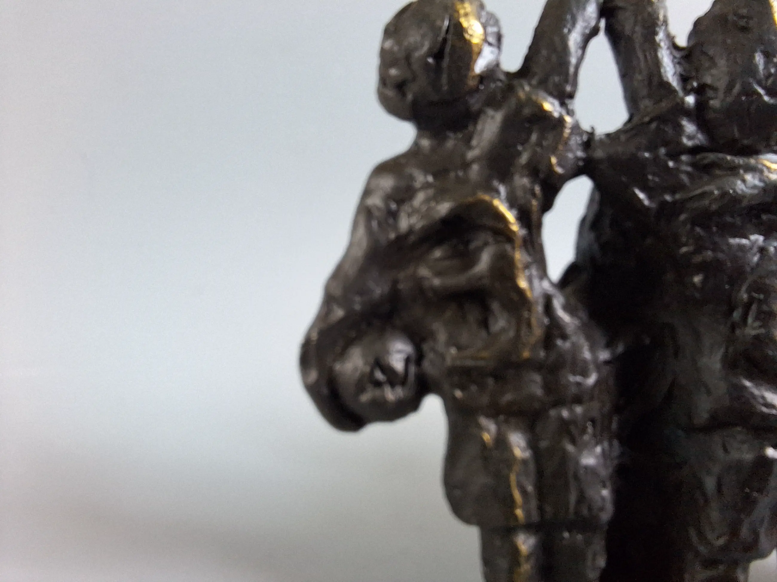 Prachtig bronzen sculptuur Astrid Veldhuyzen-Koppen. Titel van het kunstwerk; " A winning team" 12,5 x 16,5 x 4 cm 1160 gram