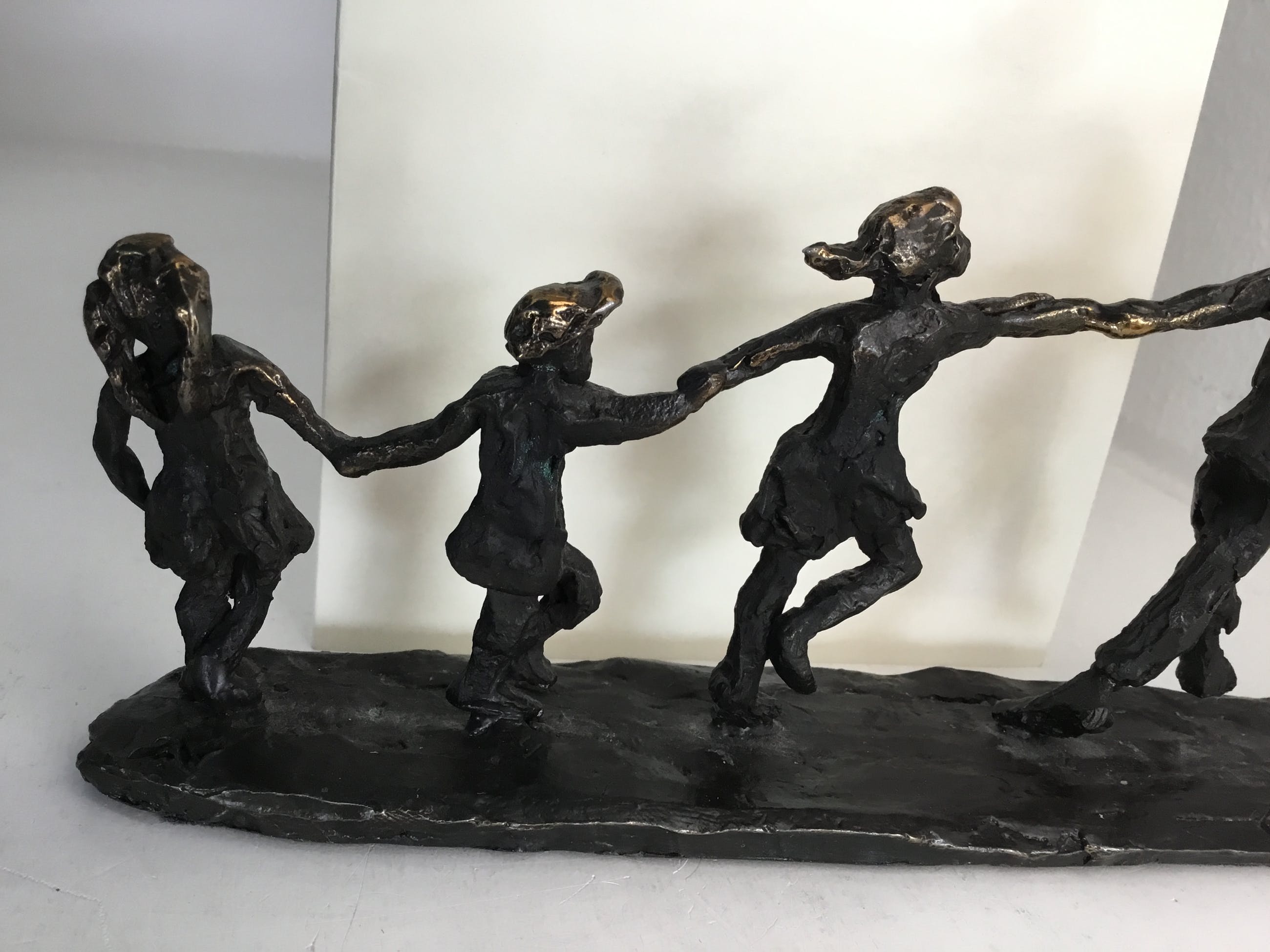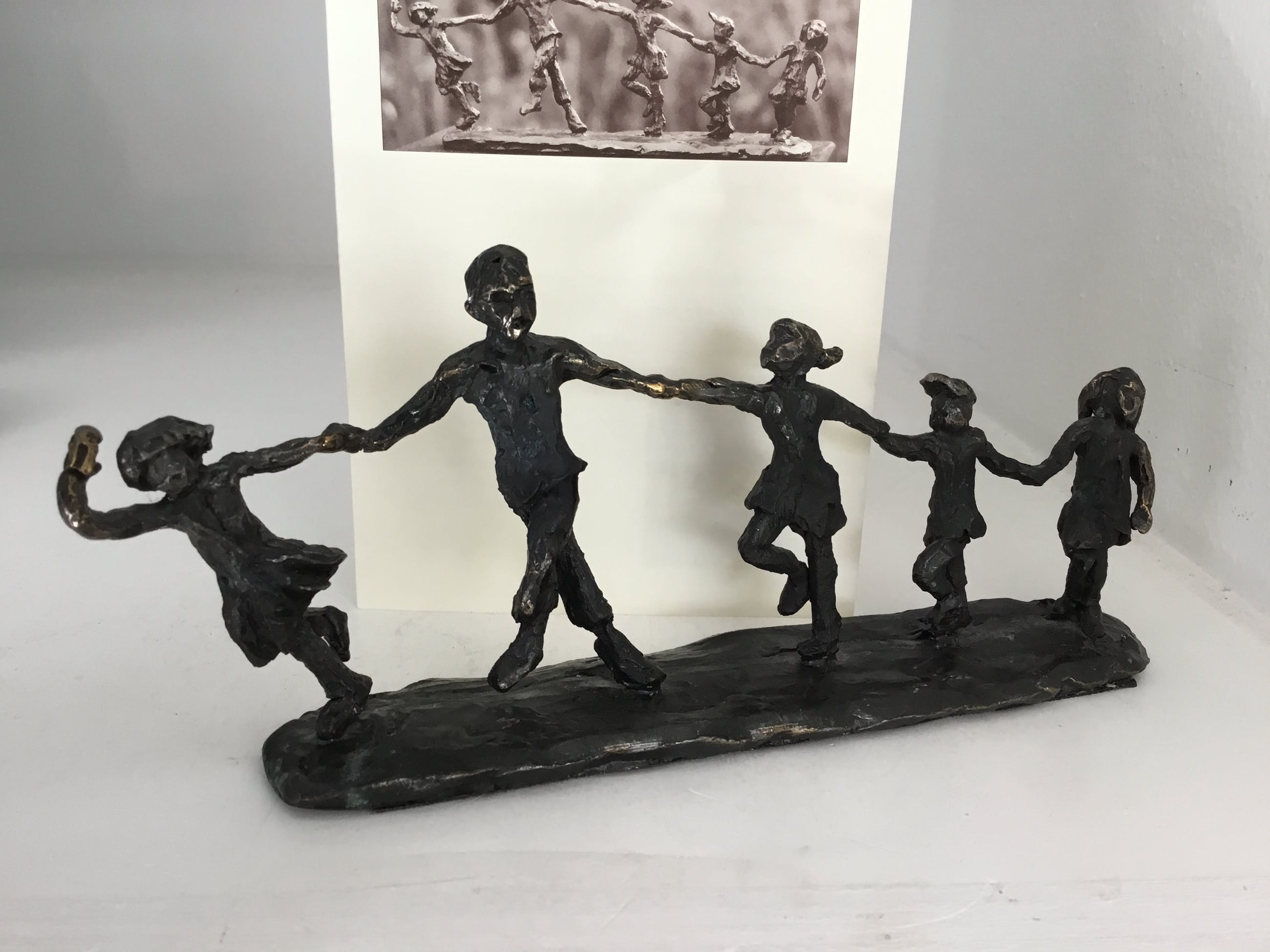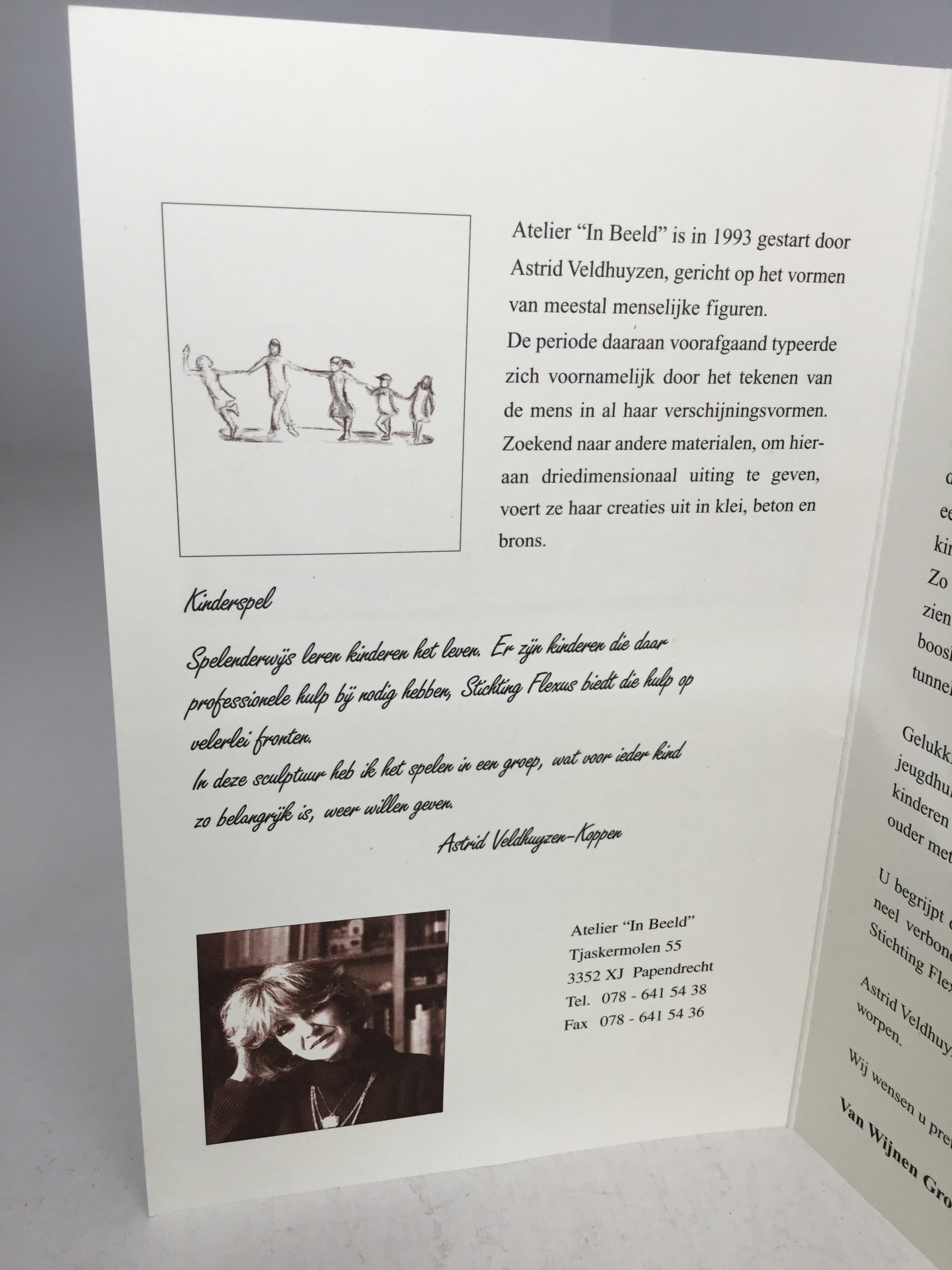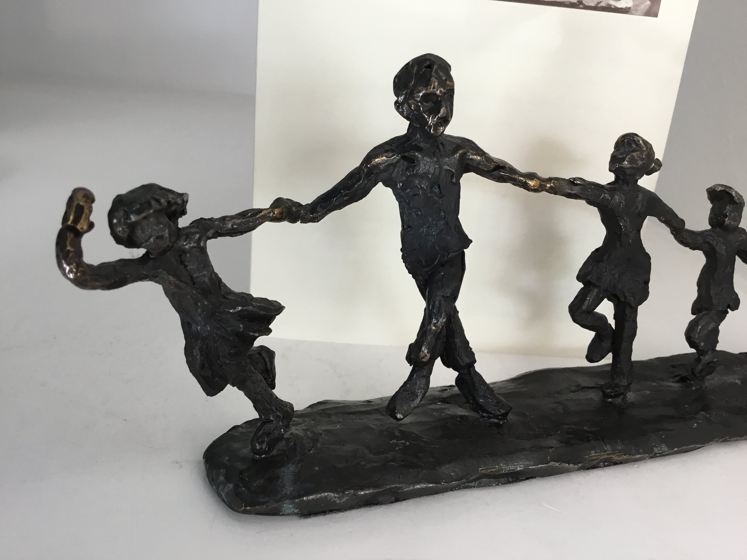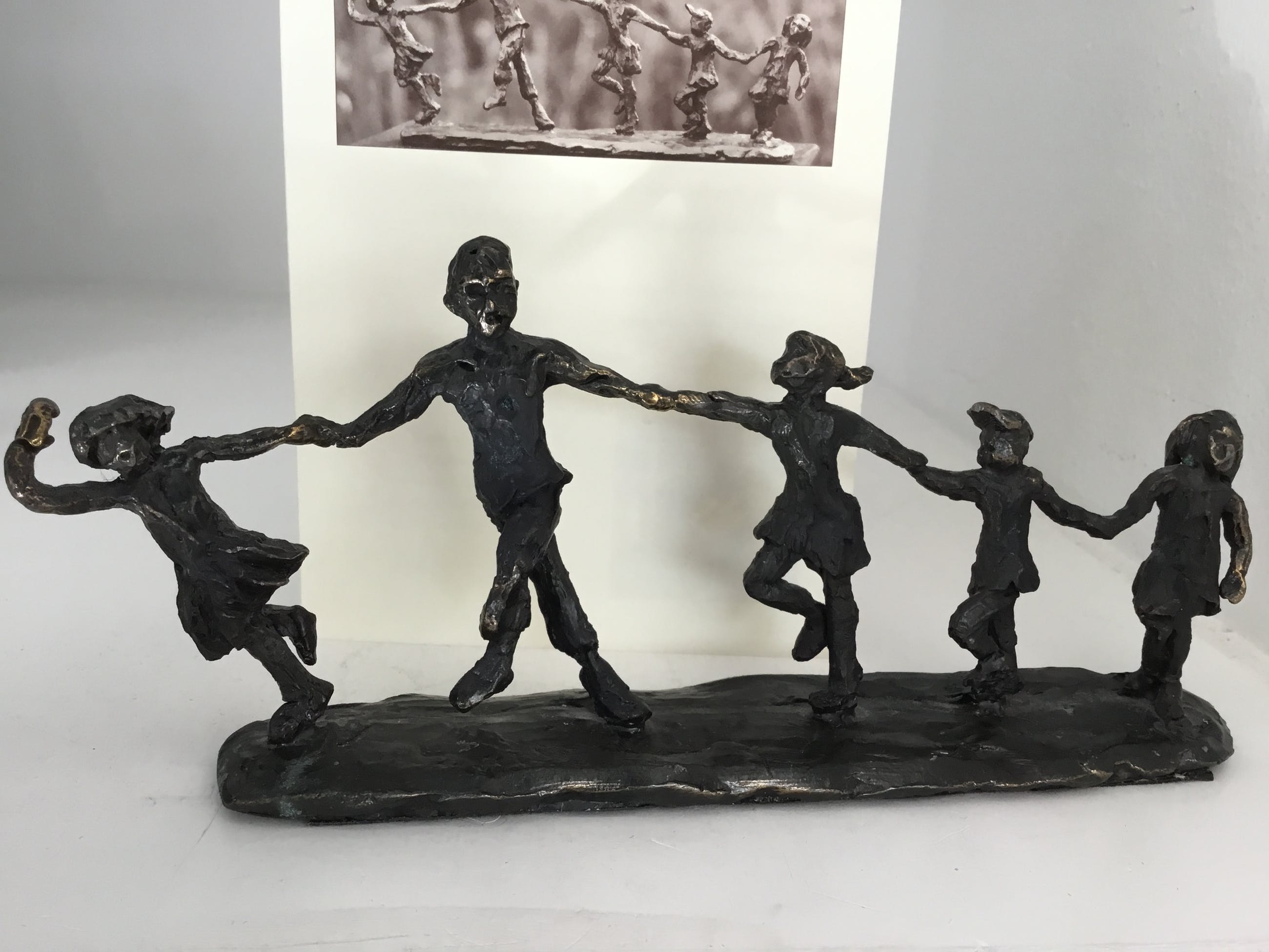 Schitterend sculptuur van een vijftal kinderen die samen hand in hand een vrolijk dansje maken. Titel “ Kinderspel “ Kunstenares : Astrid Veldhuyzen - Koppen Gesigneerd : AV Materiaal : brons. Wordt geleverd inclusief echtheidscertificaat van de kunstenares. Het sculptuur verkeert in zeer goede staat en wordt zorgvuldig verpakt en aangetekend verzonden .