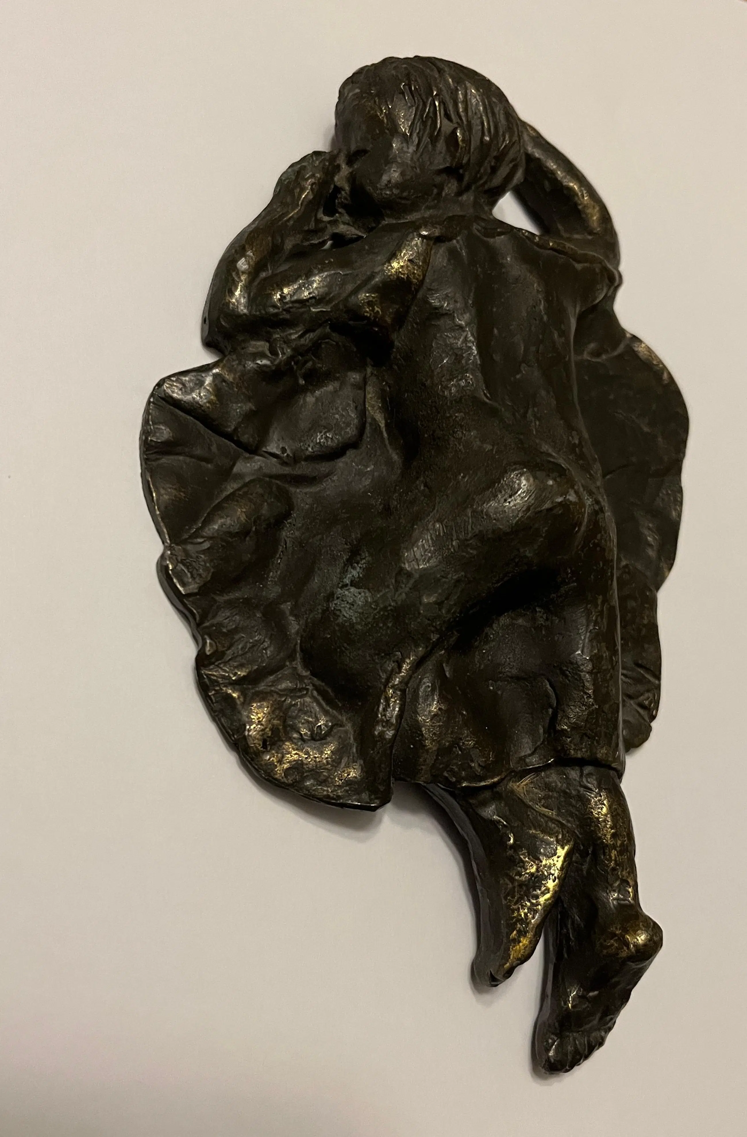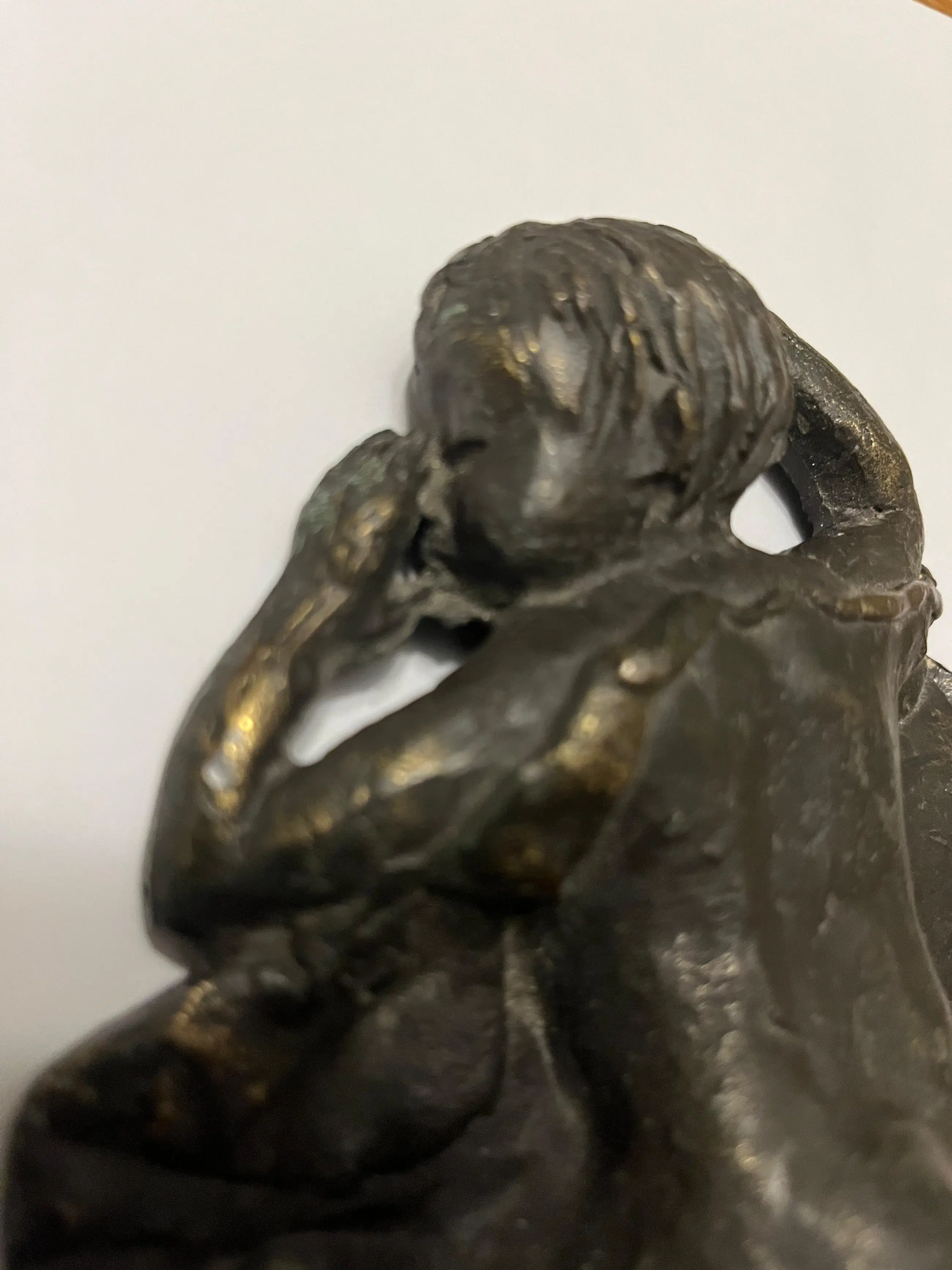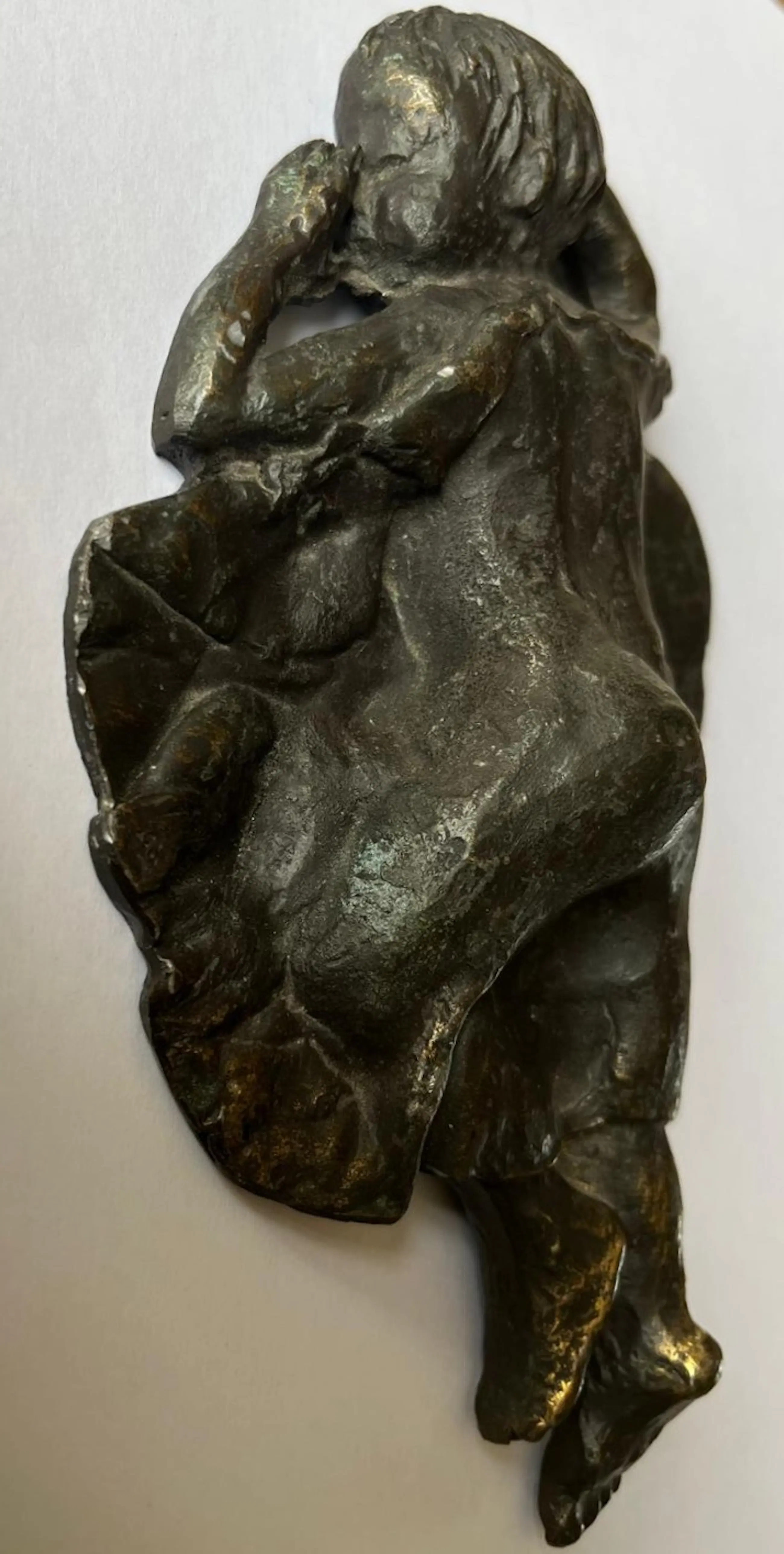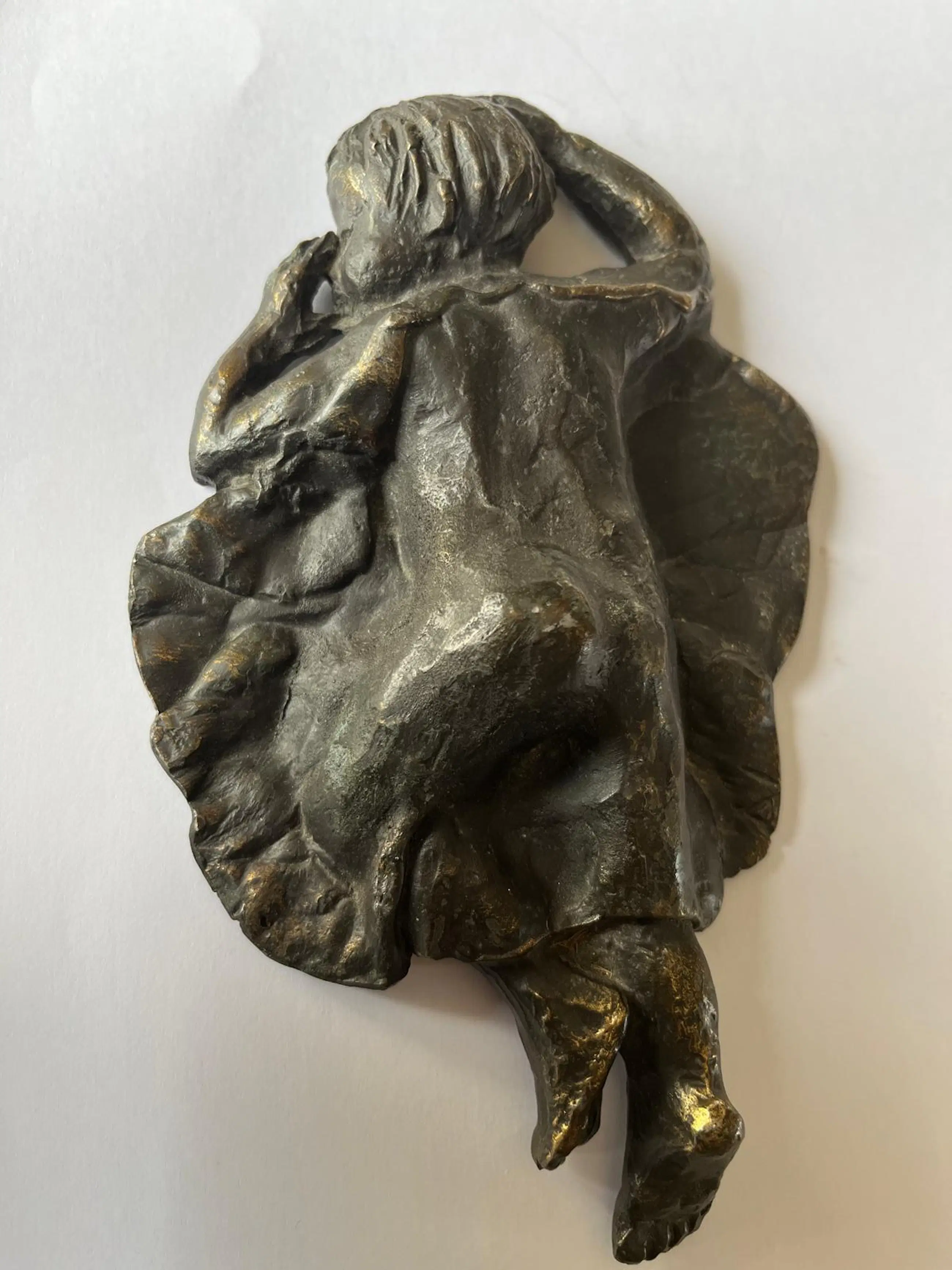 Prachtige bronzen sculptuur “De Droom” van Astrid Veldhuyzen-Koppen. De Nederlandse beeldhouwster Astrid Veldhuyzen-Koppen (1952) staat bekend om haar gevoelige, figuratieve sculpturen waarin kwetsbaarheid, warmte en menselijkheid centraal staan. In “De Droom” toont zij een kind dat rustig slaapt, met de duim in de mond. Het warme brons, de verfijnde textuur en het rustgevende onderwerp maken “De Droom” tot een troostrijk en tijdloos kunstwerk dat moeiteloos past in zowel een modern interieur als een meer klassieke omgeving. • Periode: ca. 1990s • Signatuur: gesigneerd “AV” Wordt zorgvuldig verpakt en verzekerd verzonden.