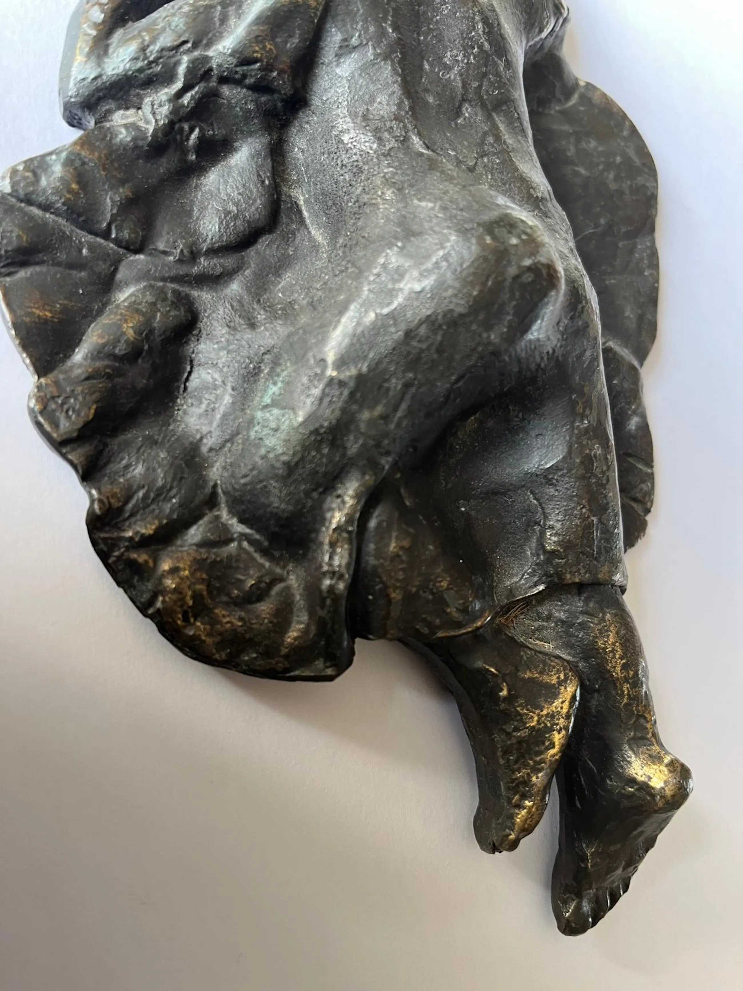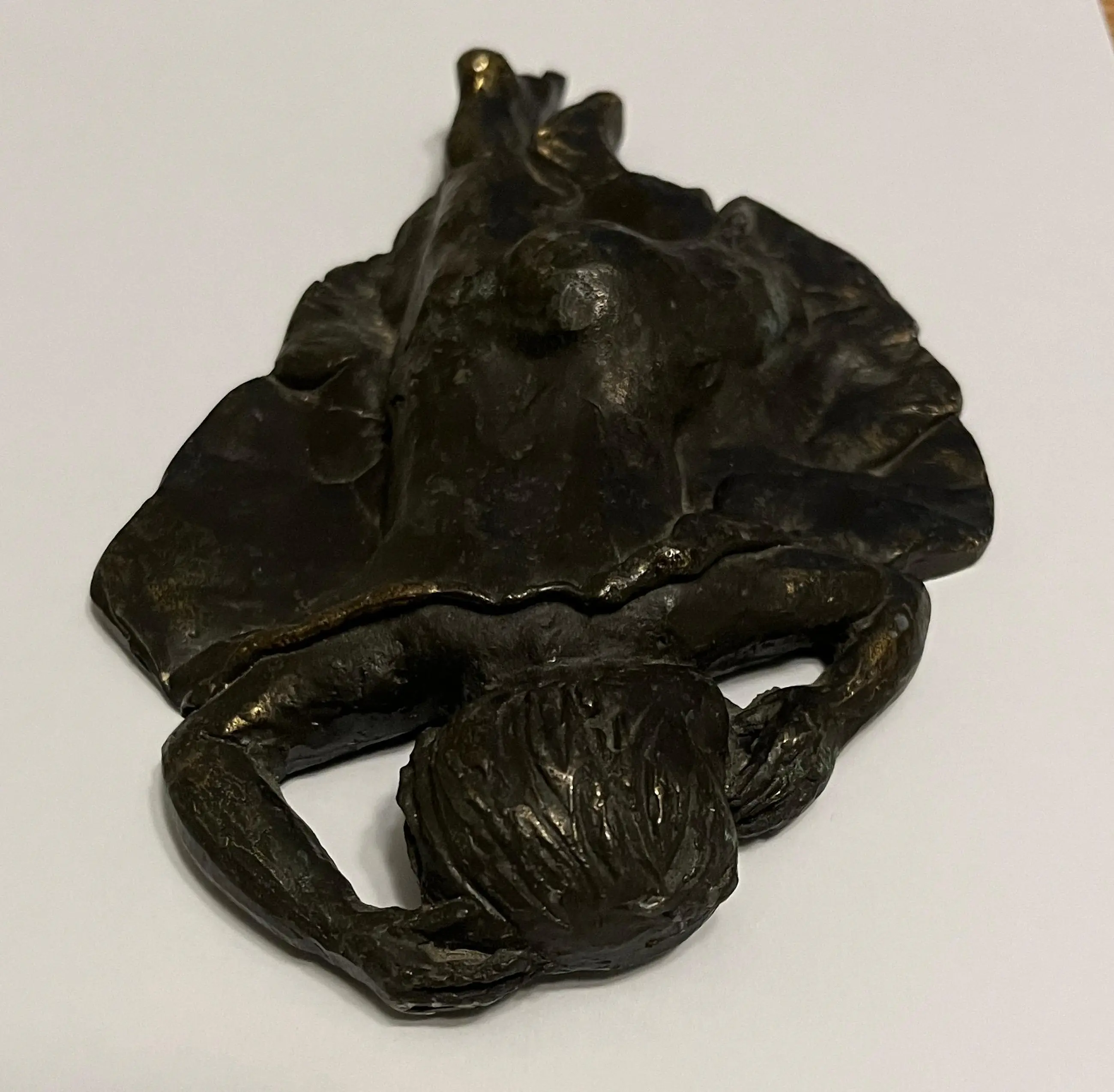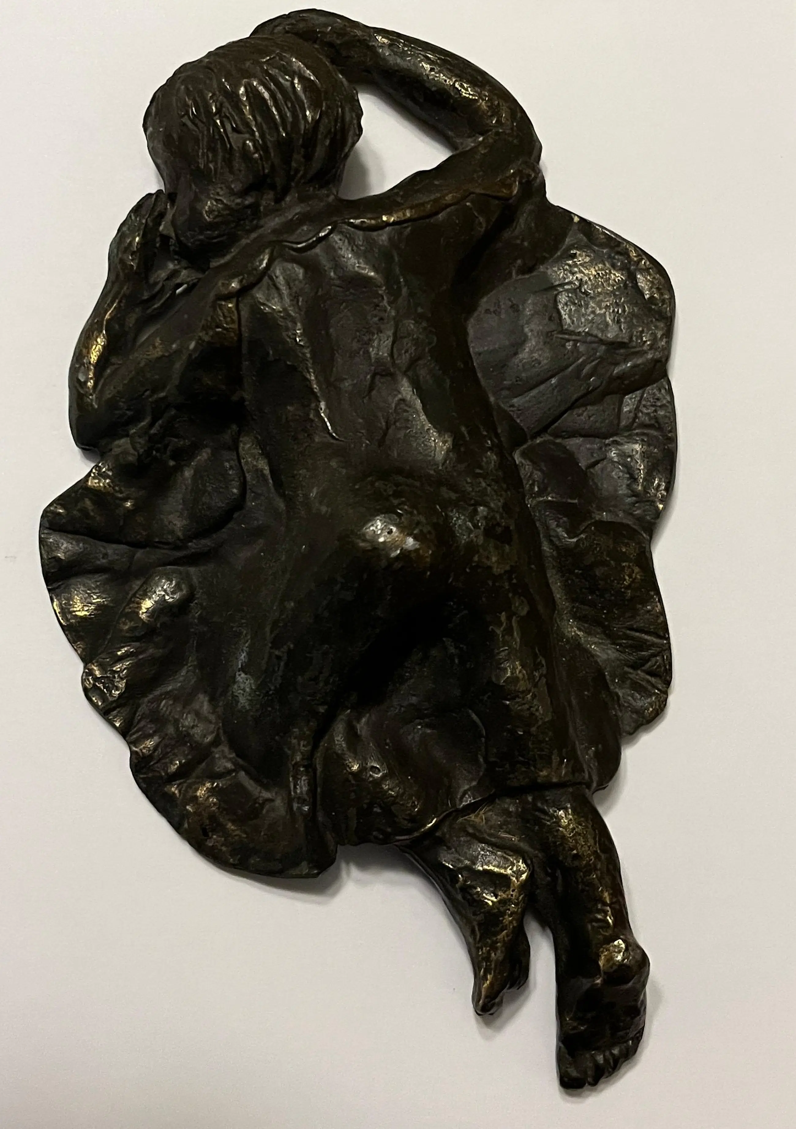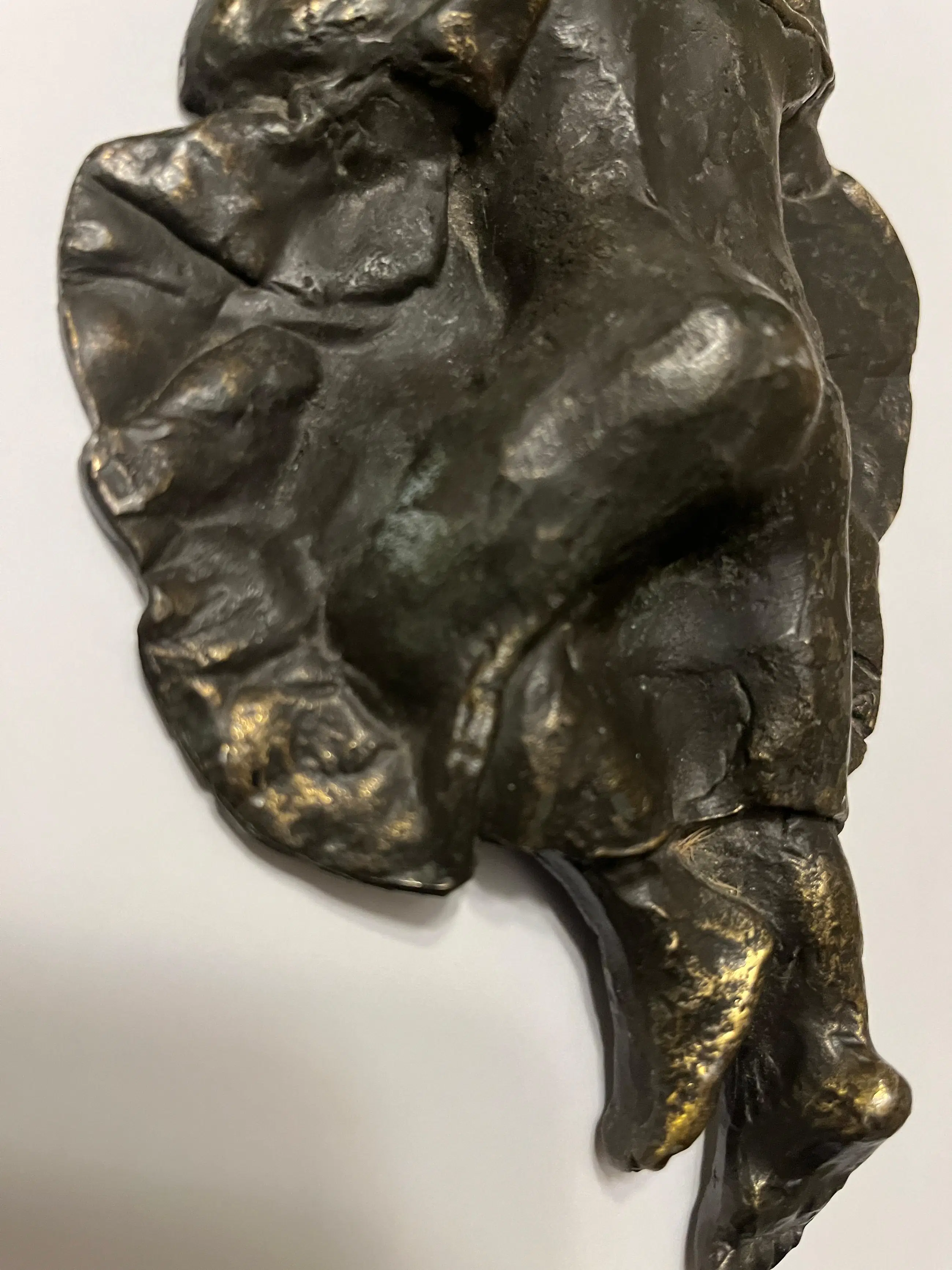 Prachtige bronzen sculptuur “De Droom” van Astrid Veldhuyzen-Koppen. De Nederlandse beeldhouwster Astrid Veldhuyzen-Koppen (1952) staat bekend om haar gevoelige, figuratieve sculpturen waarin kwetsbaarheid, warmte en menselijkheid centraal staan. In “De Droom” toont zij een kind dat rustig slaapt, met de duim in de mond. Het warme brons, de verfijnde textuur en het rustgevende onderwerp maken “De Droom” tot een troostrijk en tijdloos kunstwerk dat moeiteloos past in zowel een modern interieur als een meer klassieke omgeving. • Periode: ca. 1990s • Signatuur: gesigneerd “AV” Wordt zorgvuldig verpakt en verzekerd verzonden.