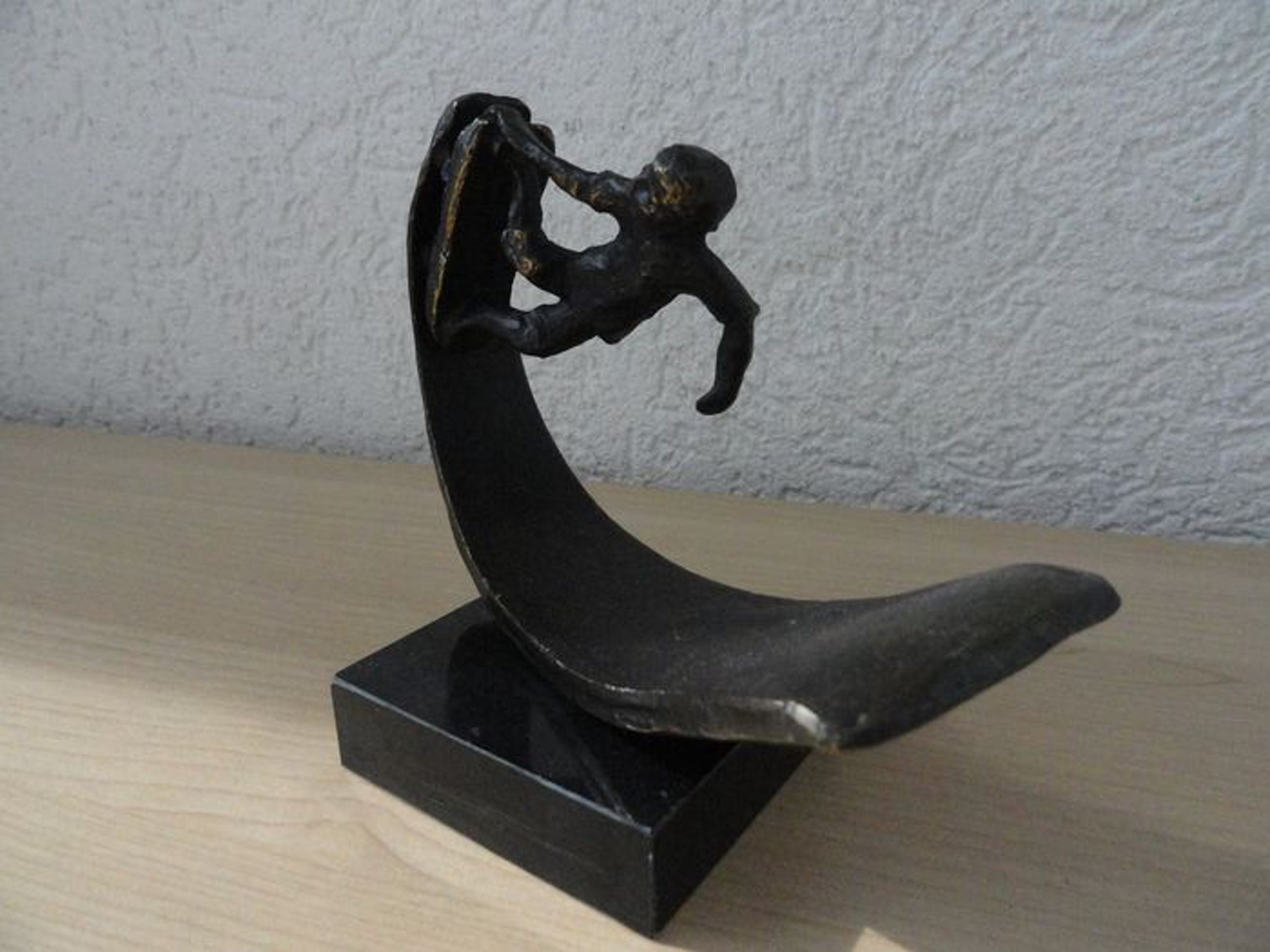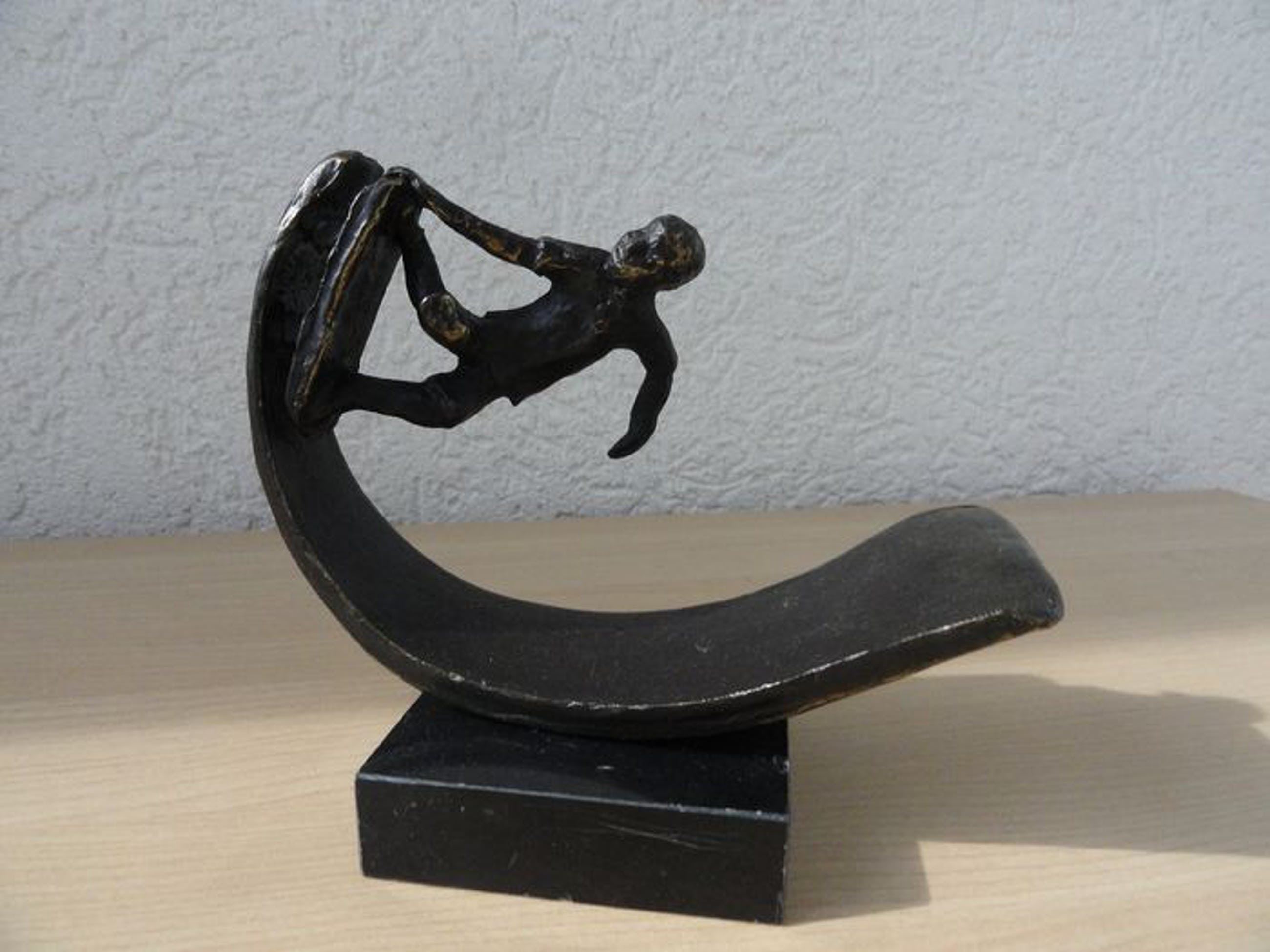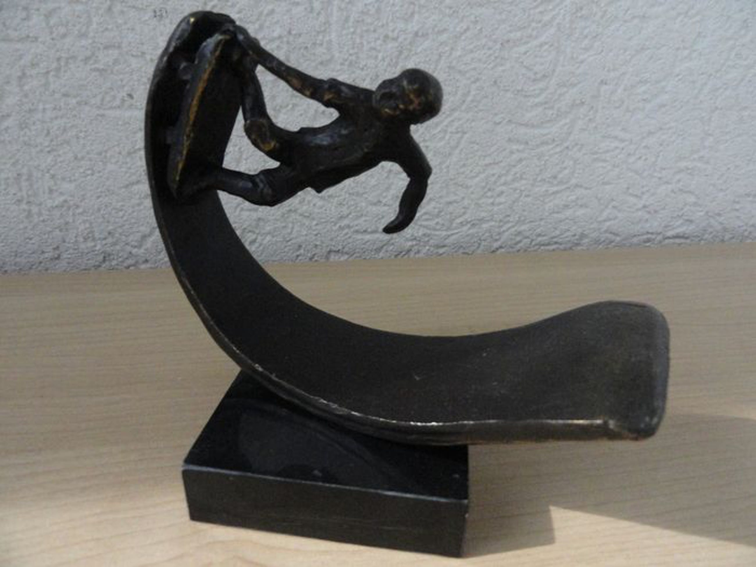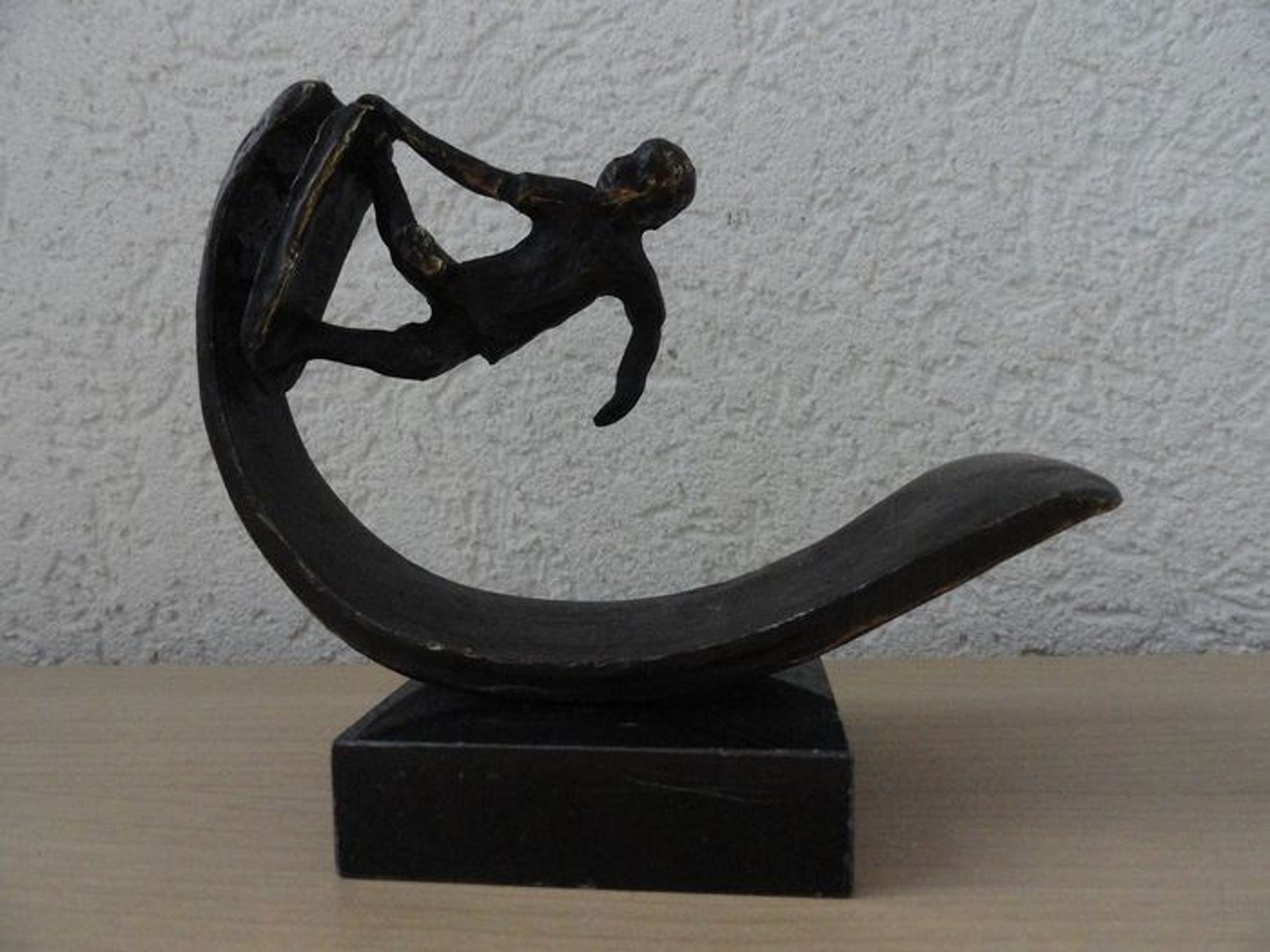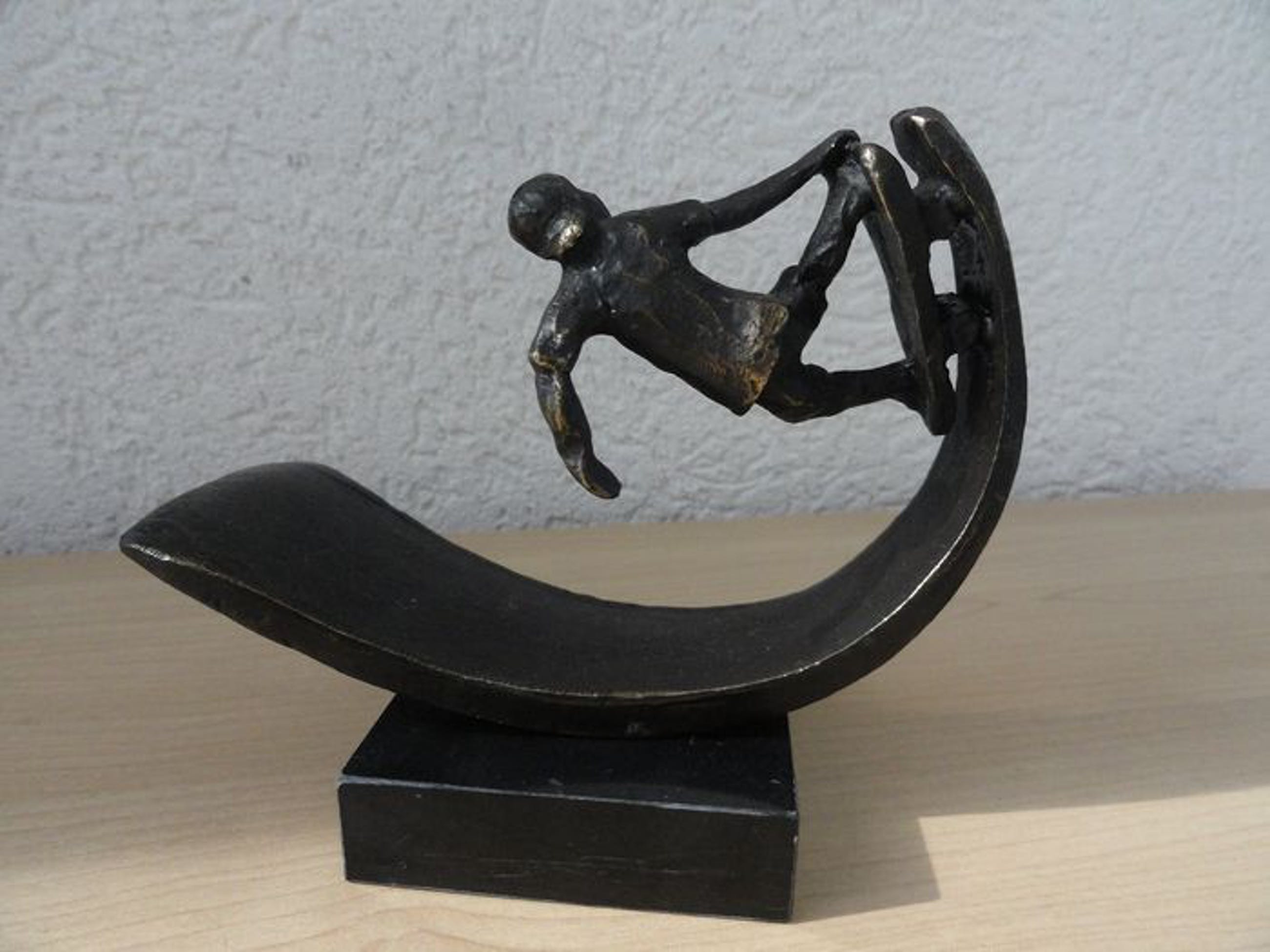 Astrid Veldhuyzen - Koppen - Atelier in Beeld - Sculptuur - Skater op zijn SkateboardNederland - Na 2000 - Legering, verbronsdZwaar verbronsde sculptuur met monogram.