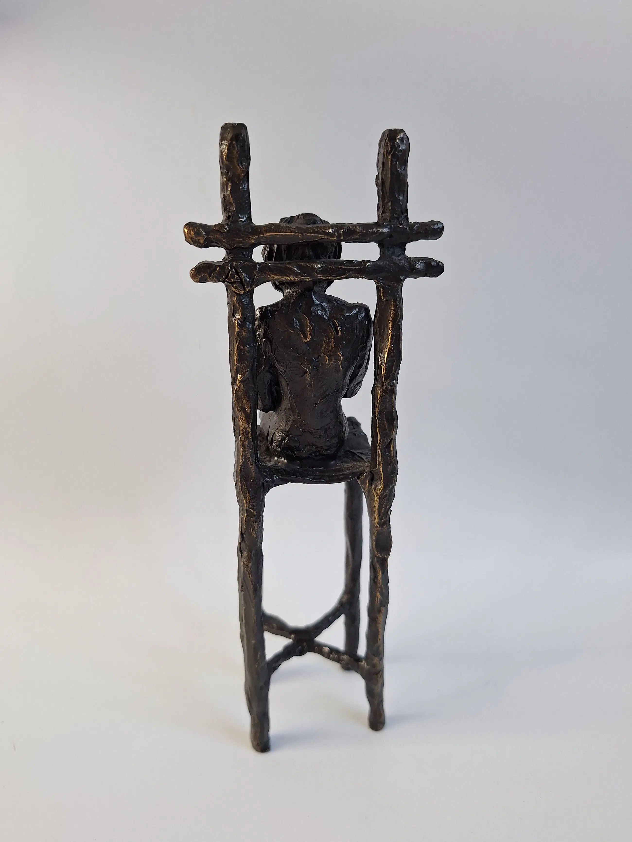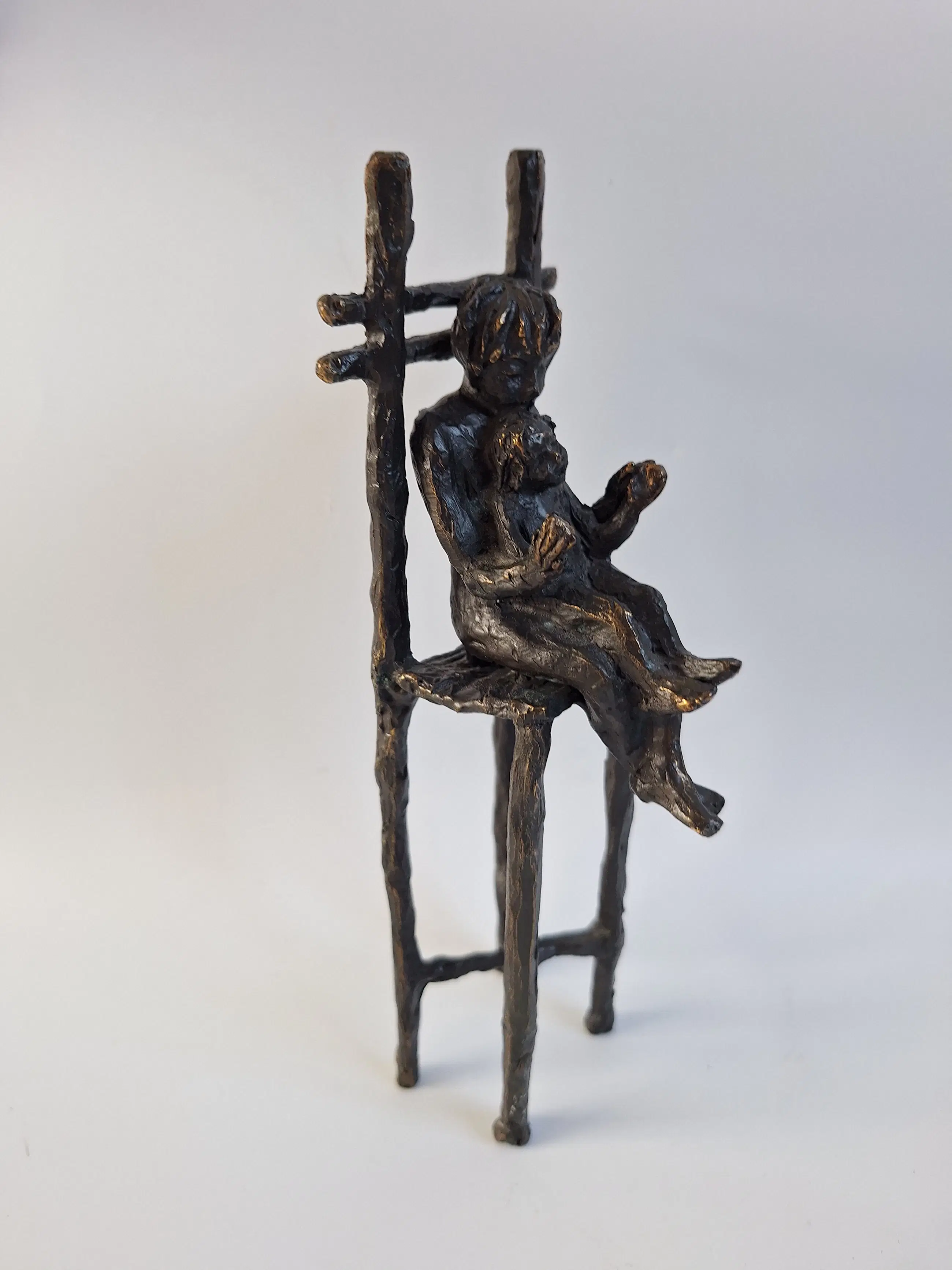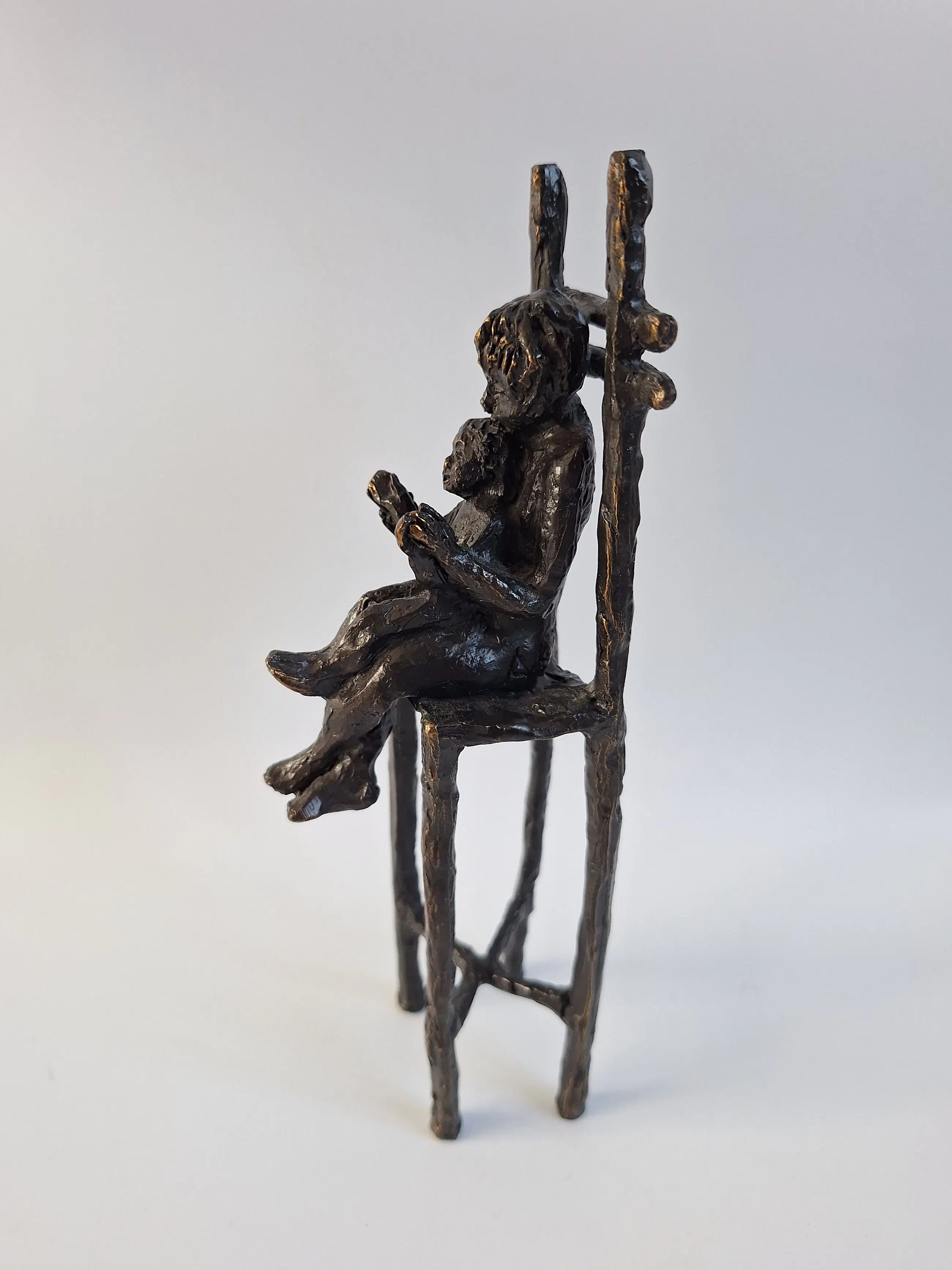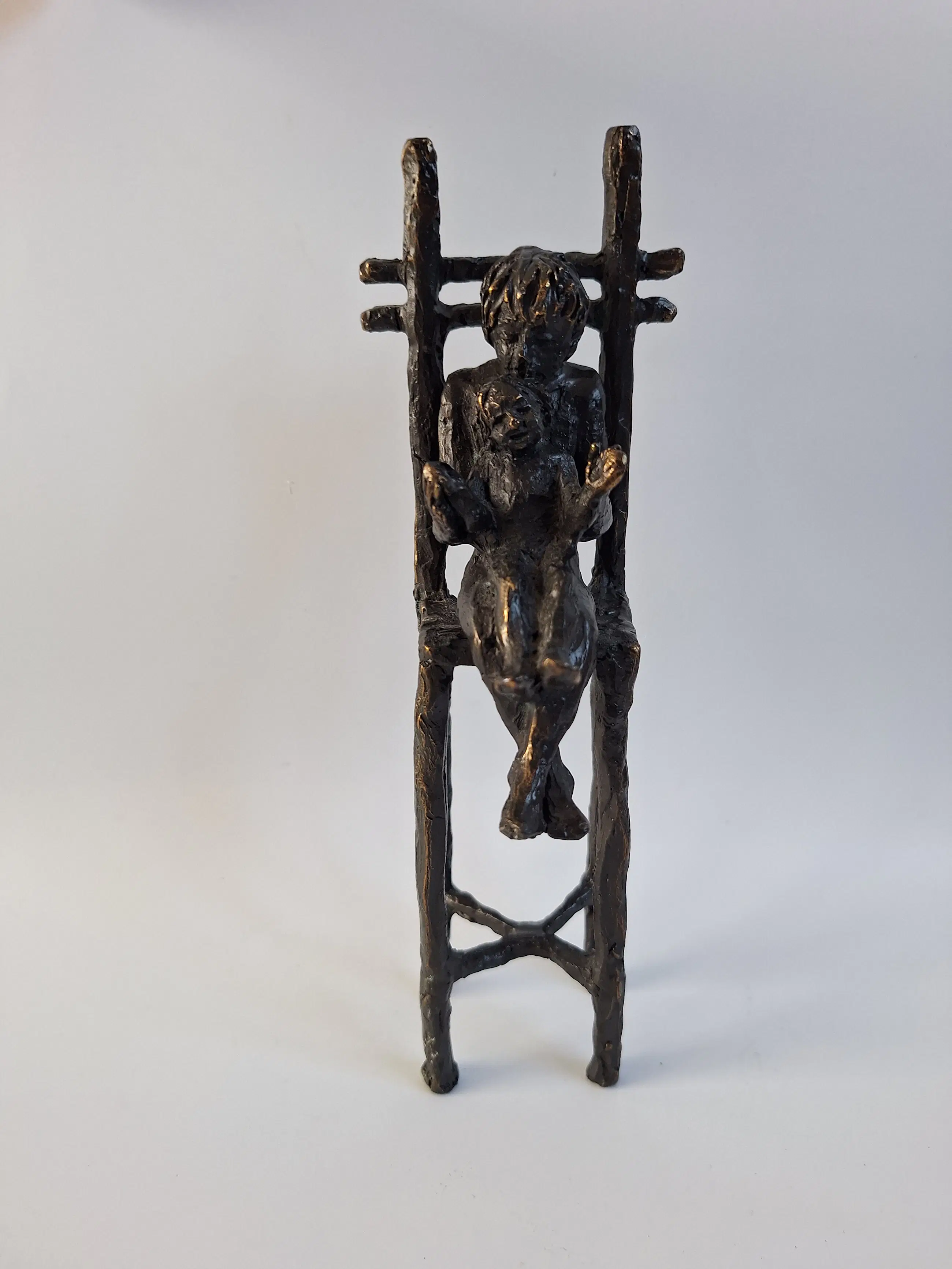 Prachtig bronzen beeld van kunstenares Astrid Veldhuyzen-Koppen. Het betreft 2 kinderen op een stoel. 21 x 7 x 7 cm 790 gram