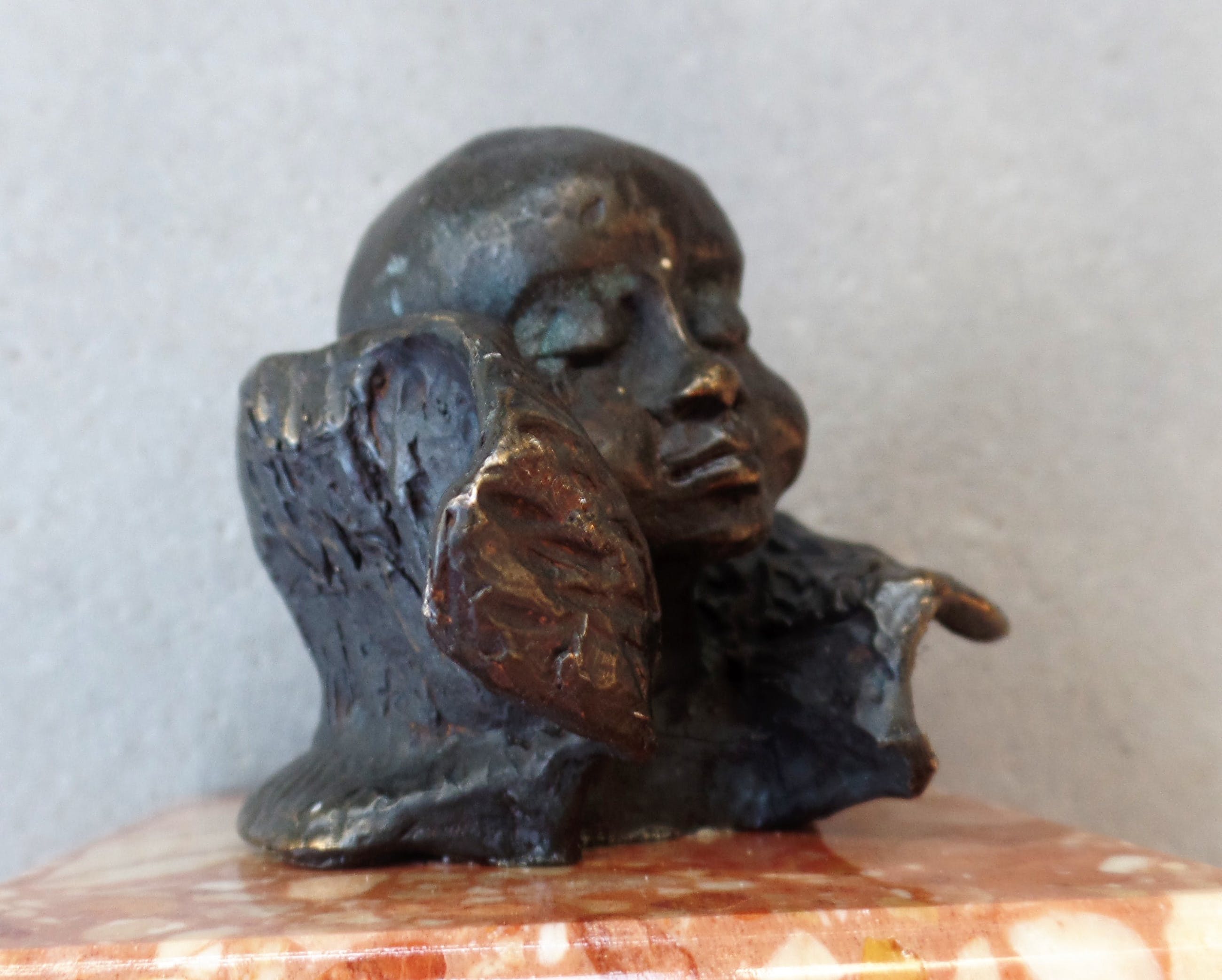 Mooi gaaf beeld gemonteerd op marmeren sokkel.Toegeschreven aan Astrid Veldhuyzen.