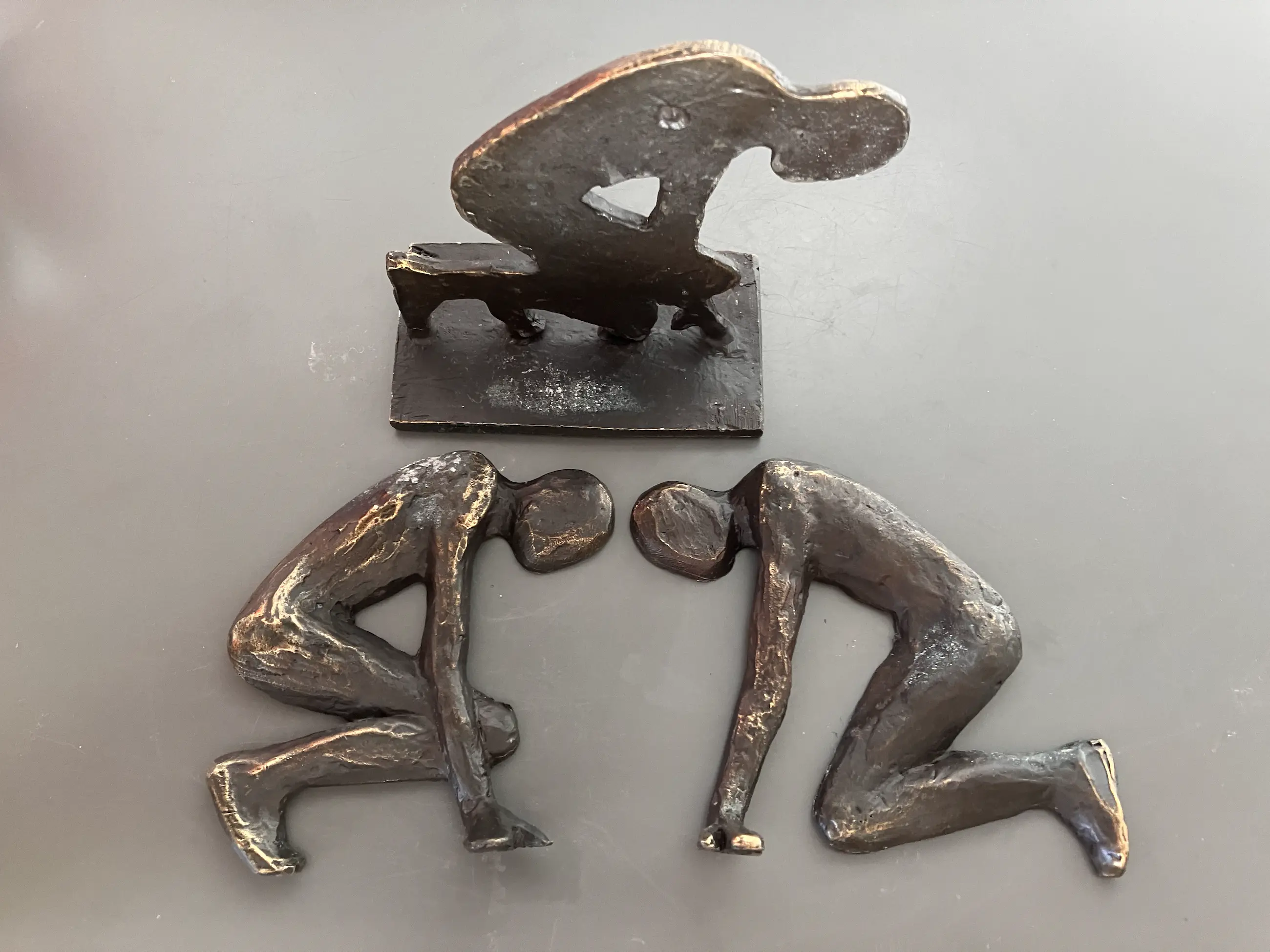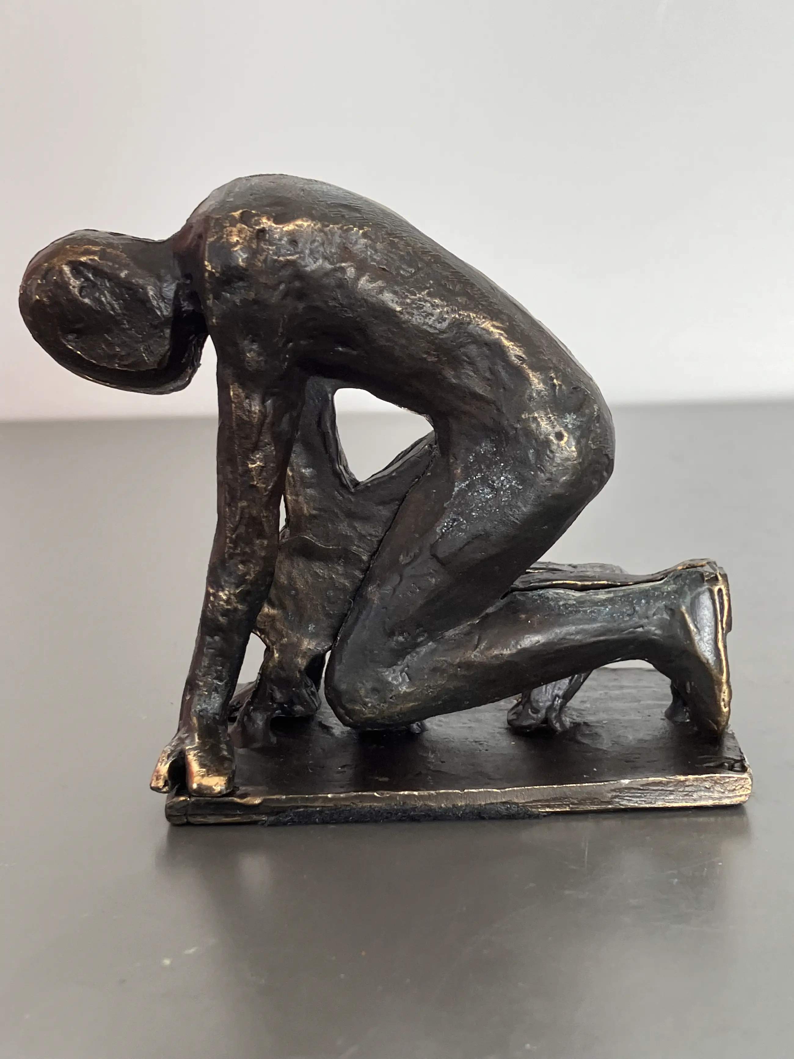 Atleet bij de start wachtend op het startsignaal Beeldje bestaat uit drie losse componenten die los van elkaar beweegbaar zijn en de komende start dynamisch weergeven