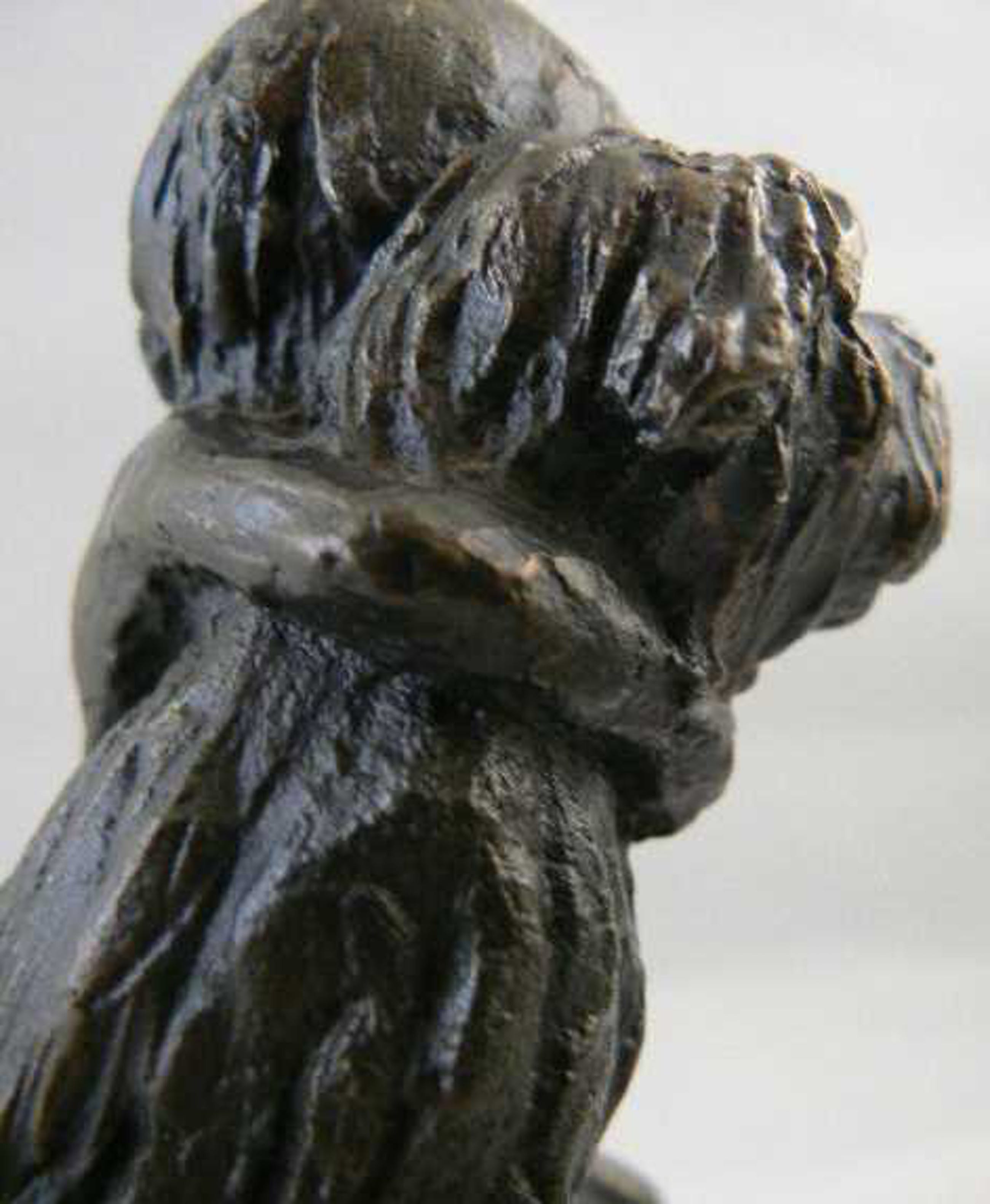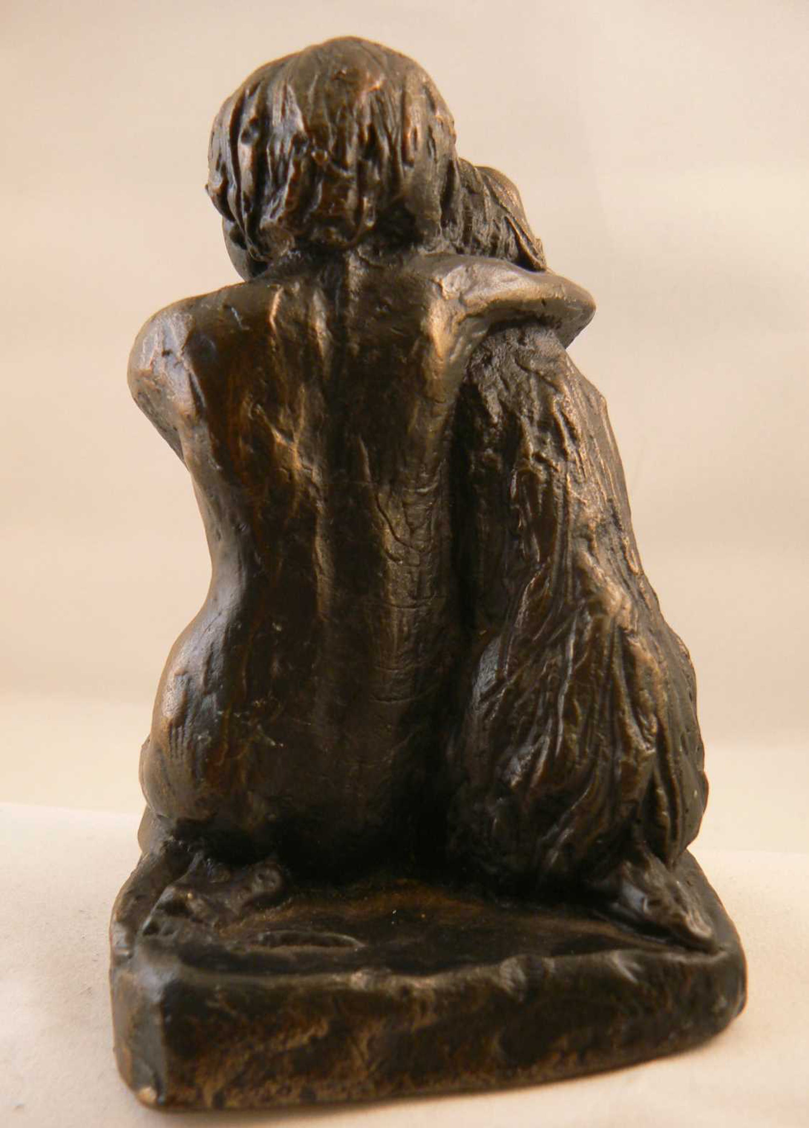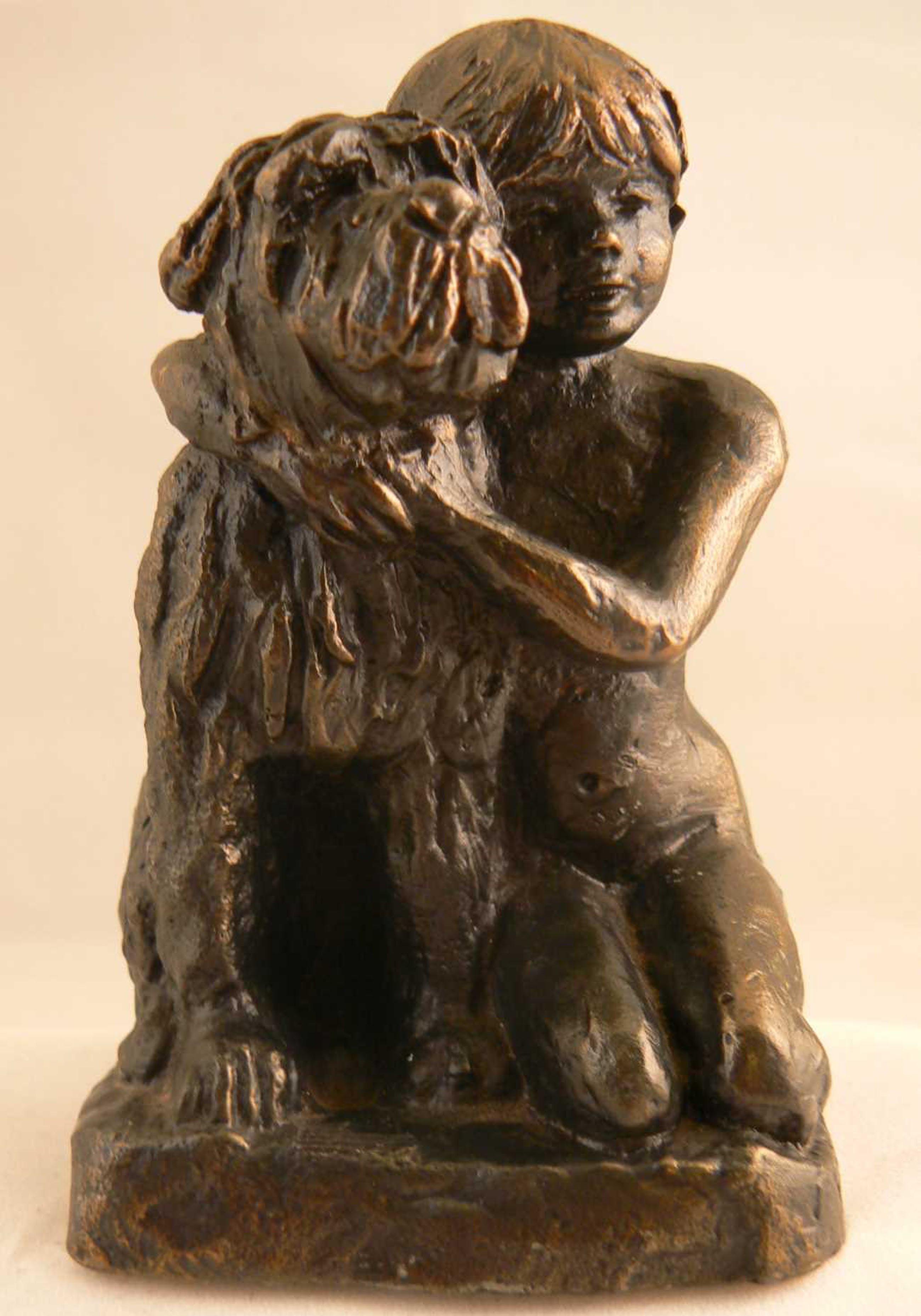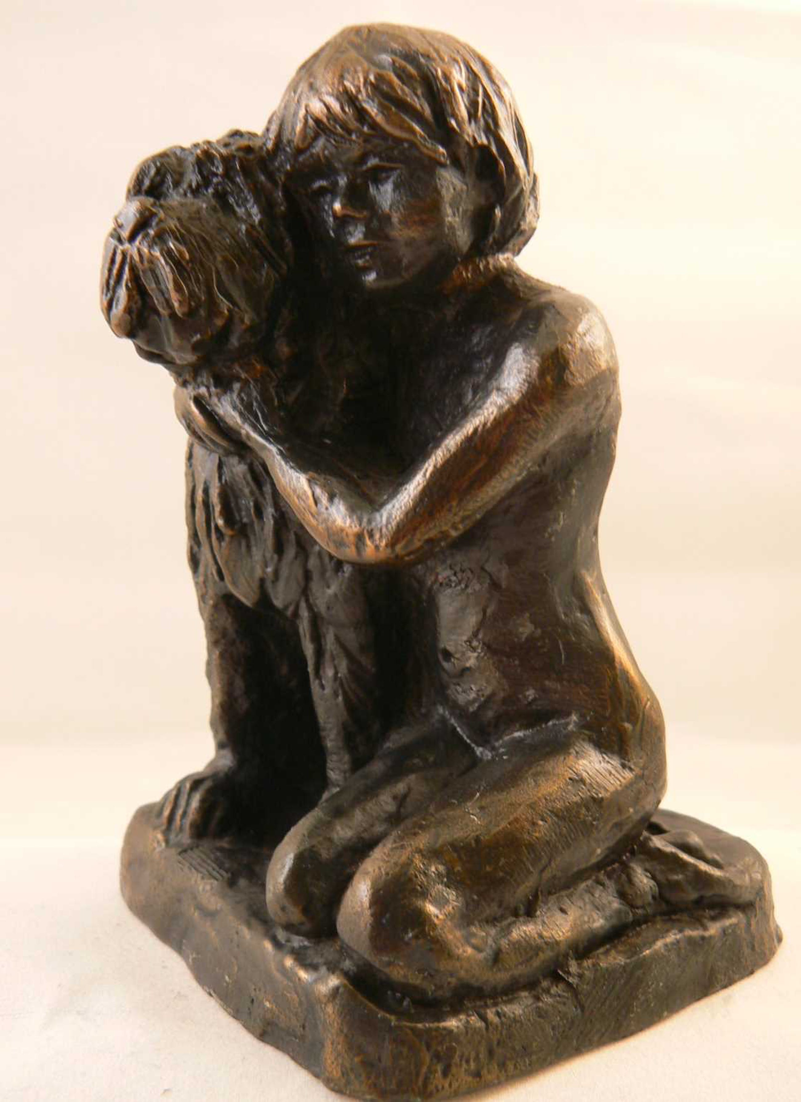 Zwaar ver bronst sculptuur van een meisje met haar hond.