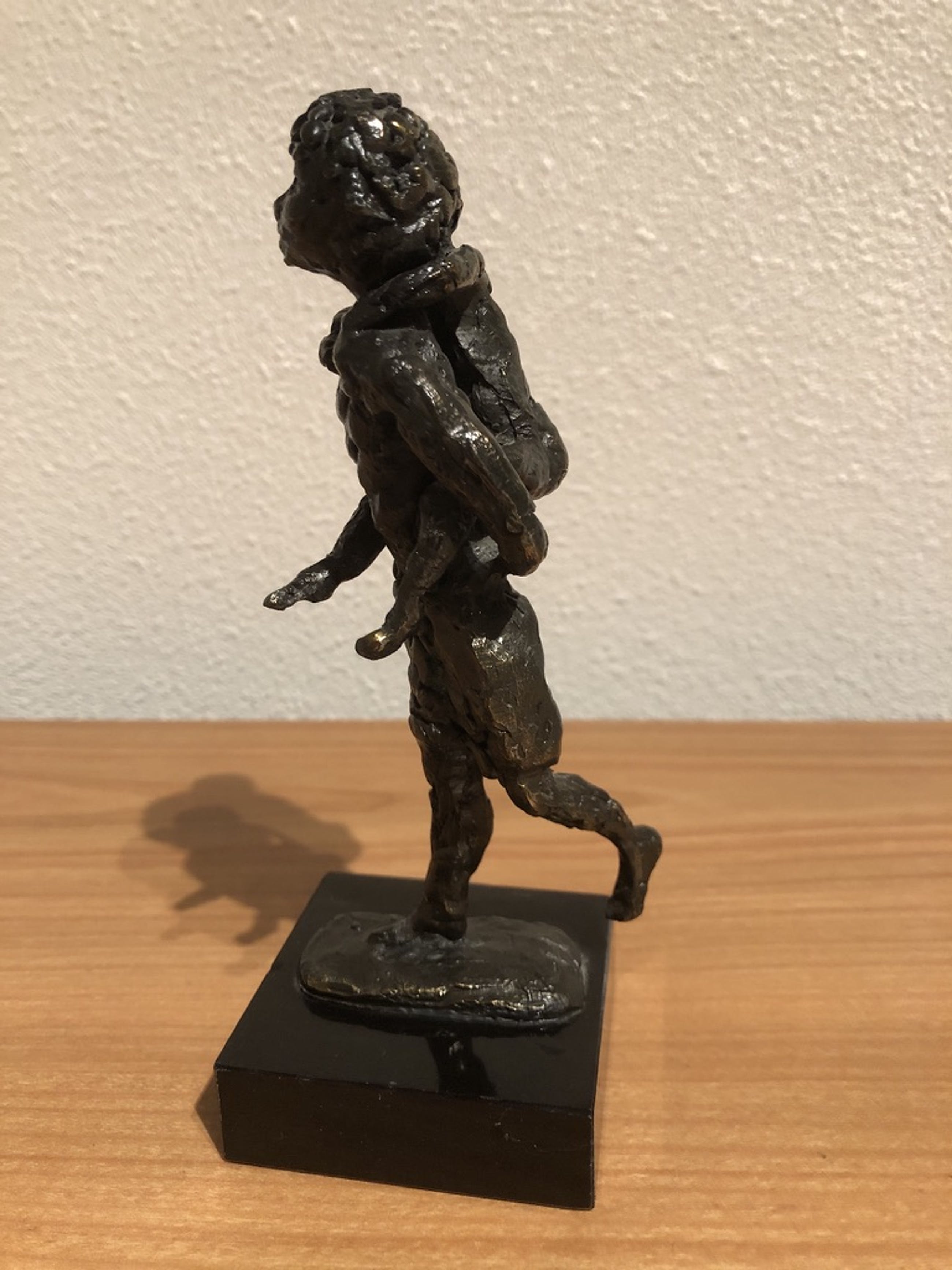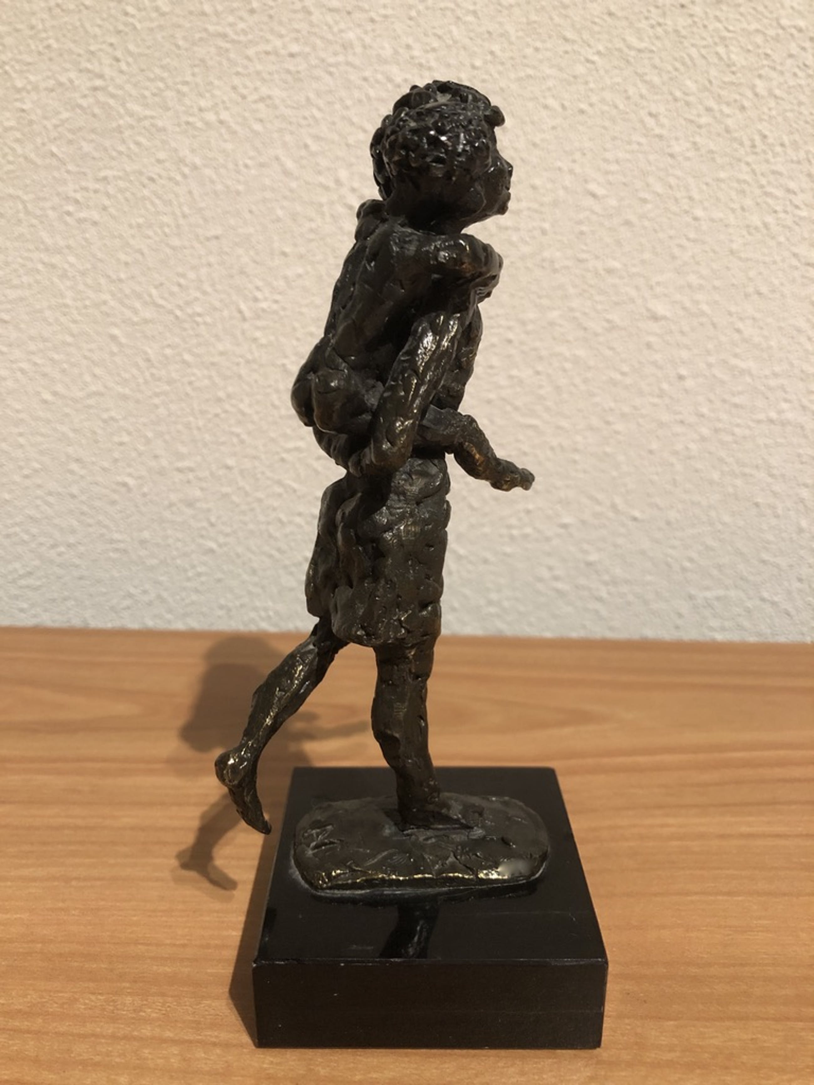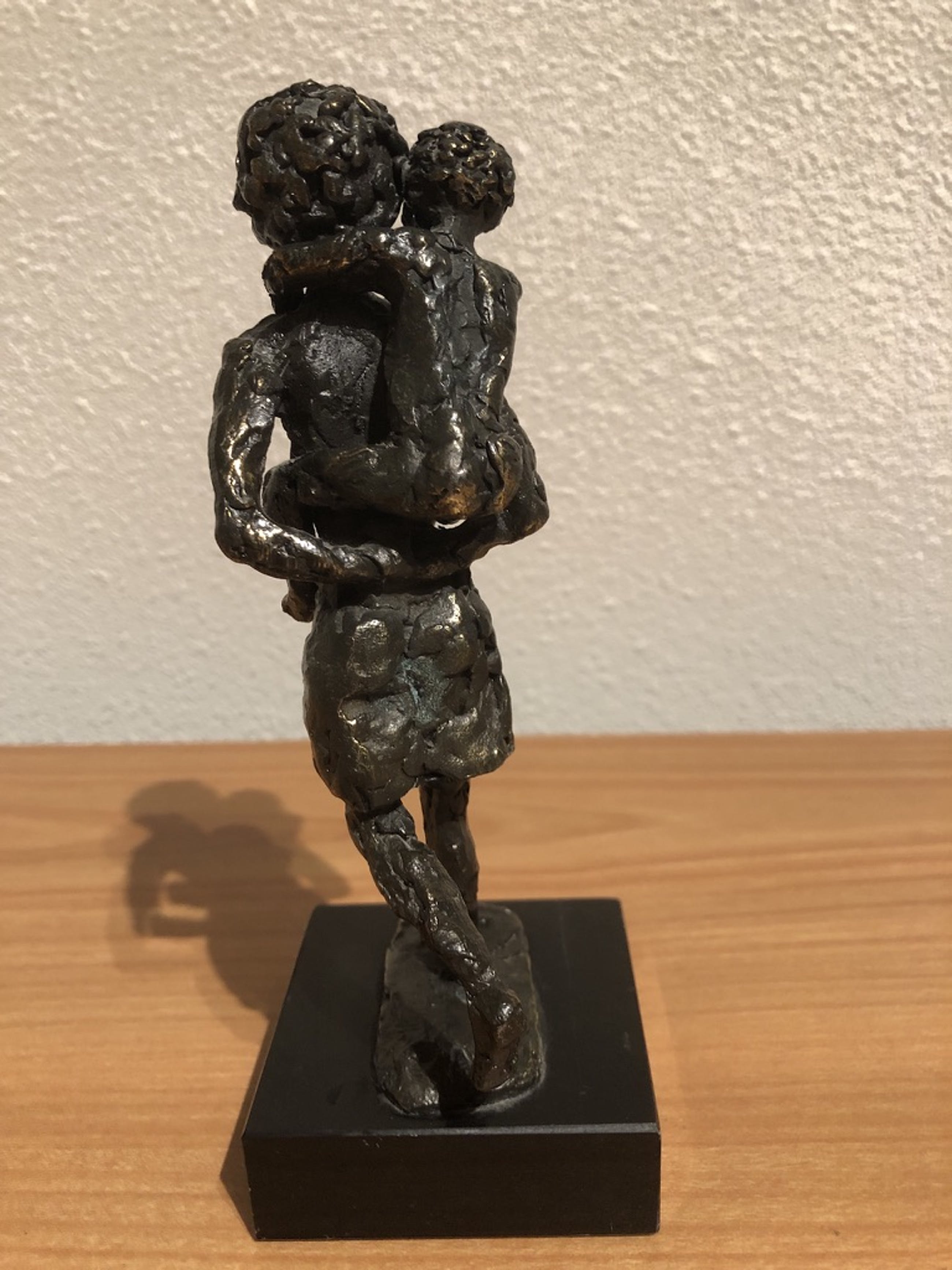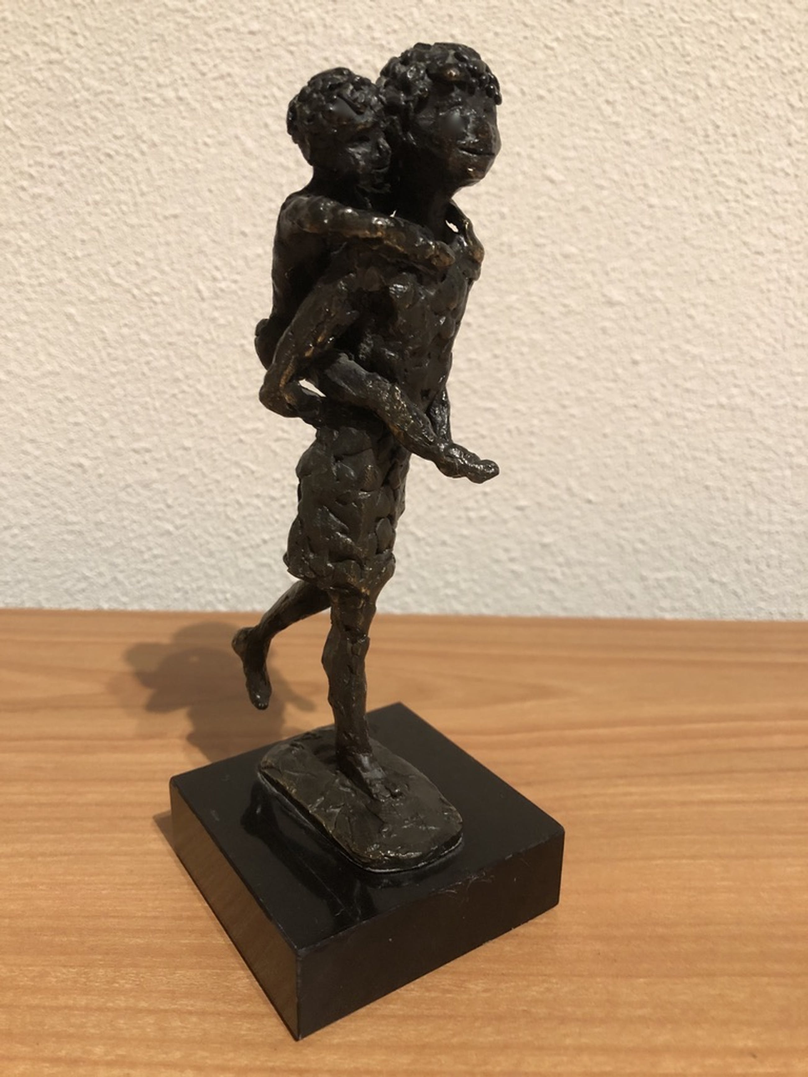 Het betreft een schitterend beeld van een moeder met haar kind op de rug.
