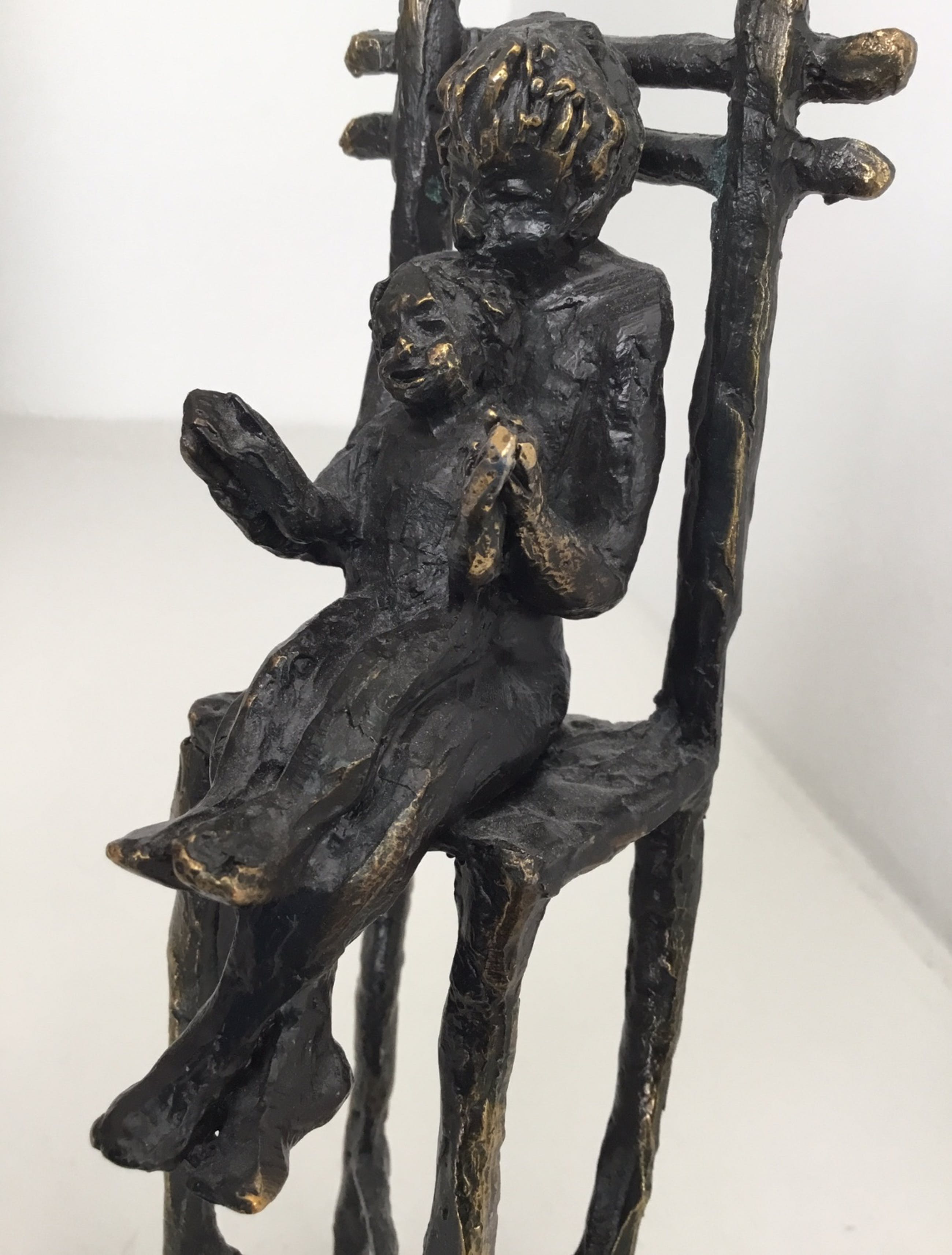 Erg mooi en vertederend sculptuur van een moeder met op haar schoot haar kind. Kunstenares : Astrid Veldhuyzen . Materiaal : brons Gesigneerd : AV Het sculptuur verkeert in zeer goede staat en wordt zorgvuldig verpakt en aangetekend verzonden .