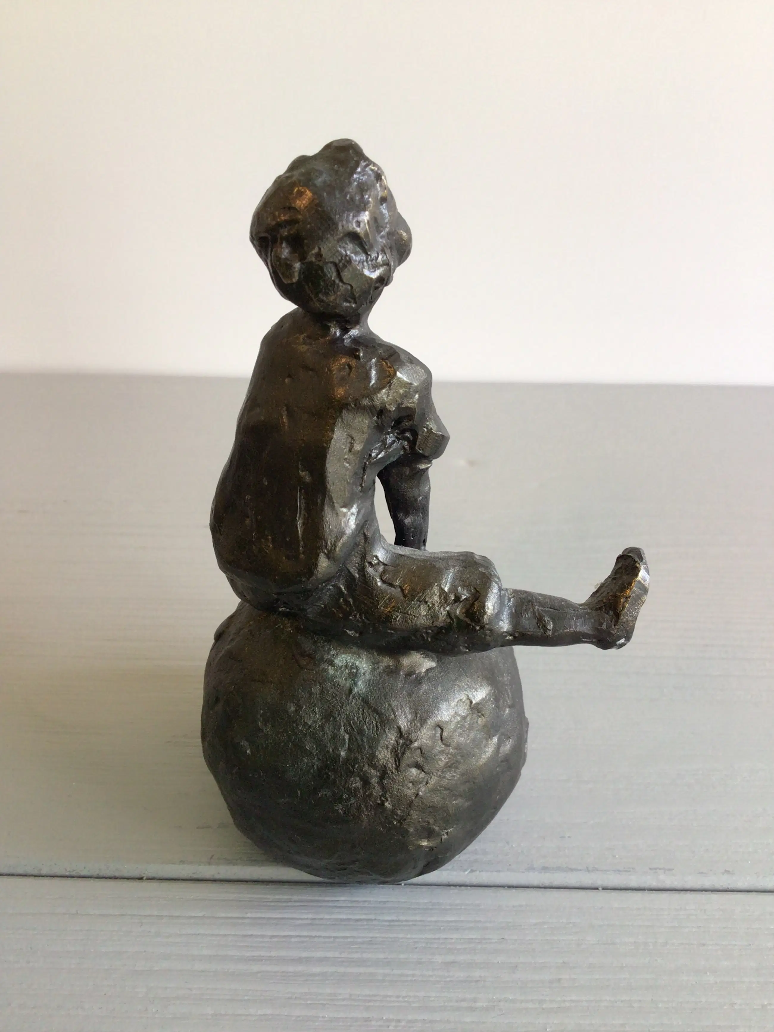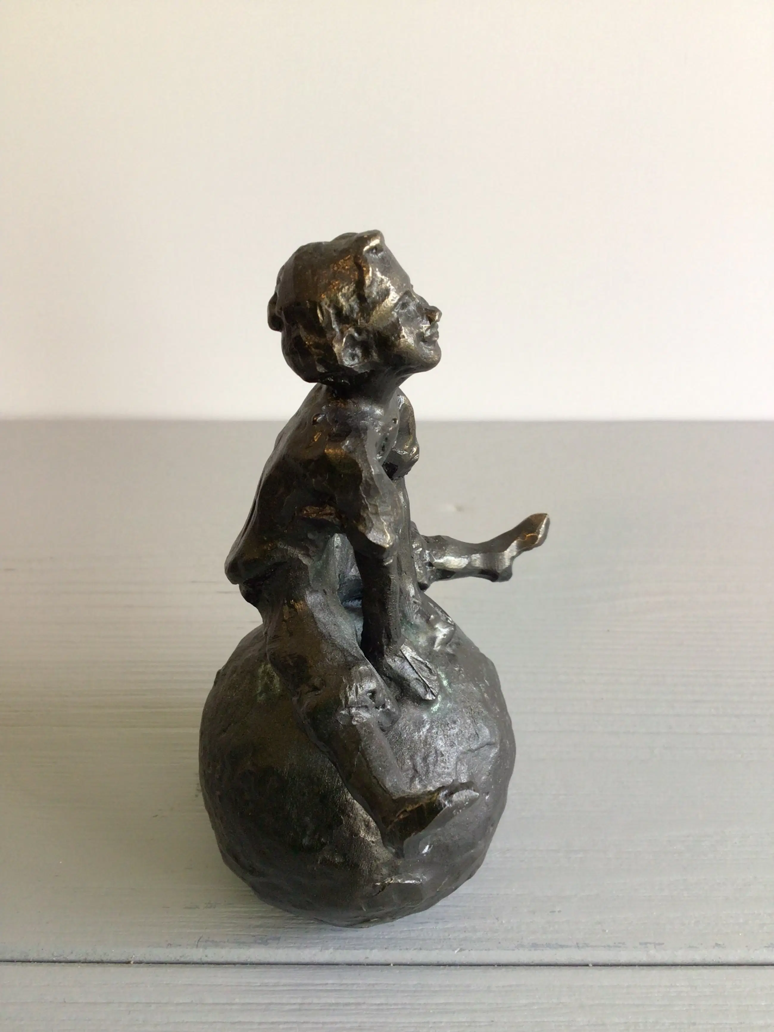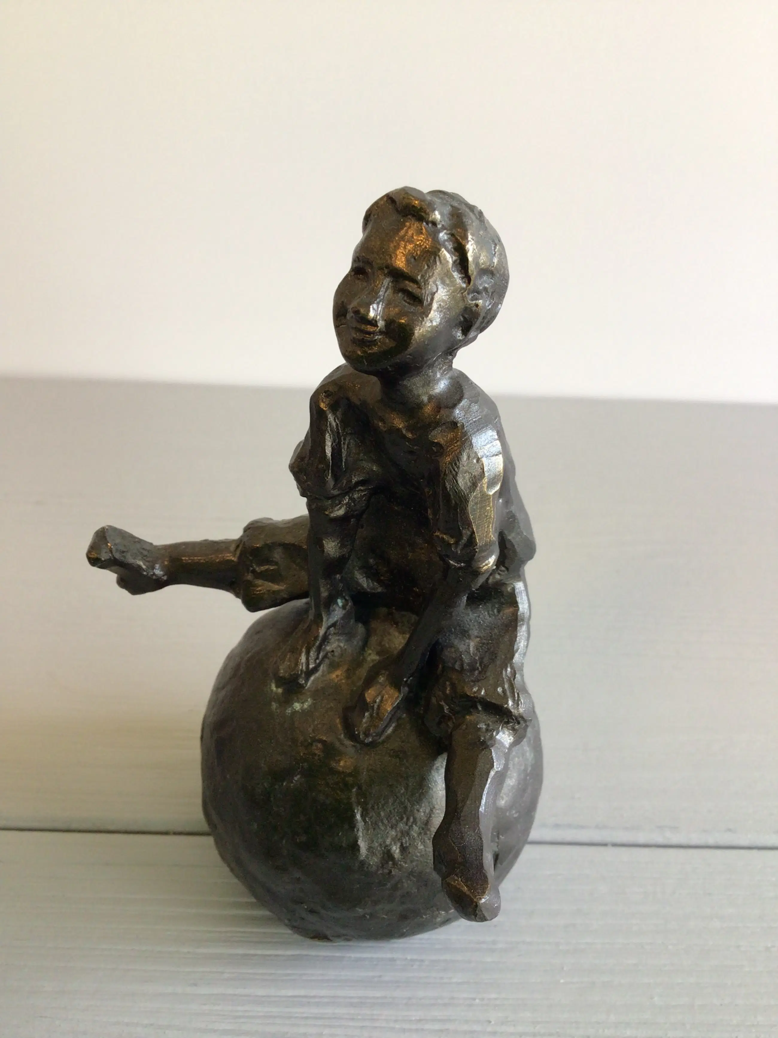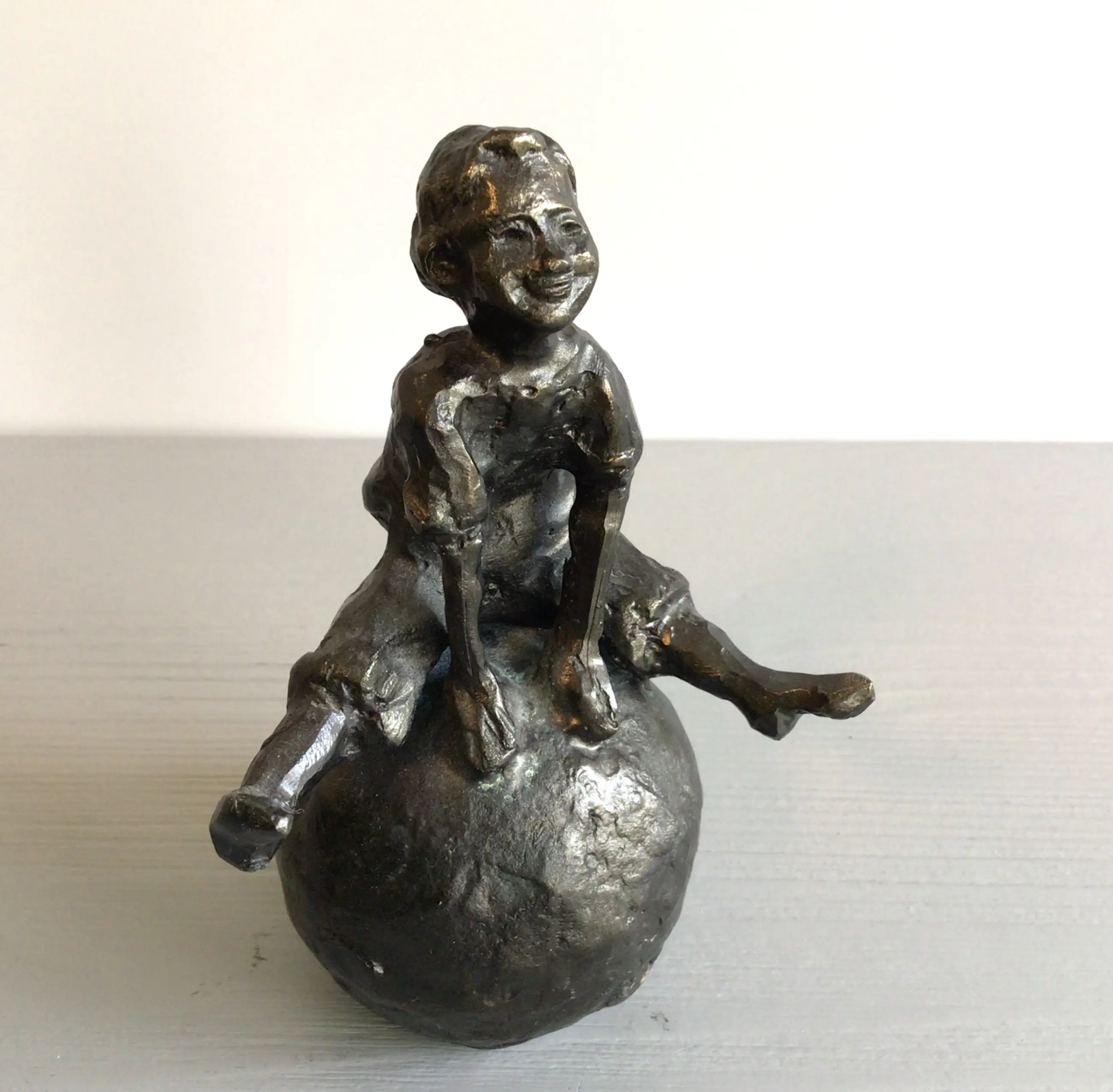 Zeer fraai en gedetailleerd vormgegeven sculptuur van een vrolijk kind zittend op een skippybal. Kunstenares: Astrid Veldhuyzen- Koppen Afmetingen: 12 x 7 cm Materiaal: legering Gewicht : 655 gram Het beeld verkeert in goede staat en wordt zorgvuldig verpakt verzonden