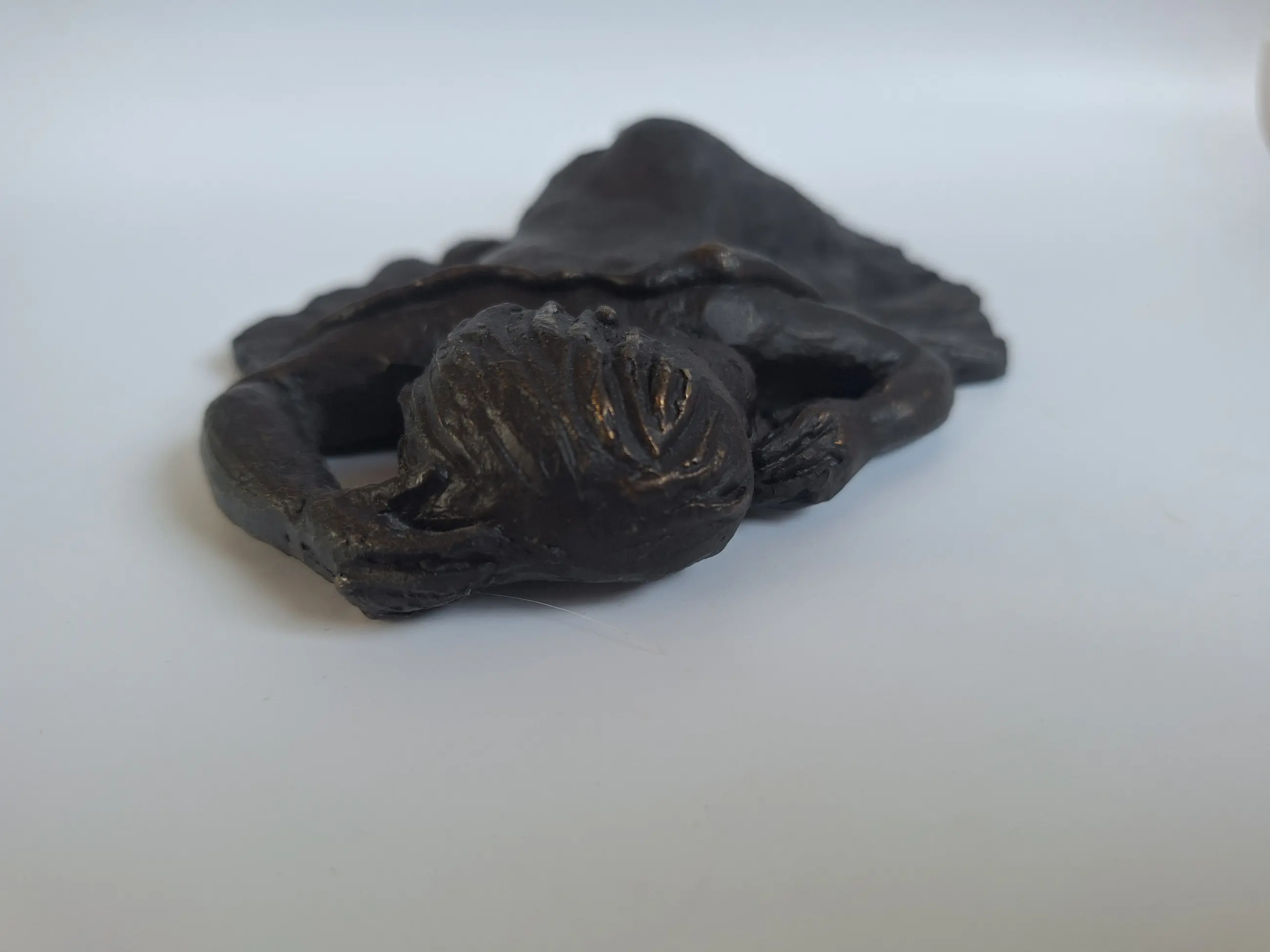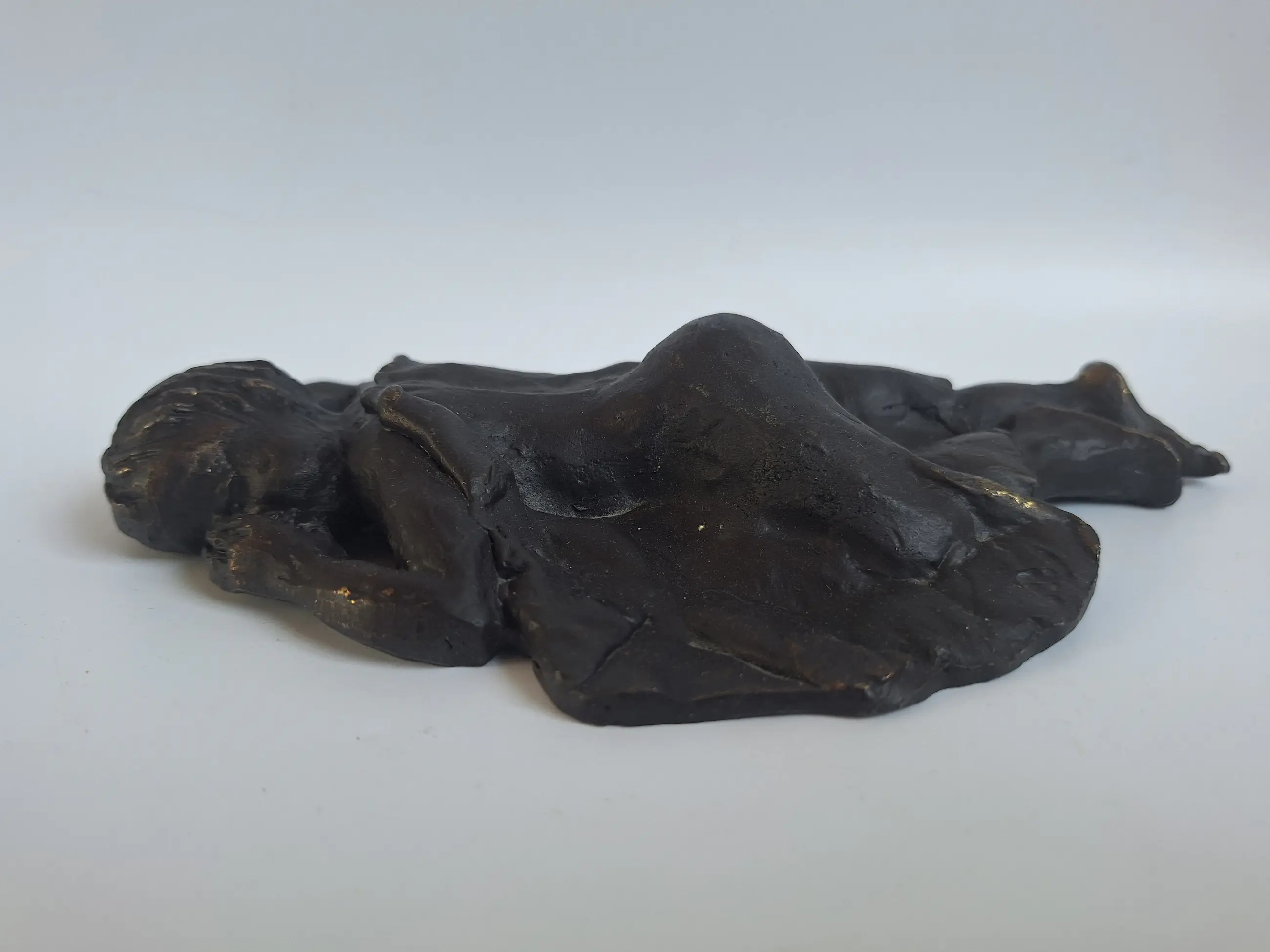 Prachtig beeldje van kunstenares Astrid Velshuyzen-Koppen. Het betreft een slapend kindje 2,7 x 18,5 x 11,3 cm 1650 gram