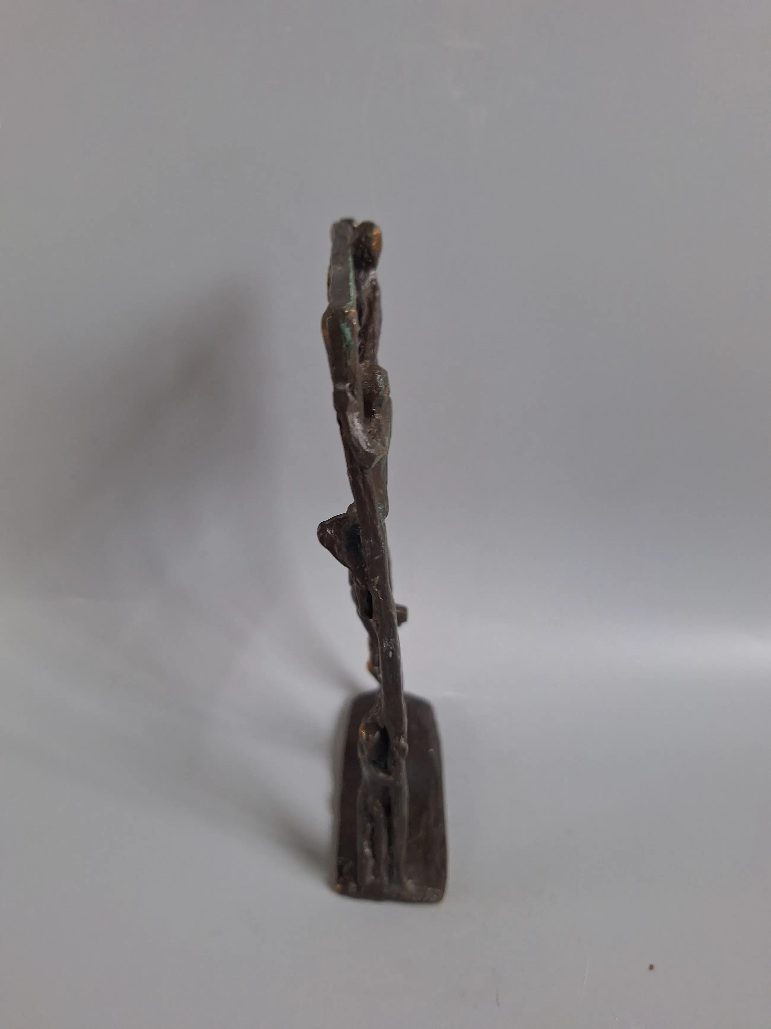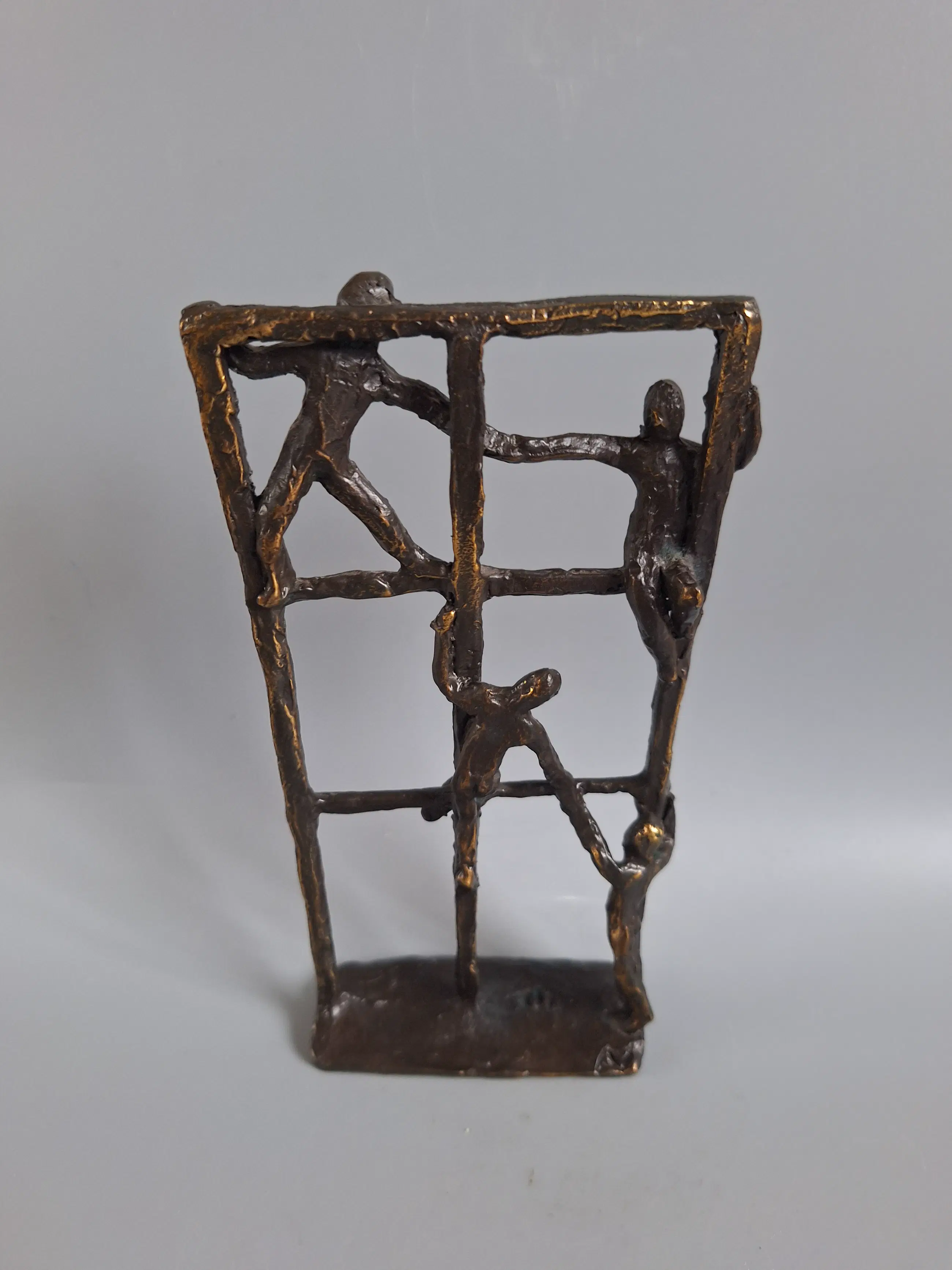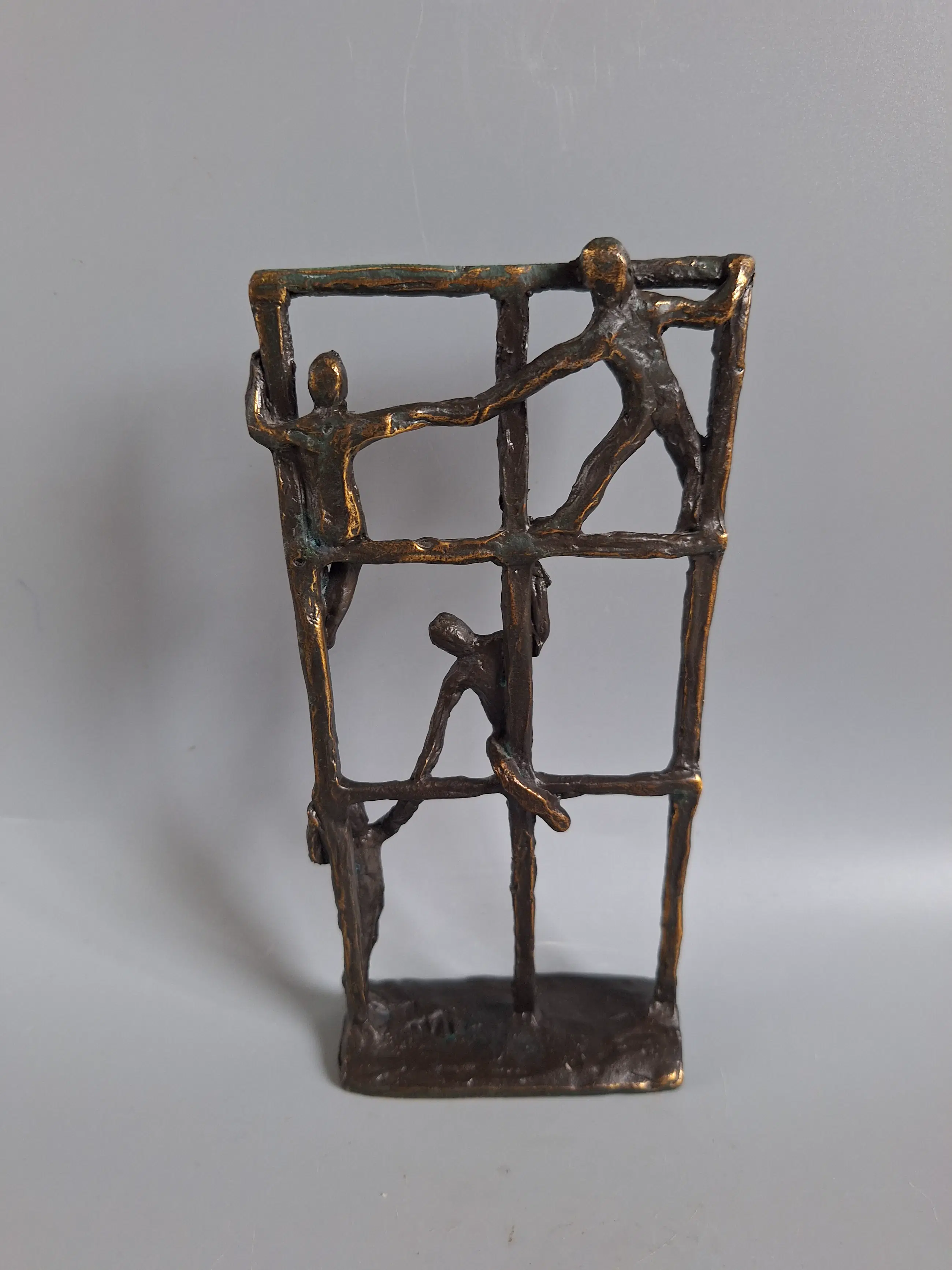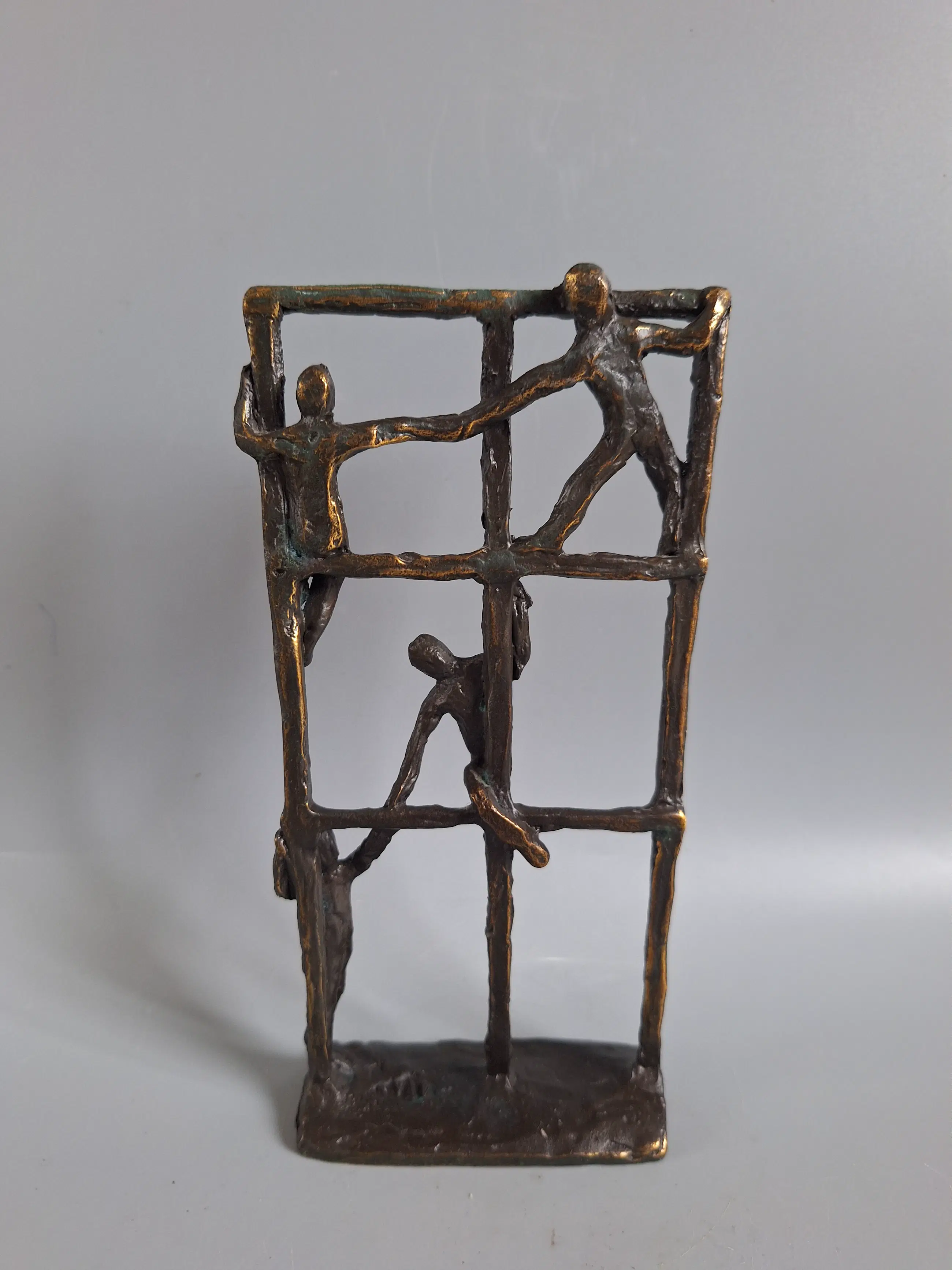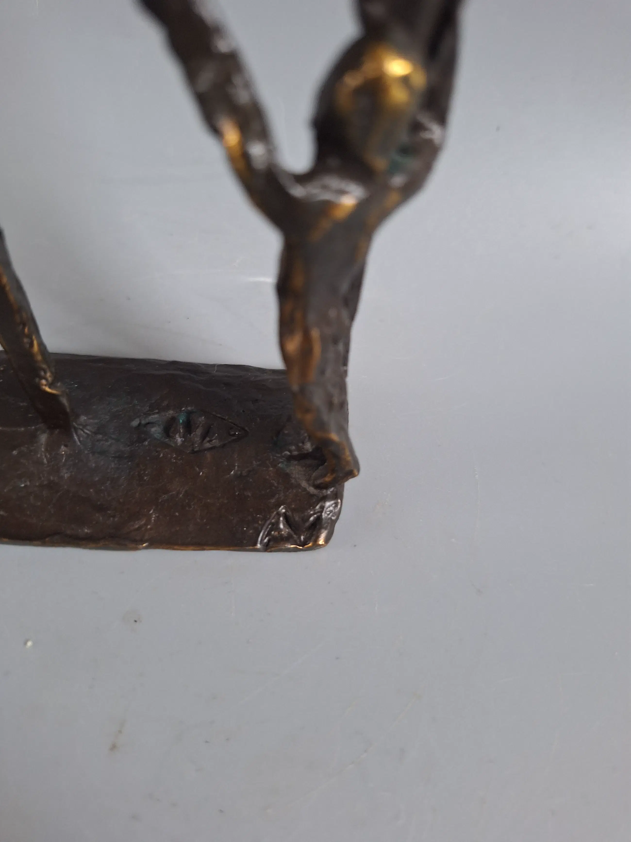 Prachtig bronzen sculptuur van kunstenares Astrid Veldhuyzen-Koppen. Naam van het kunstwerk,; " spelende kinderen" 19,5 x 9,5 cm 450 gram