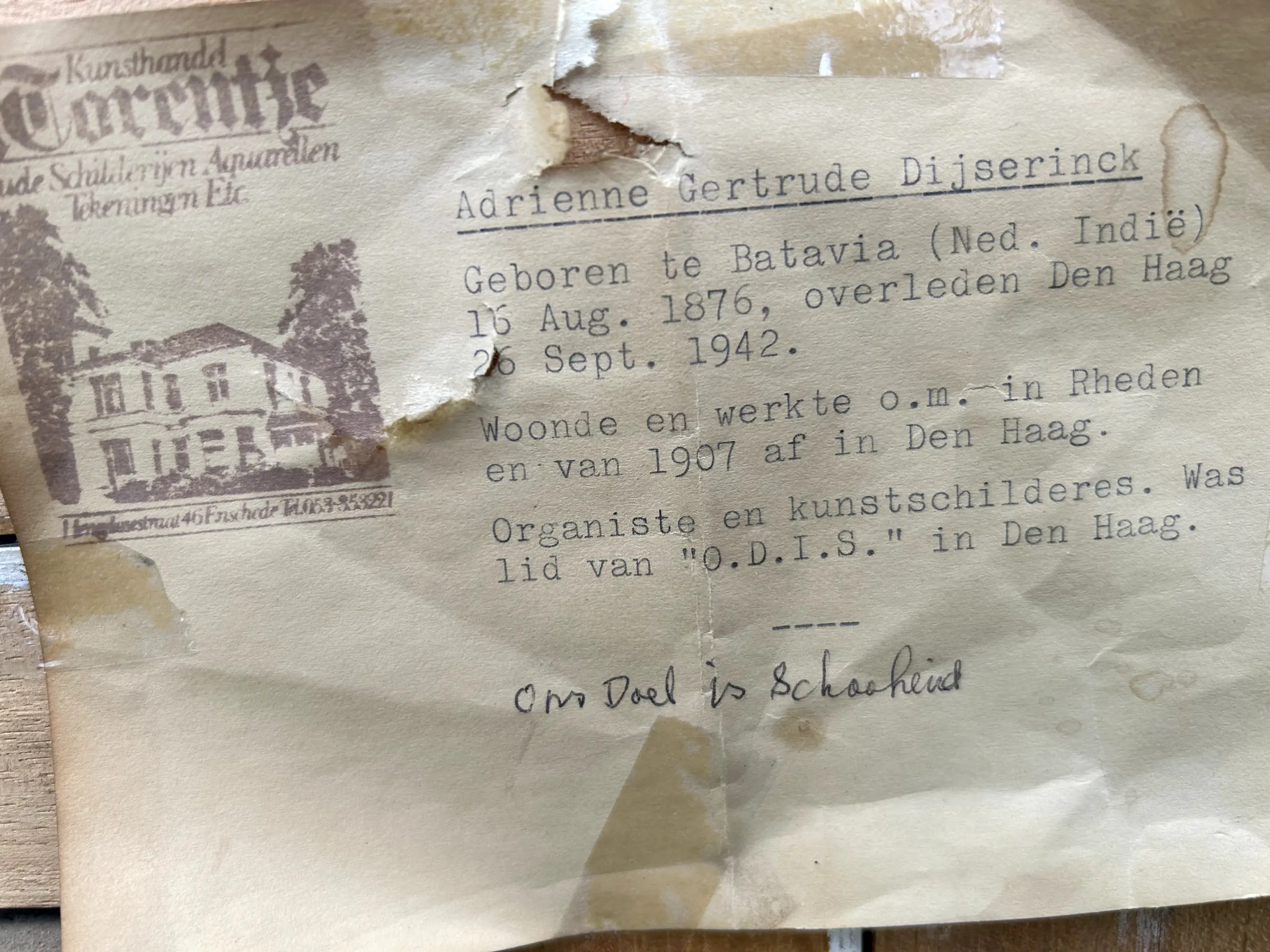 Attie was lid van Haagse schilderessenvereniging ODIS . ( ODIS = Ons Doel Is Schoonheid Of Ons Doel Is Schilderen) Ze componeerde muziek, schreef voor vrouwenkoren en publiceerde Kinderzangen. Dochter van Hendrik Dyserinck -Minister van Marine Potret van keurige heer. Naam onbekend