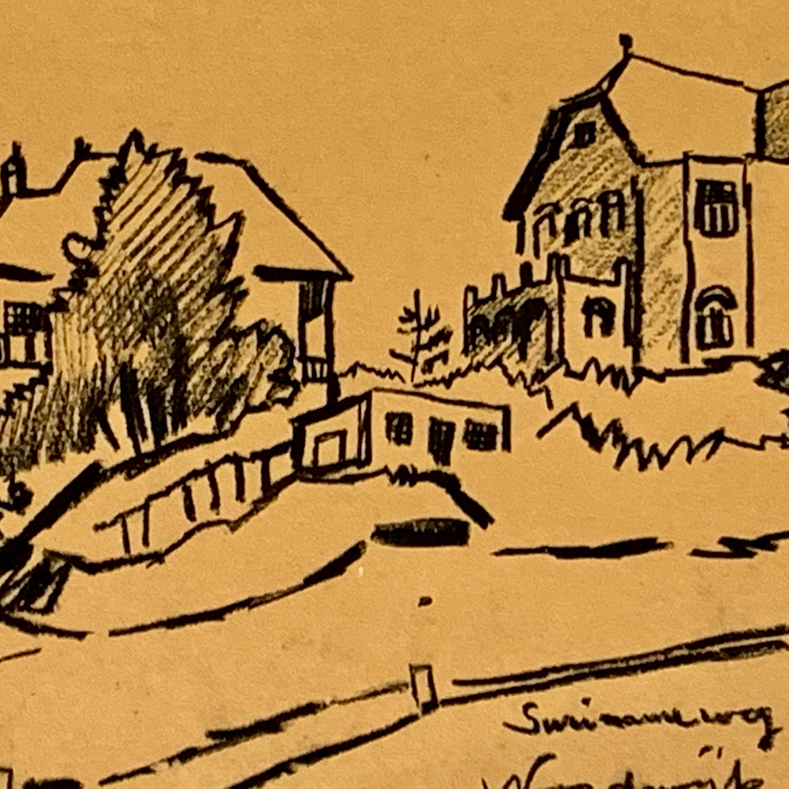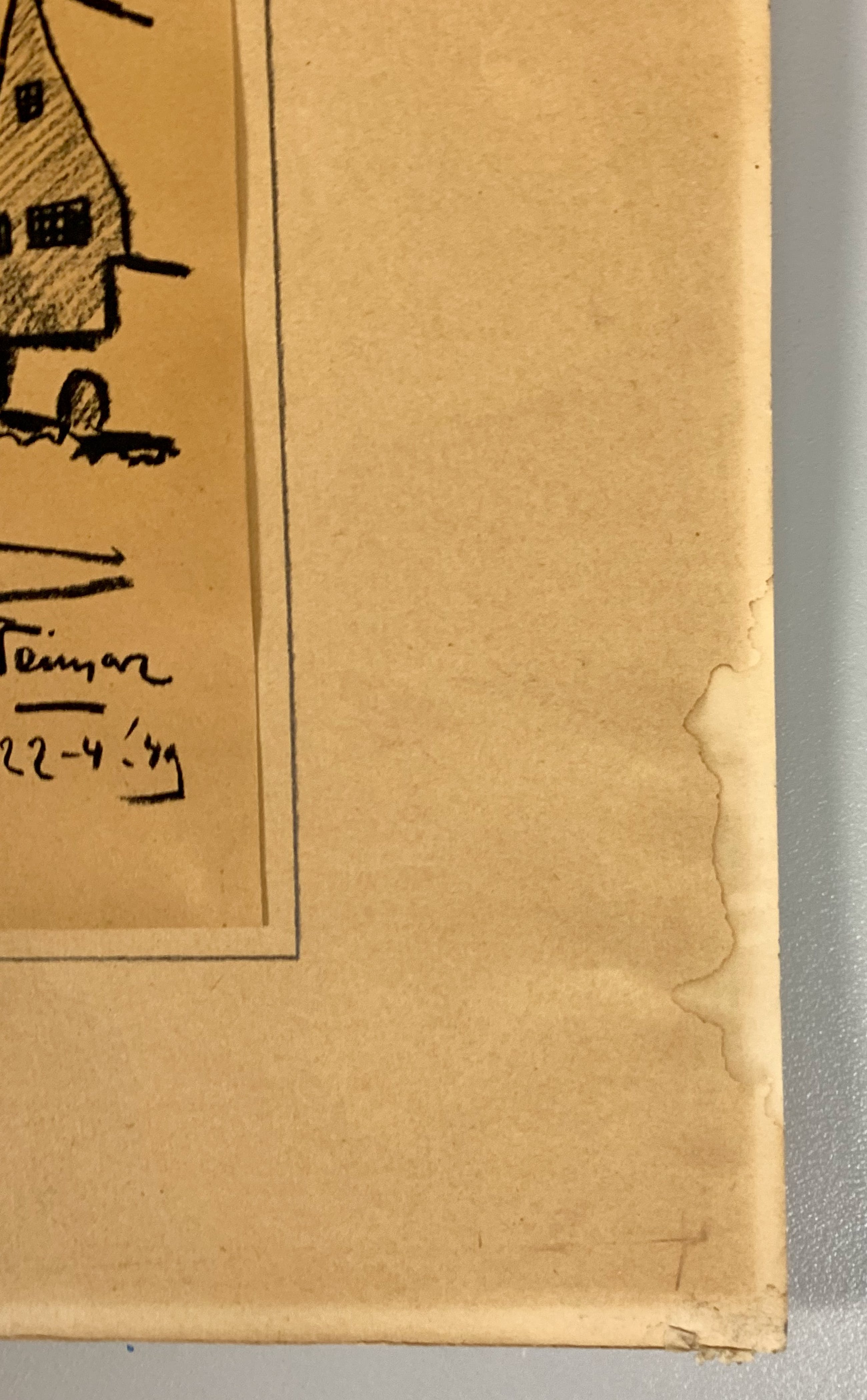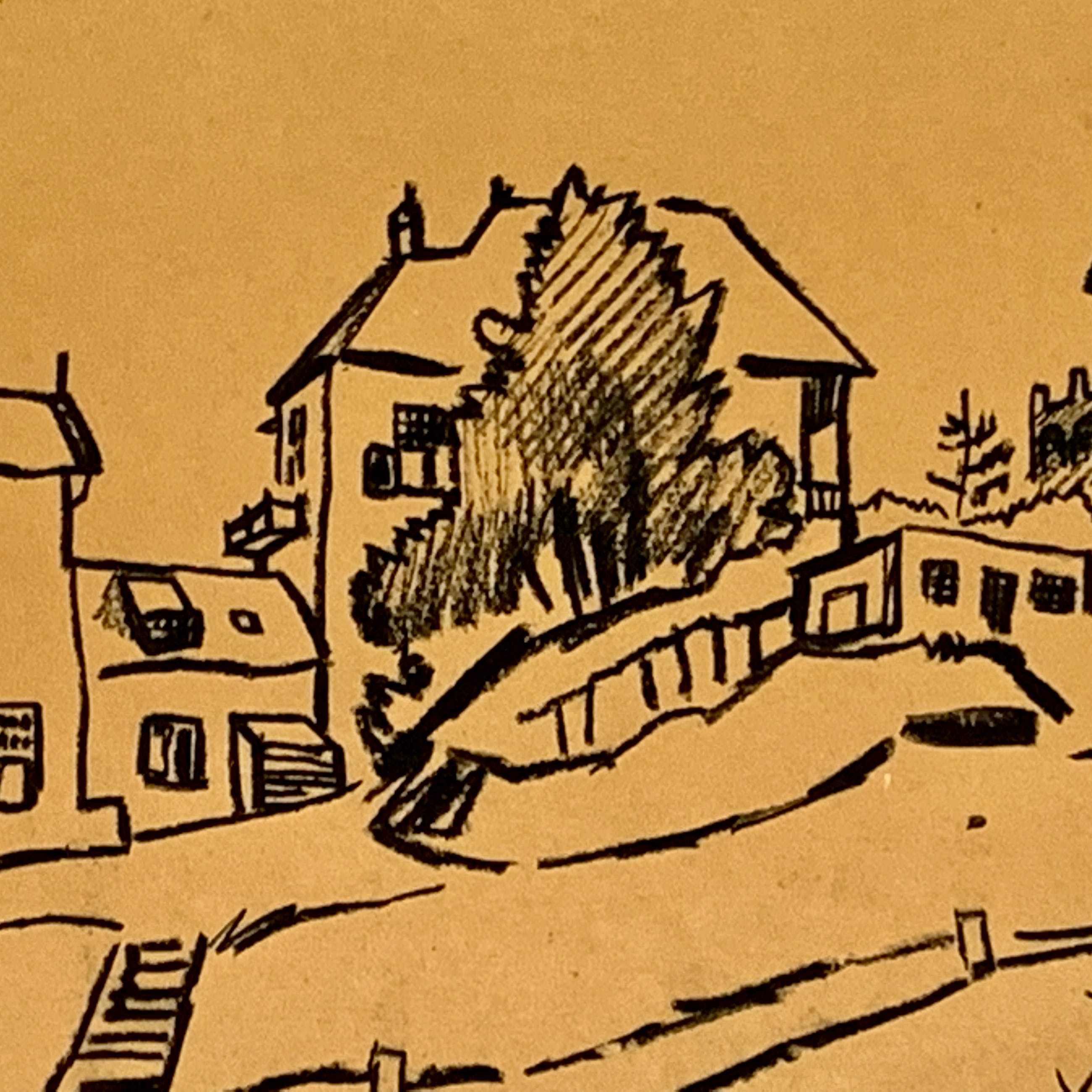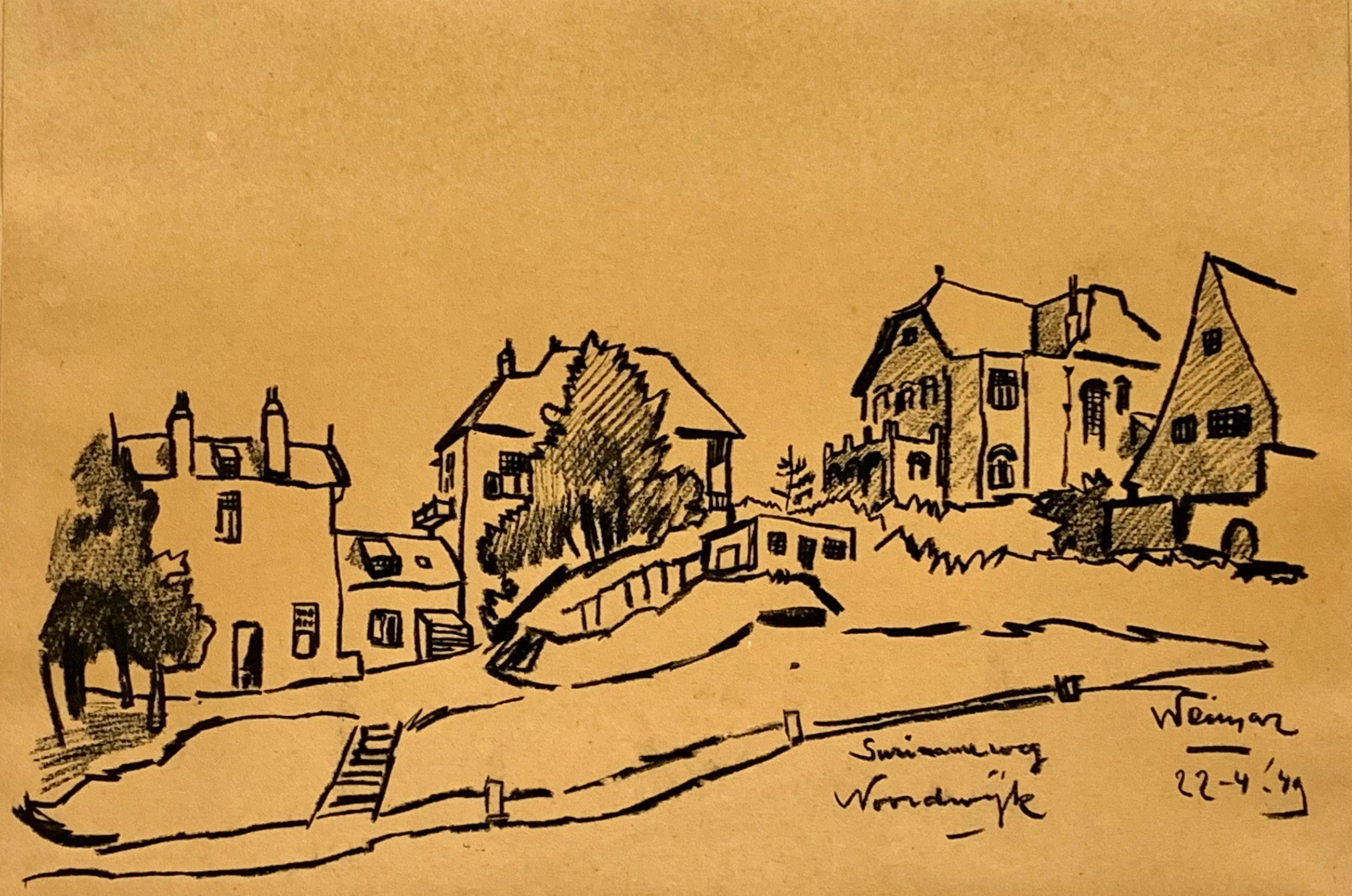 Conditie: tekening zeer goed. Tekening is geplakt op passe-partout deze heeft vlekjes, zie foto's. Gedateerd 22-4-'49. Weet niet zeker of het pen inkt, penseel inkt of potlood is vervaardigd. Wordt zorgvuldig verpakt en verzekerd verzonden.
