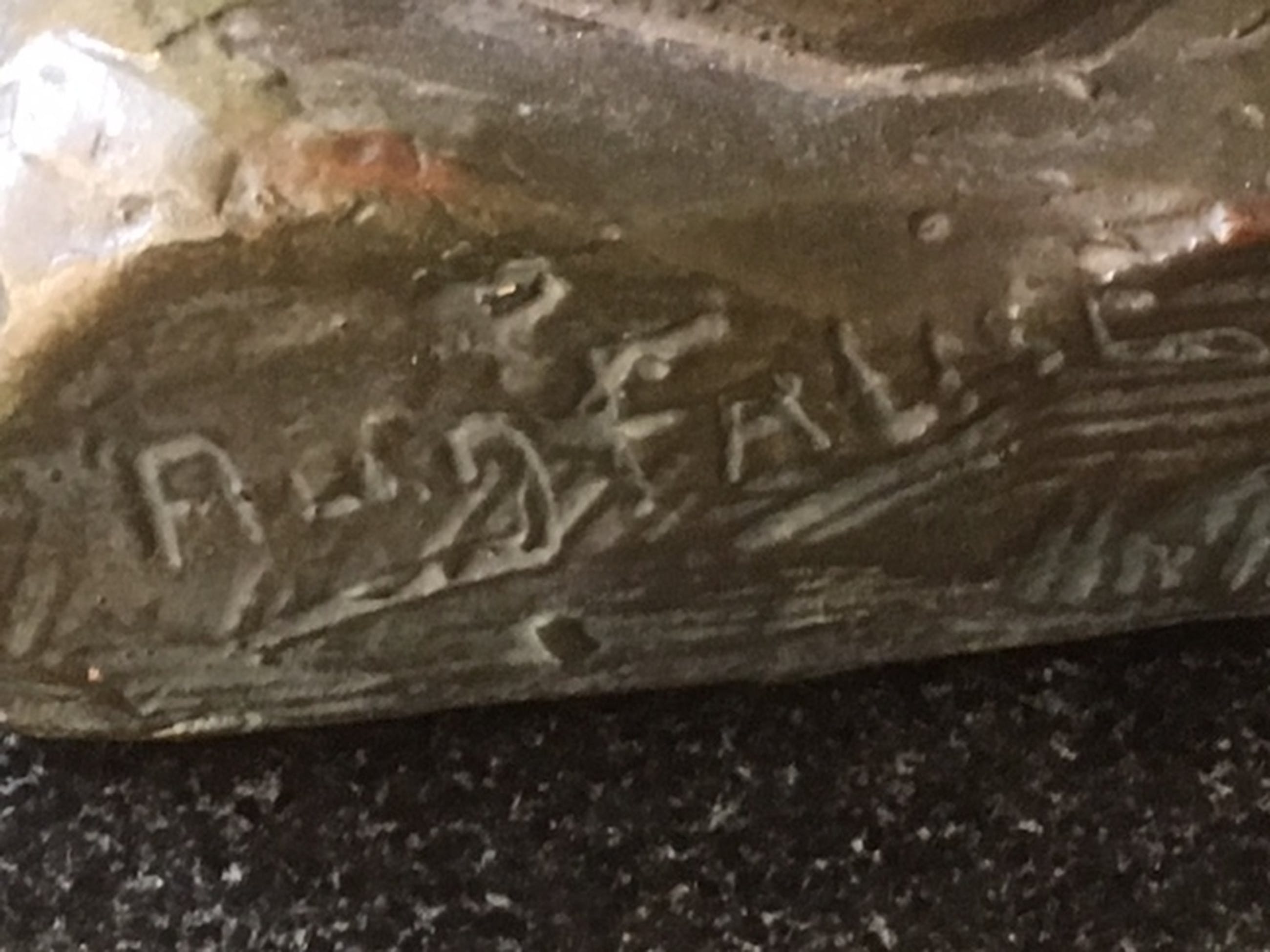 Beeld verkeerd in goede conditie, één zeer lichte beschadiging aan het kapje van de vrouw.