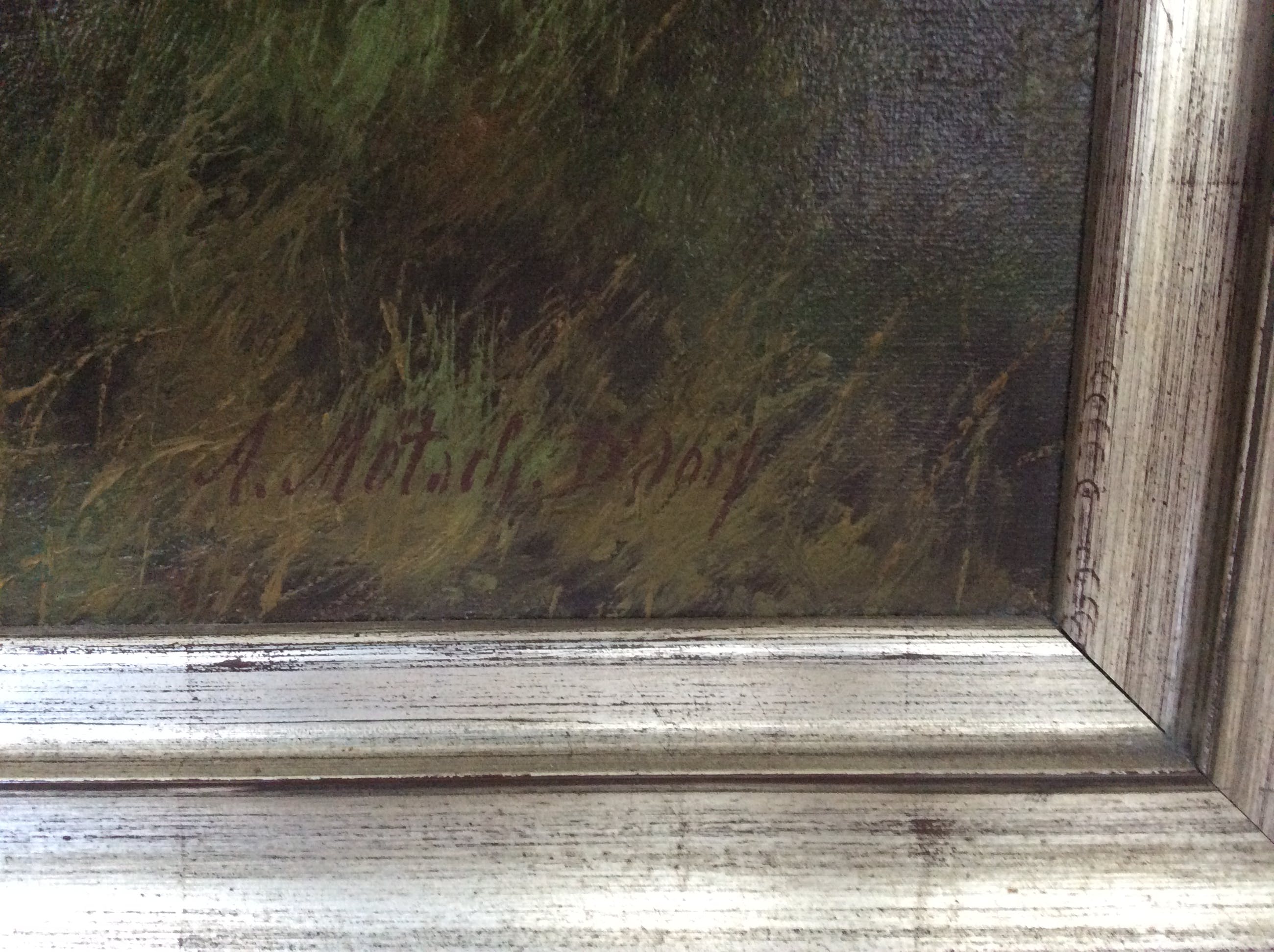 August Motsch (Düsseldorf 1869 - 1952) Bekend als landschapsschilder wild en de jacht. Op internet is meer te zien in deze stijl welke hij heeft geschilderd. Het is mij niet bekend welk jaar werk is gemaakt?