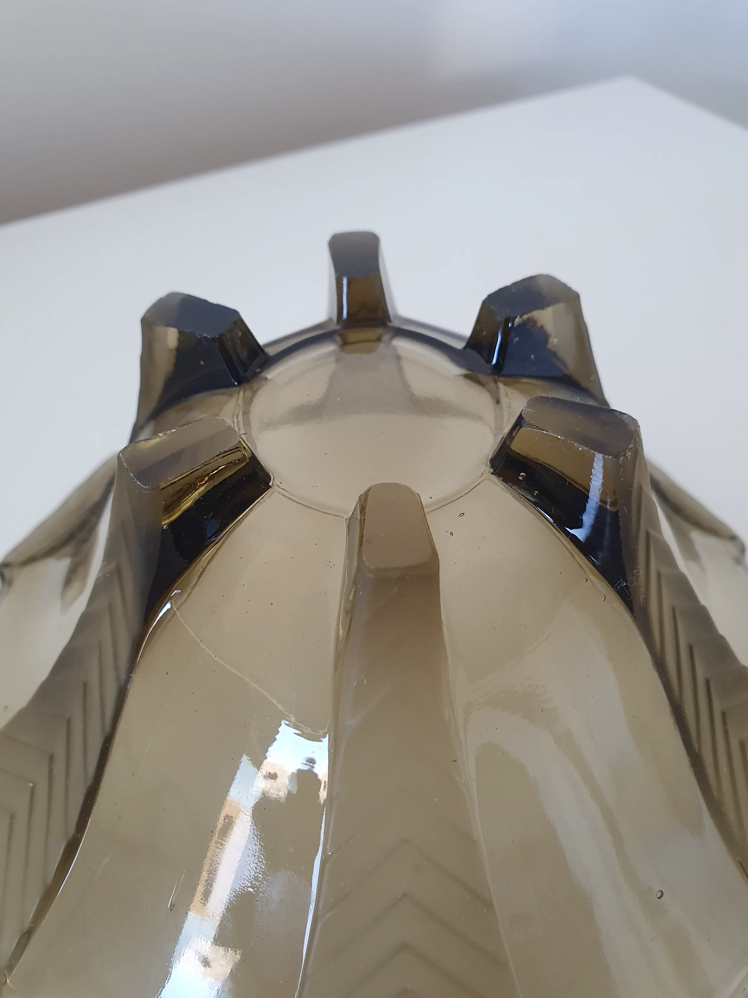 Mooie kleiner model schaal, model "Athene" in rookbruin, gemaakt door Walther & Söhne in 1934. De persglazen schaal is terug te vinden in de catalogus van 1935.