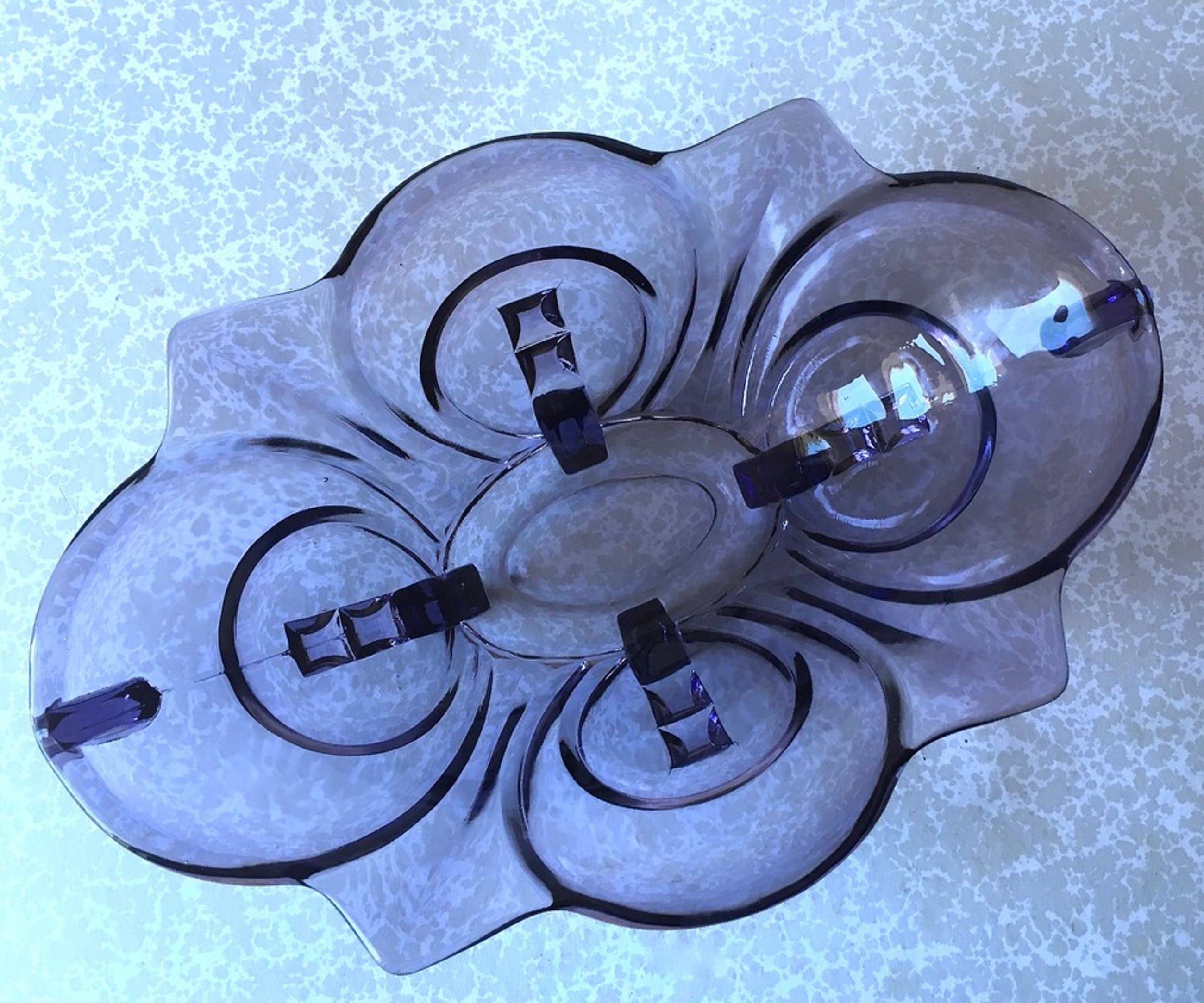 Goede August Walther & Söhne paarse art deco schaal met modelnaam "Irene" uit Ca. 1935, Ottendorf Duitsland.