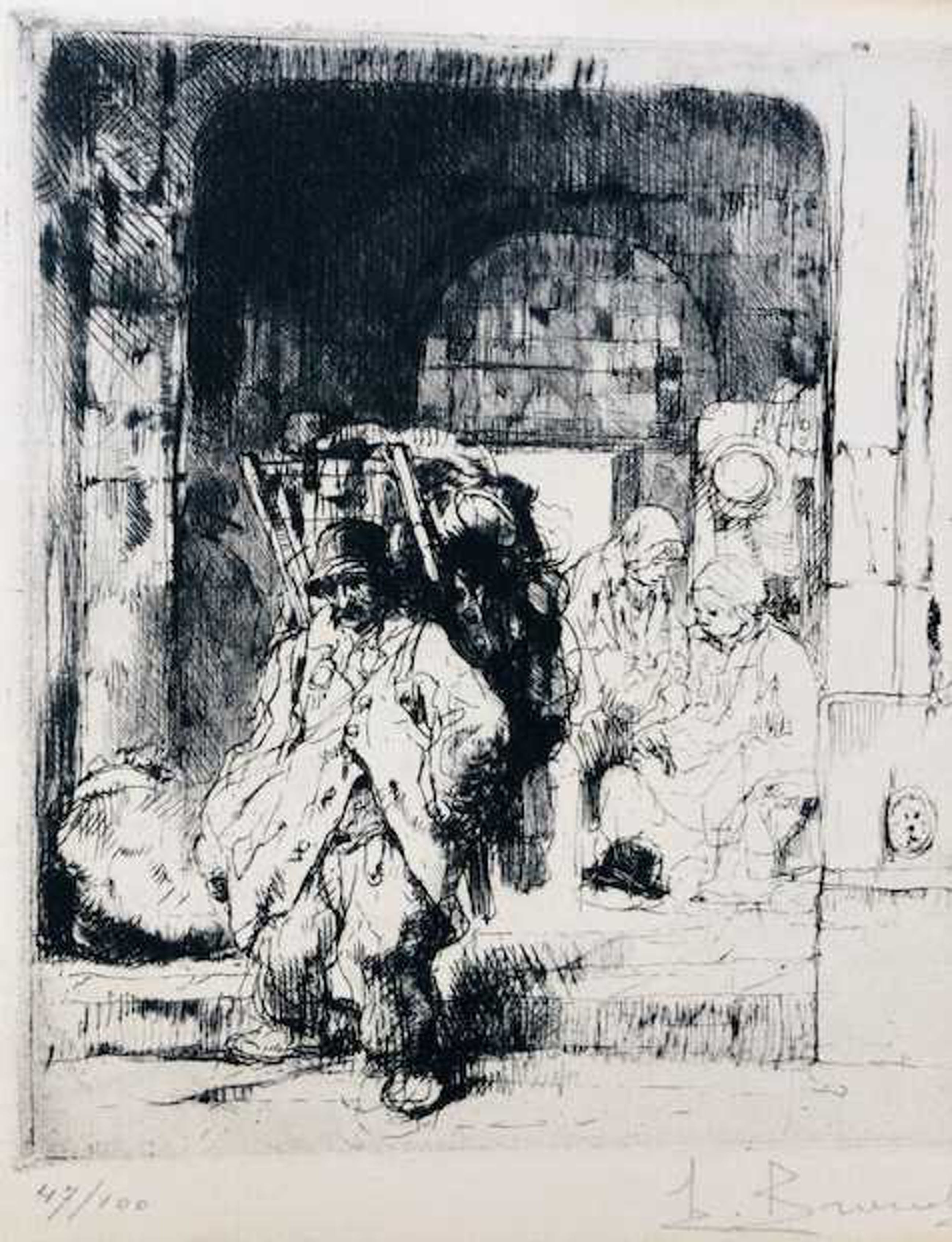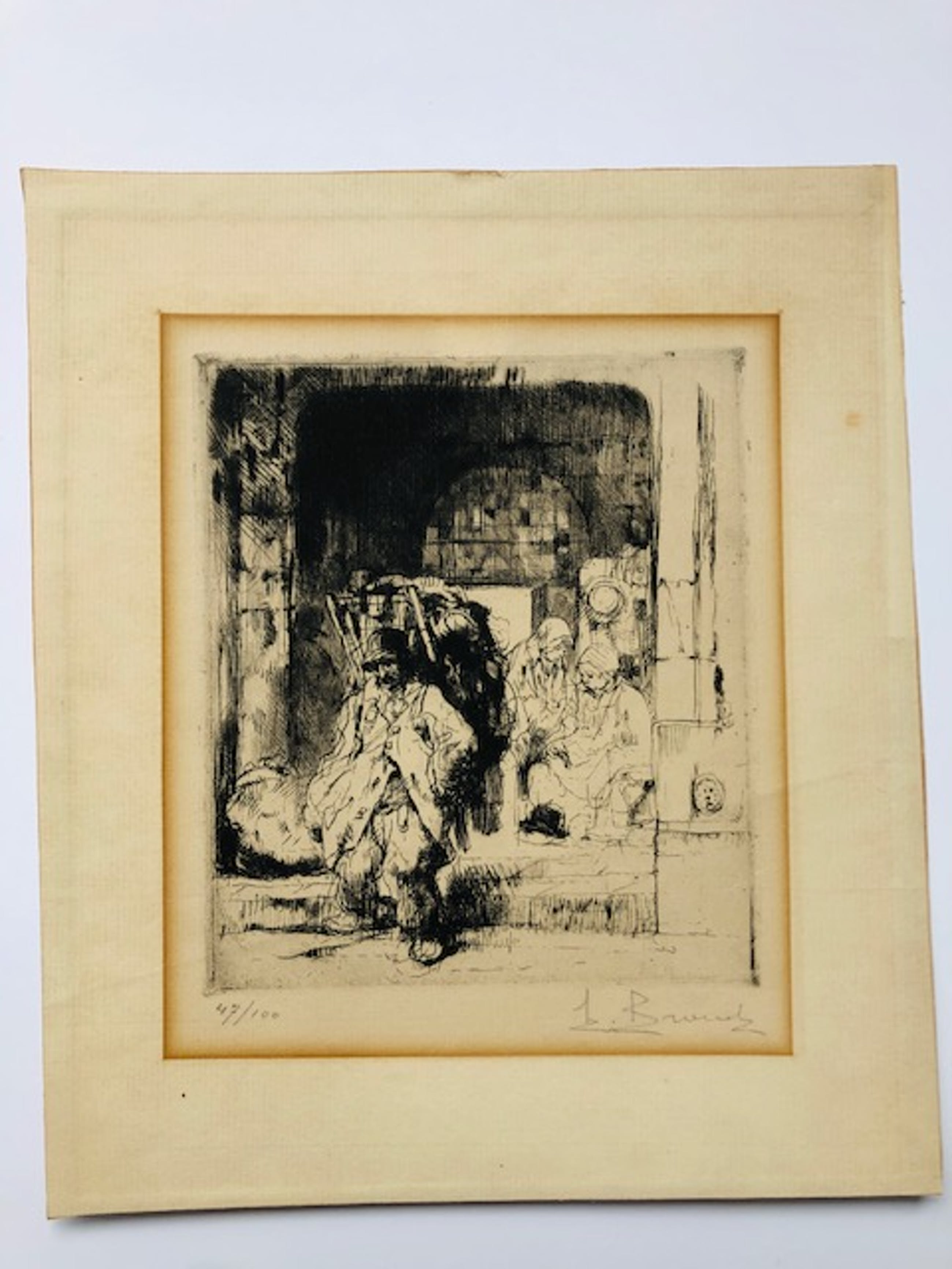Grafiek van August Brouet. Met potlood gesigneerd. Prent is goed, de witrand om de prent heen heeft duidelijk ouderdomssporen.