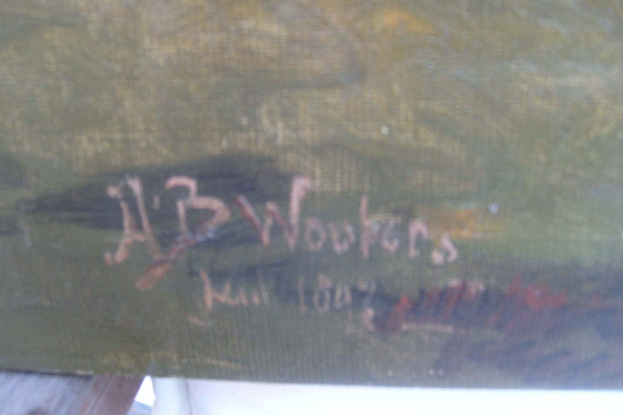 werk: l.o.gesigneerd, A.J.B. Wouters 1897 / Paard en wagens in landschap
