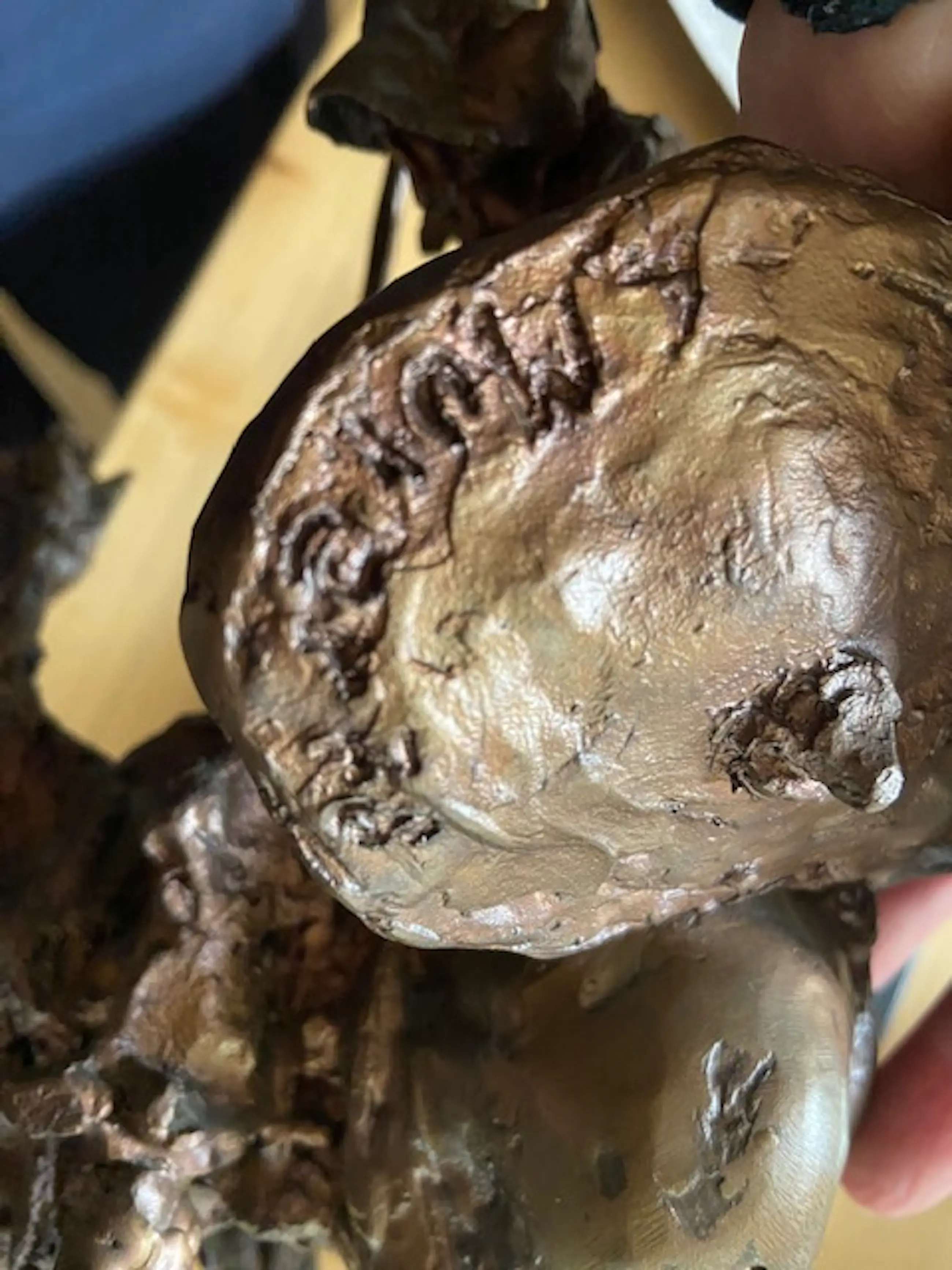 Dit bronzen beeld is uitgevoerd bij brons gieterij Venturi Arte. De kleur is donker bruin gepatineerd.