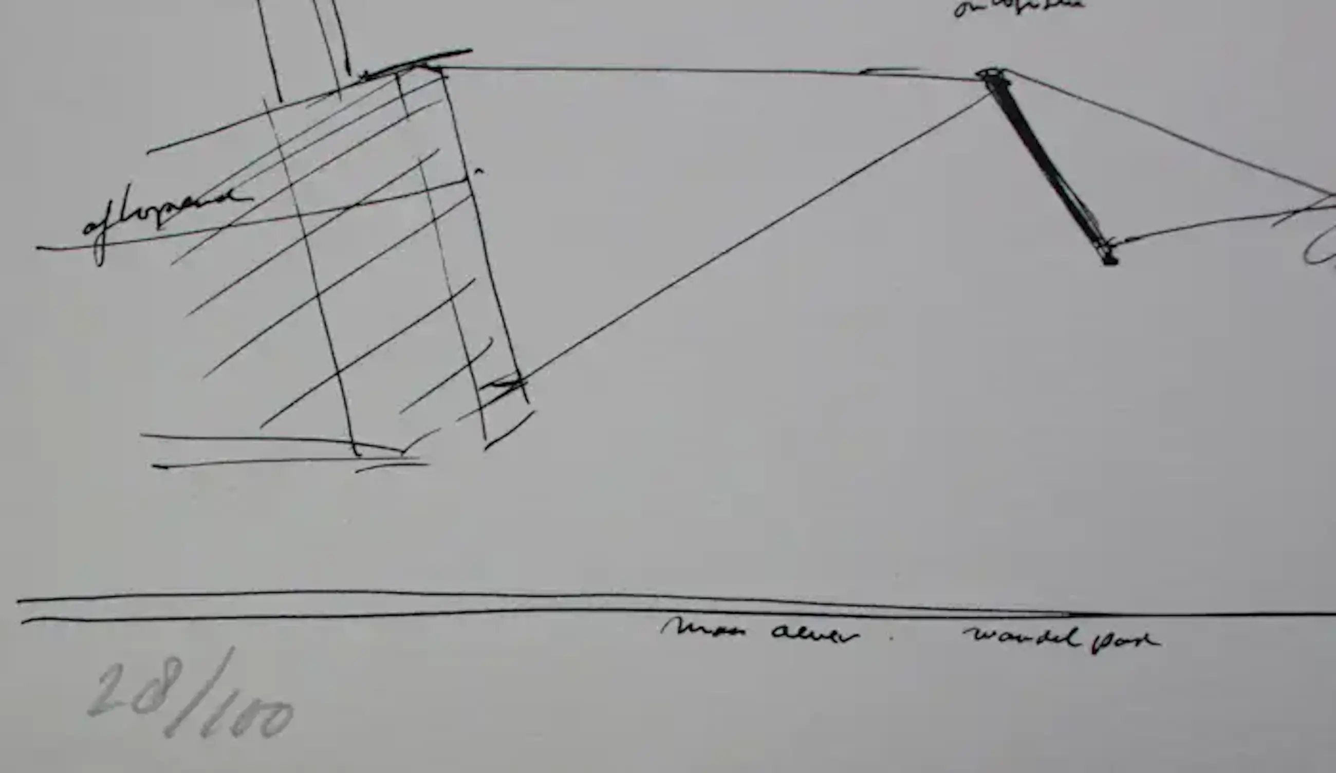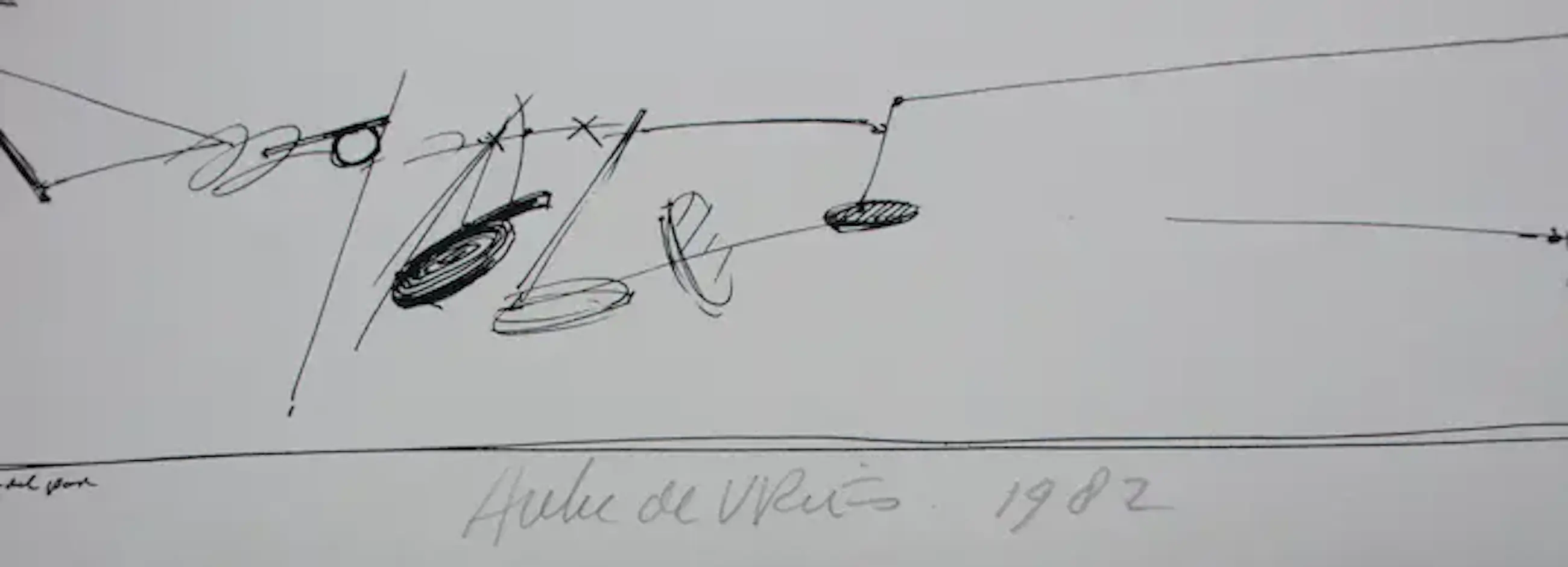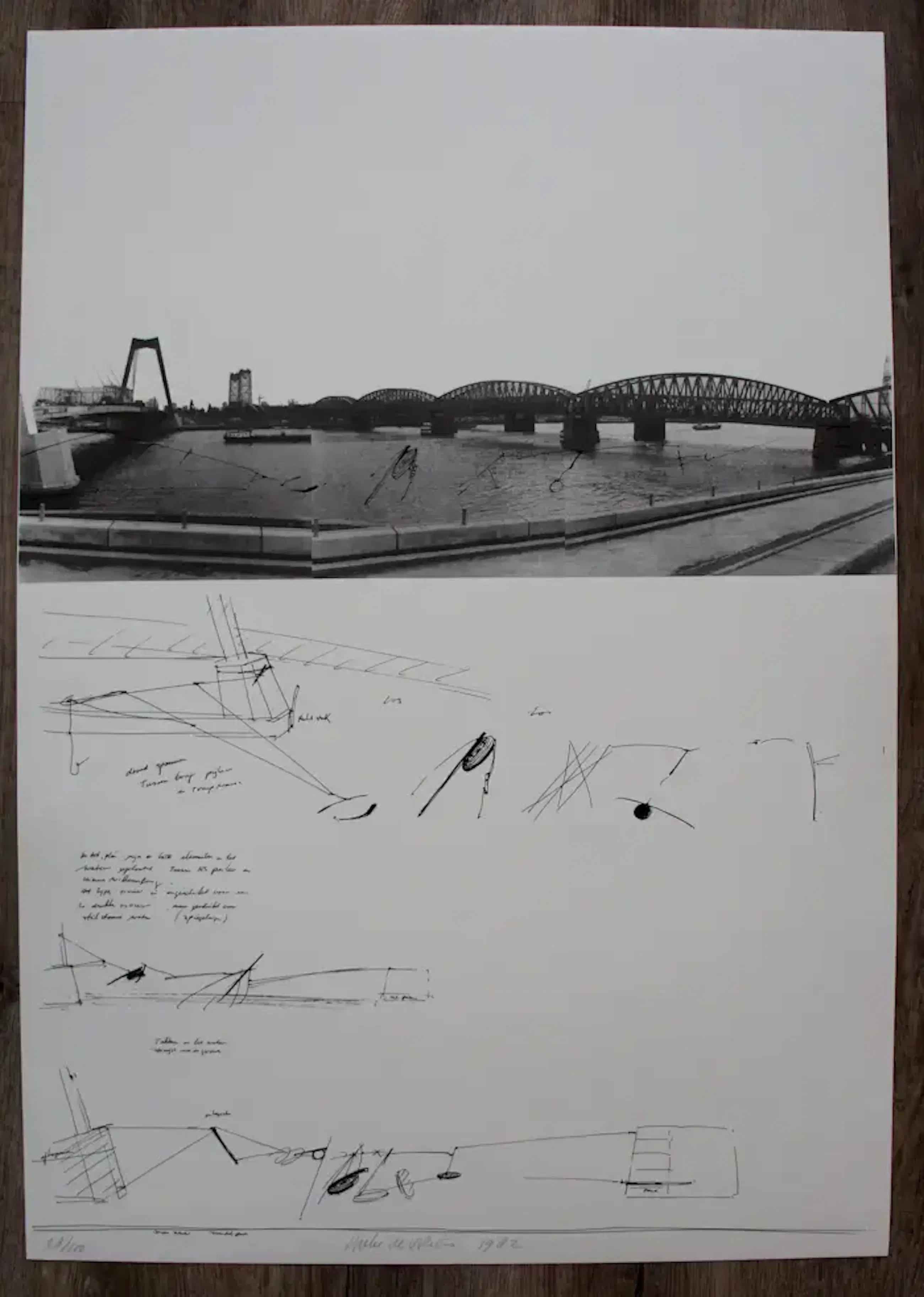 Grote litho van Auke de Vries, het ontwerp voor het bekende 'Maasbeeld' in Rotterdam. Jaar: 1982. Formaat H100 x B70cm, litho op dik papier, genummerd 28/100 (kan afwijken i.v.m. het in bezit hebben van meerdere exemplaren) , en gesigneerd. De litho is nooit ingelijst. De authenticiteit van het aangeboden werk wordt volledig gegarandeerd. Een certificaat van echtheid kan, op aanvraag, worden gemaild.