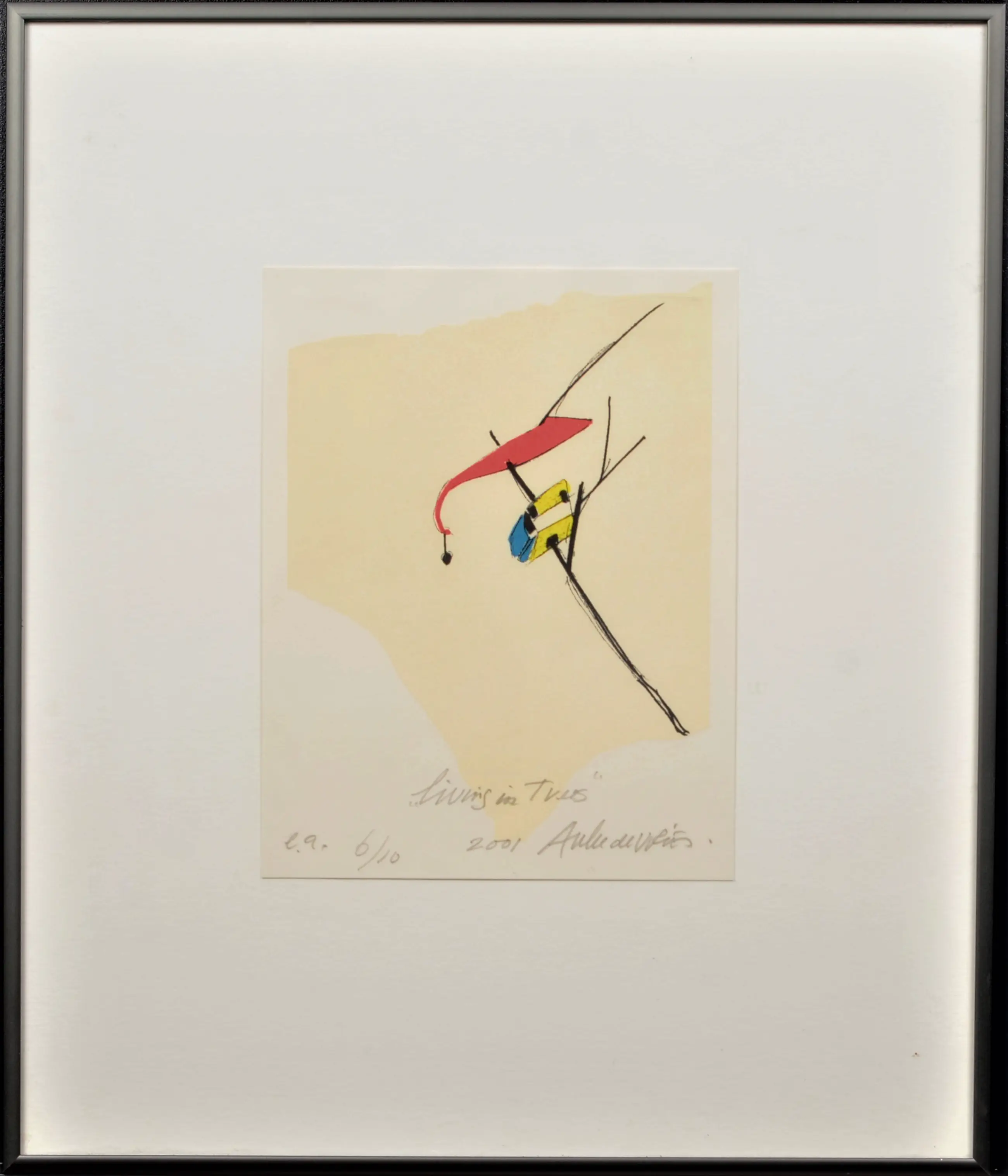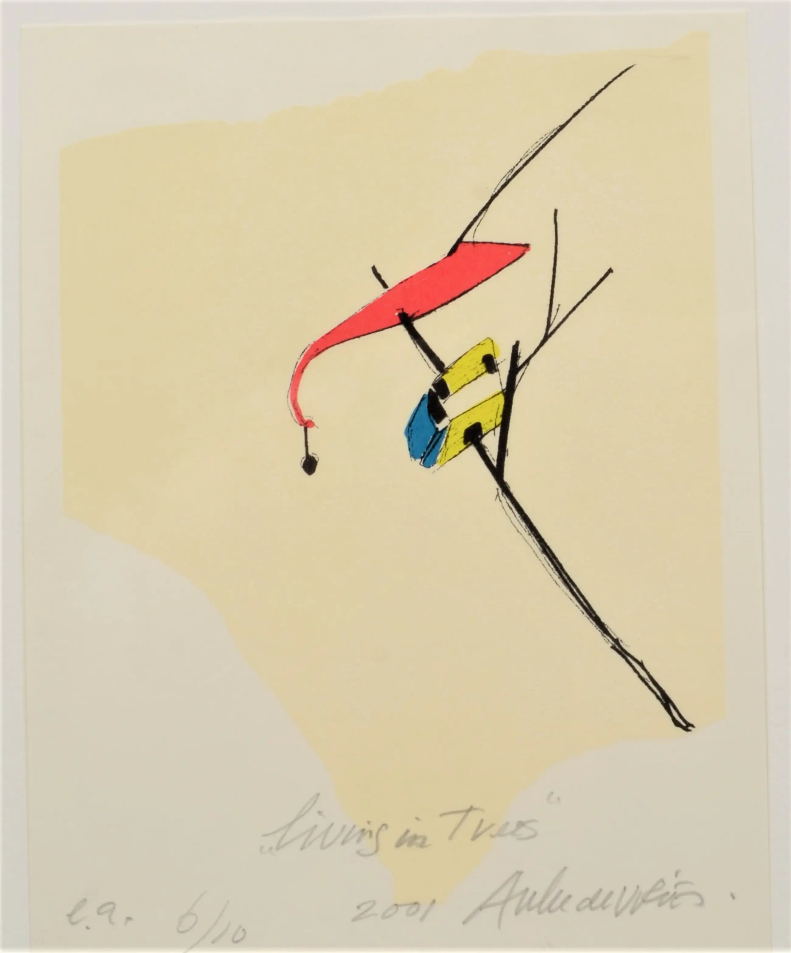 Living in trees met opdracht aan de achterzijde. Fraai werk in uitstekende conditie.