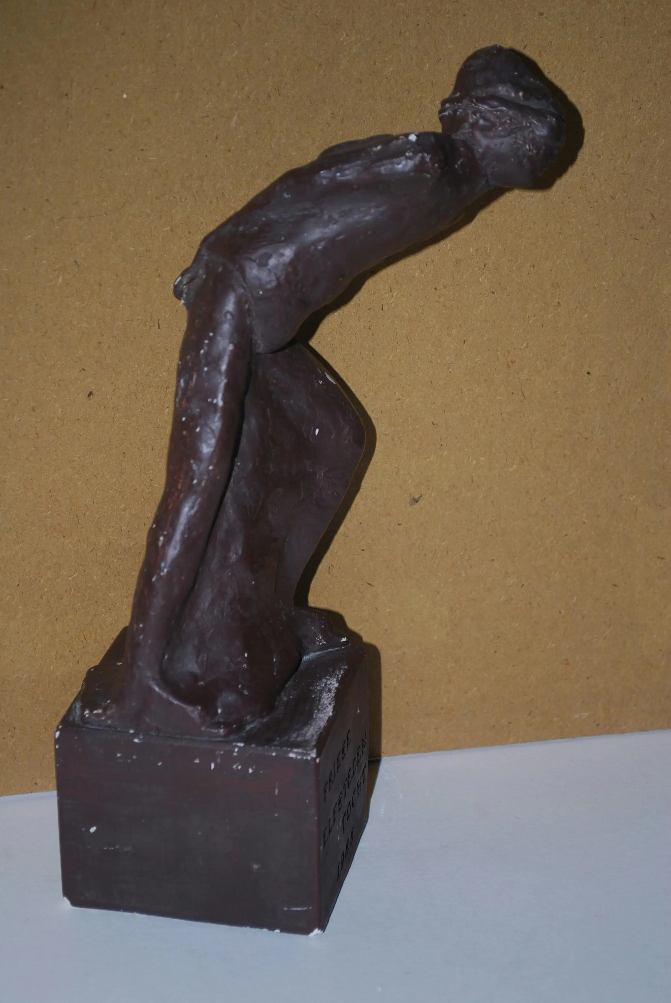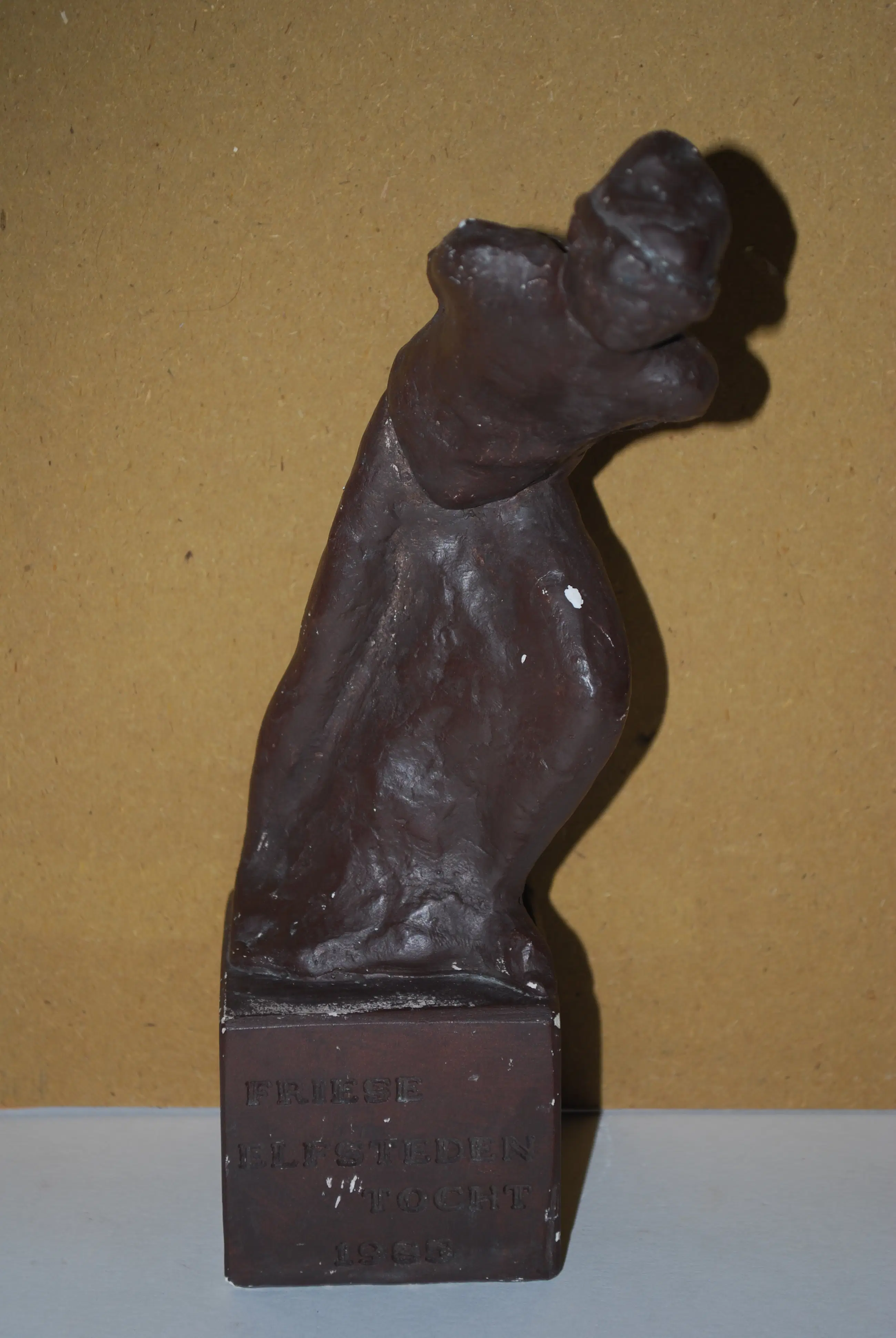 Behoorlijk zeldzame replica in gips uit 1985 van het bronzen beeld te Leeuwarden (1966), voorstellende Reinier Paping (winnaar 1963).
