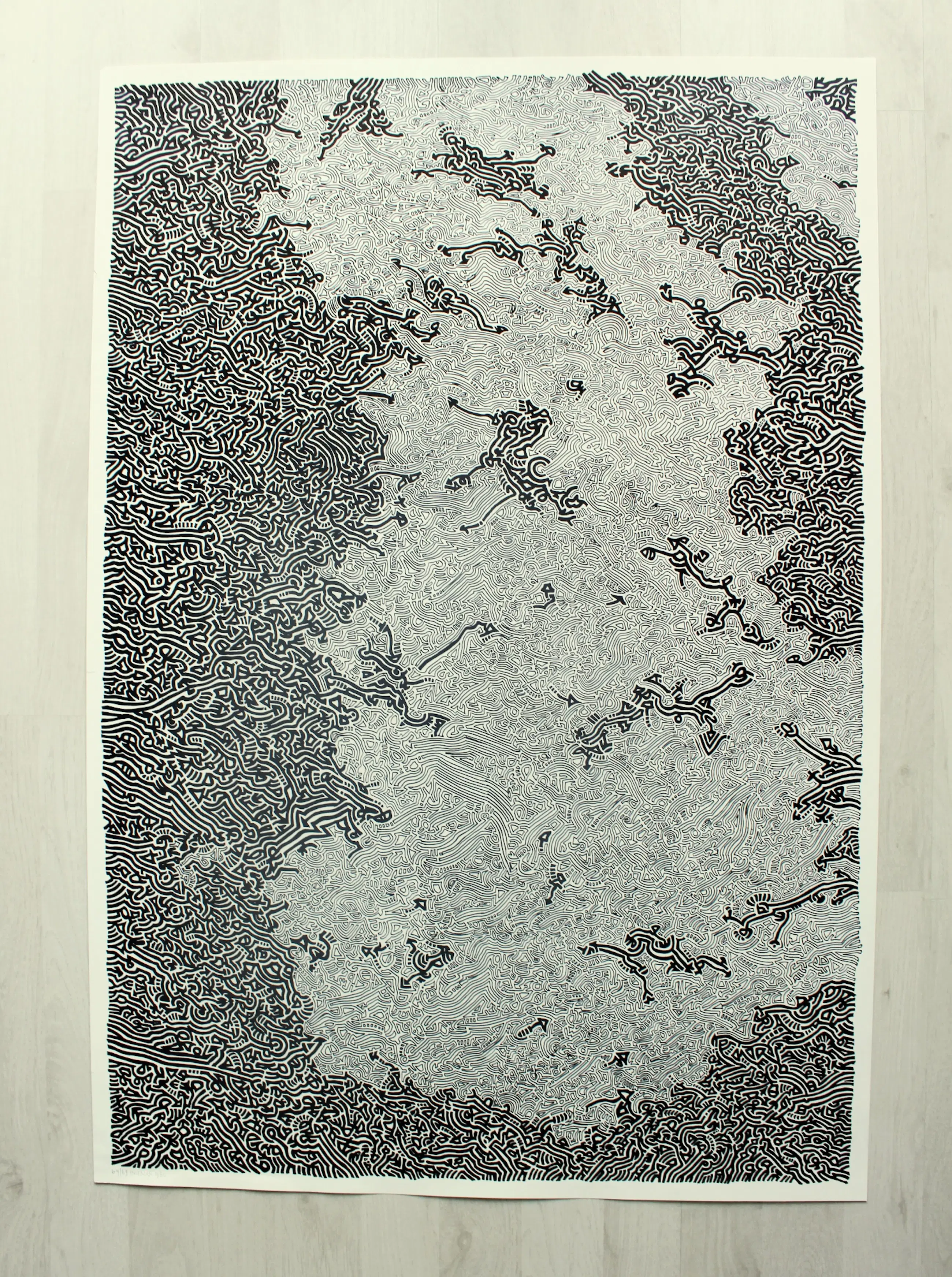 Het kunstwerk is in perfecte staat – er is een klein scheurtje (3 mm) aan de linkerkant van de afbeelding, dat onder de lijst verborgen kan worden – zie foto's.