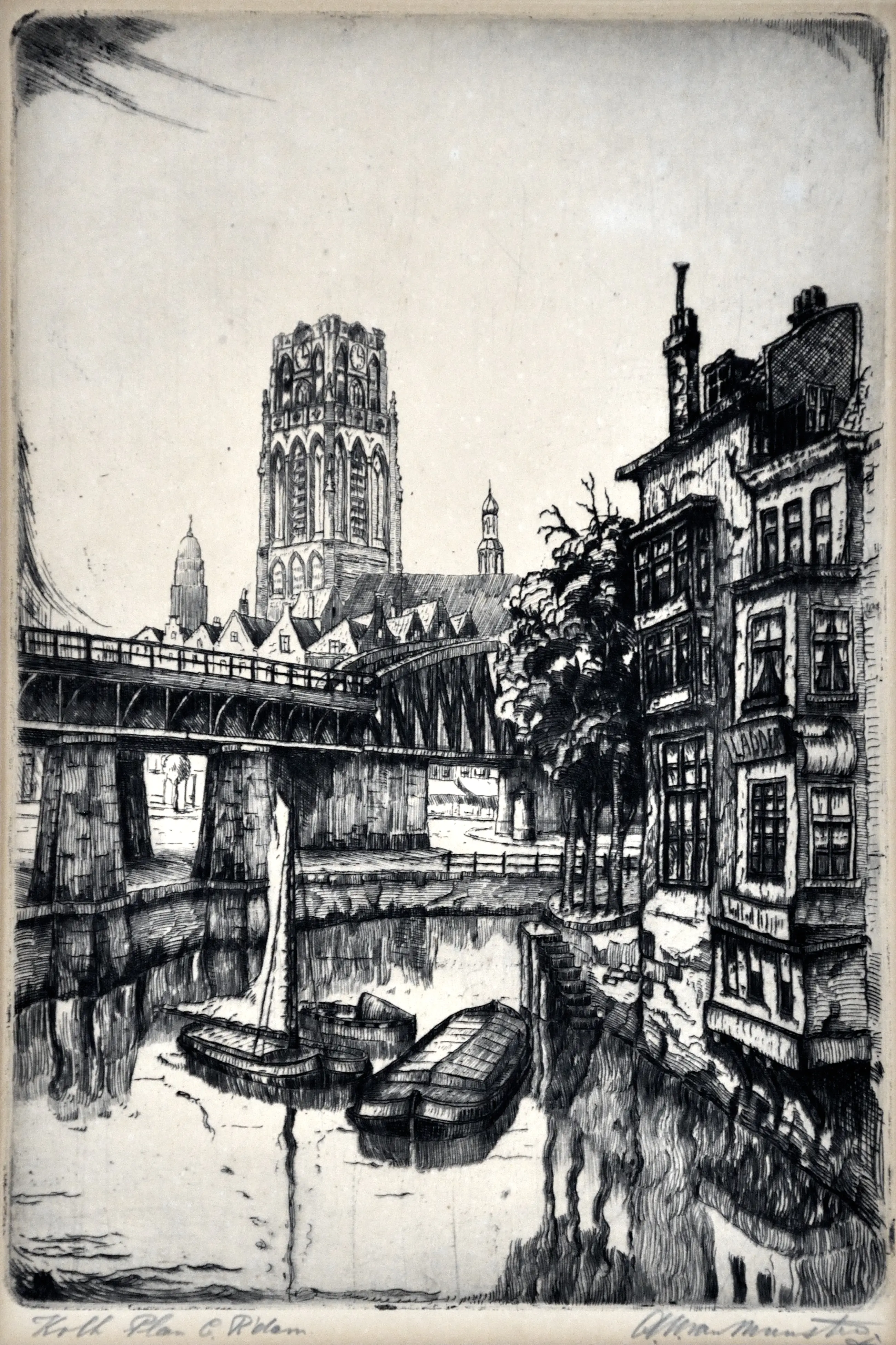 De afgebeelde ets biedt een zicht op de Kolk in het vooroorlogse (en met het bombardement verwoeste) centrum van Rotterdam, ongeveer waar nu de bekende Paalwoningen staan aan de blaak, net ten Noorden van de Oude Haven.