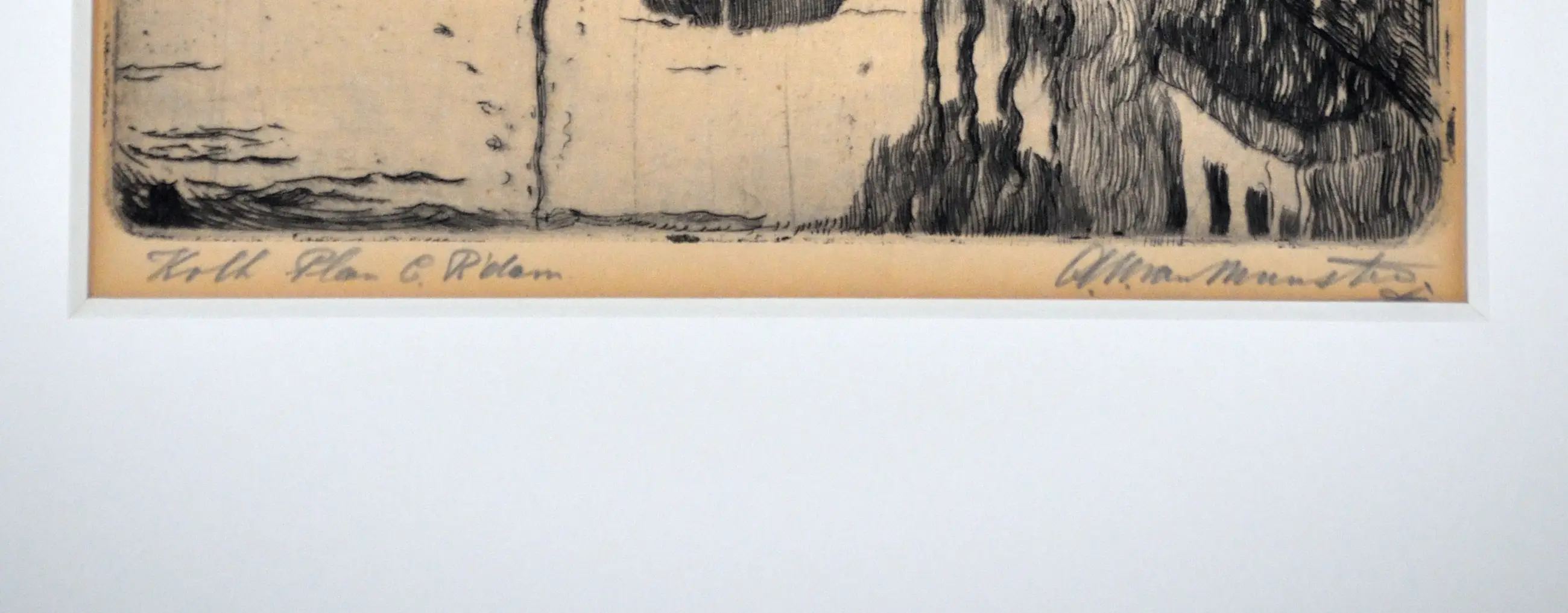 De ets is enigszins gebruind, maar in uitstekende staat . De ets is professioneel ingelijst in een strakke Barth aluminium lijst met een recent zuurvrij passe-partout, klaar om te worden ingepast in een hedendaags interieur..