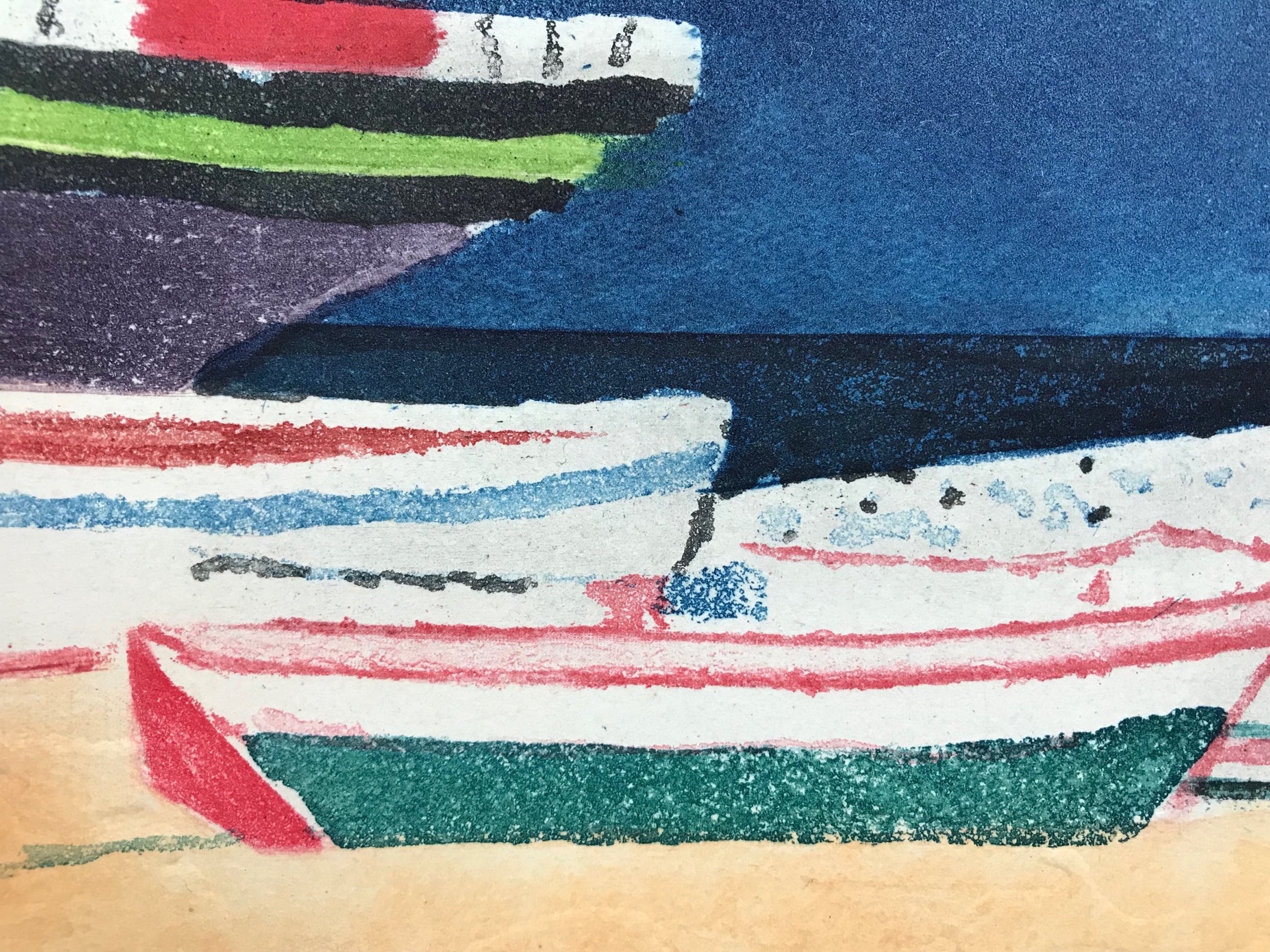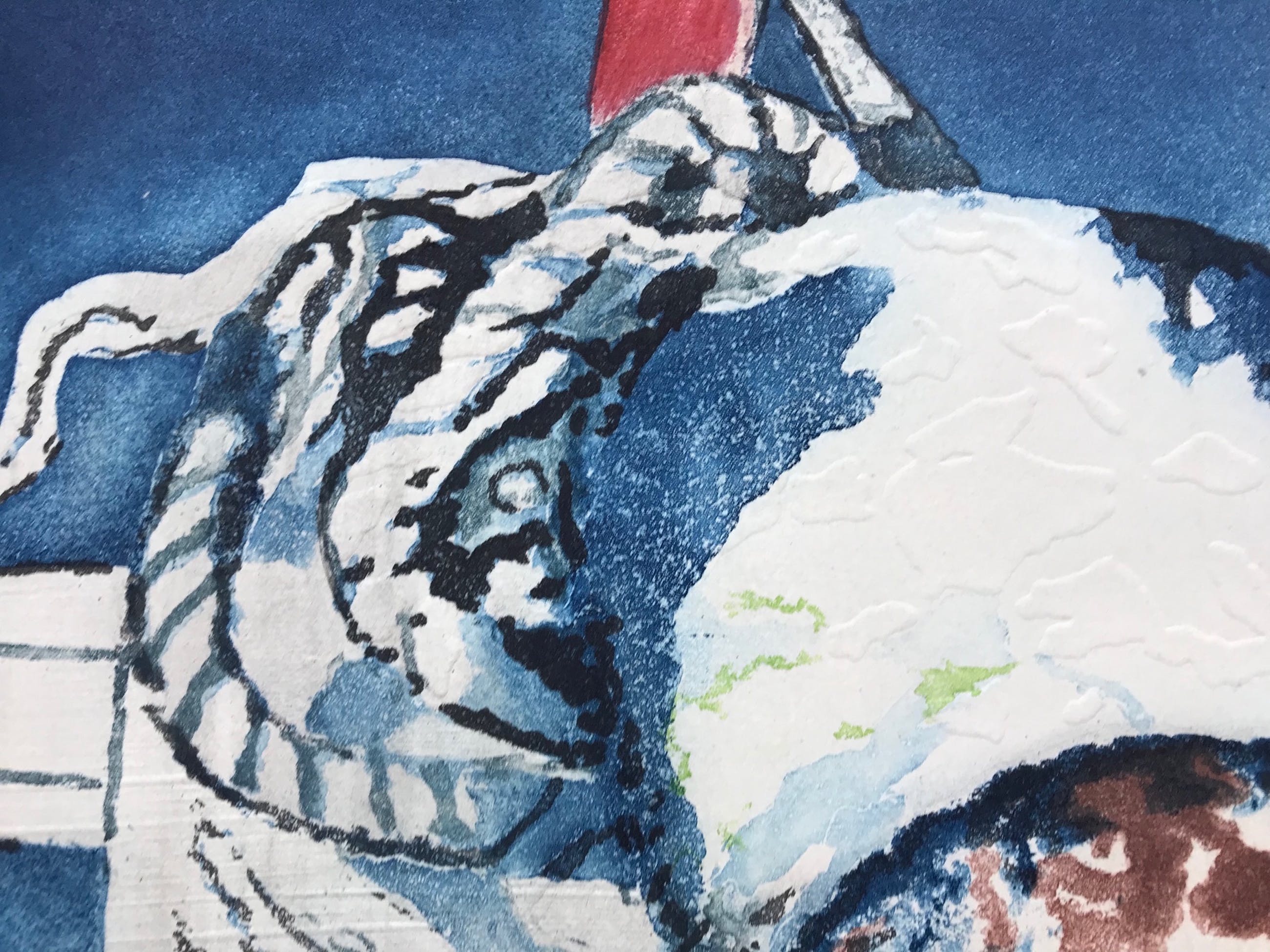 Litho van Axel Olson met gepreegde details. De afmeting van het papier is 43,5 bij 71 cm, de afbeelding zelf is 28 bij 58 cm.