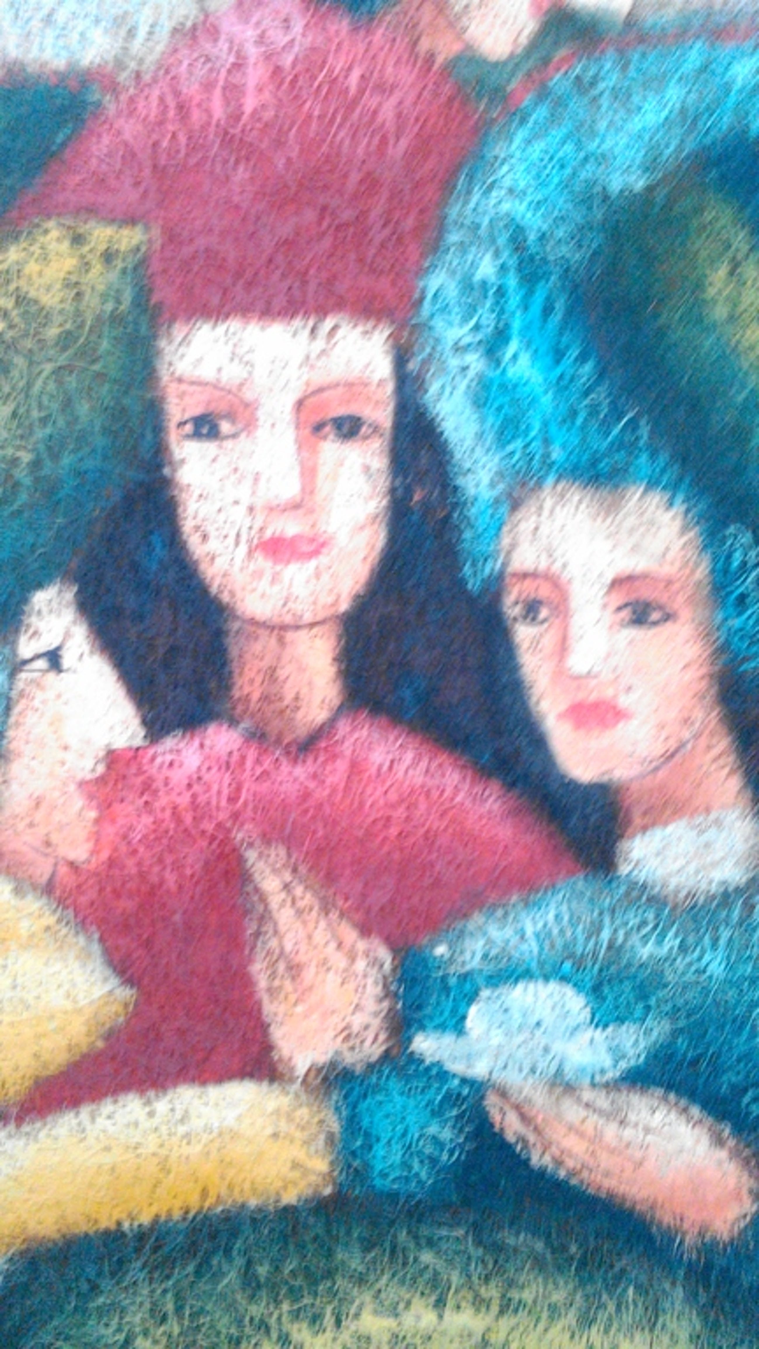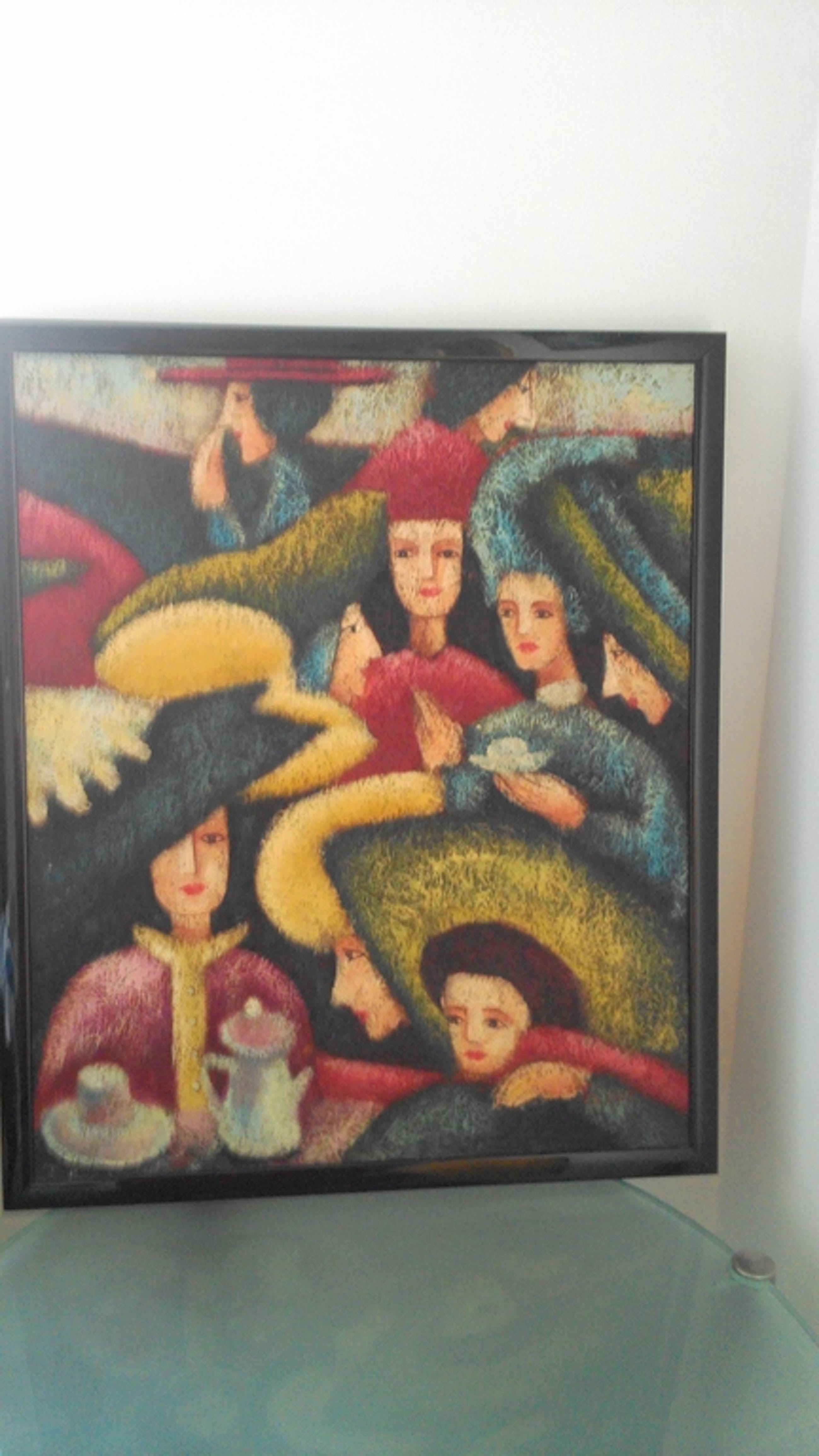 Vrolijk damesgroepje geschilderd op cocos canvas en gesigneerd met B. Long
