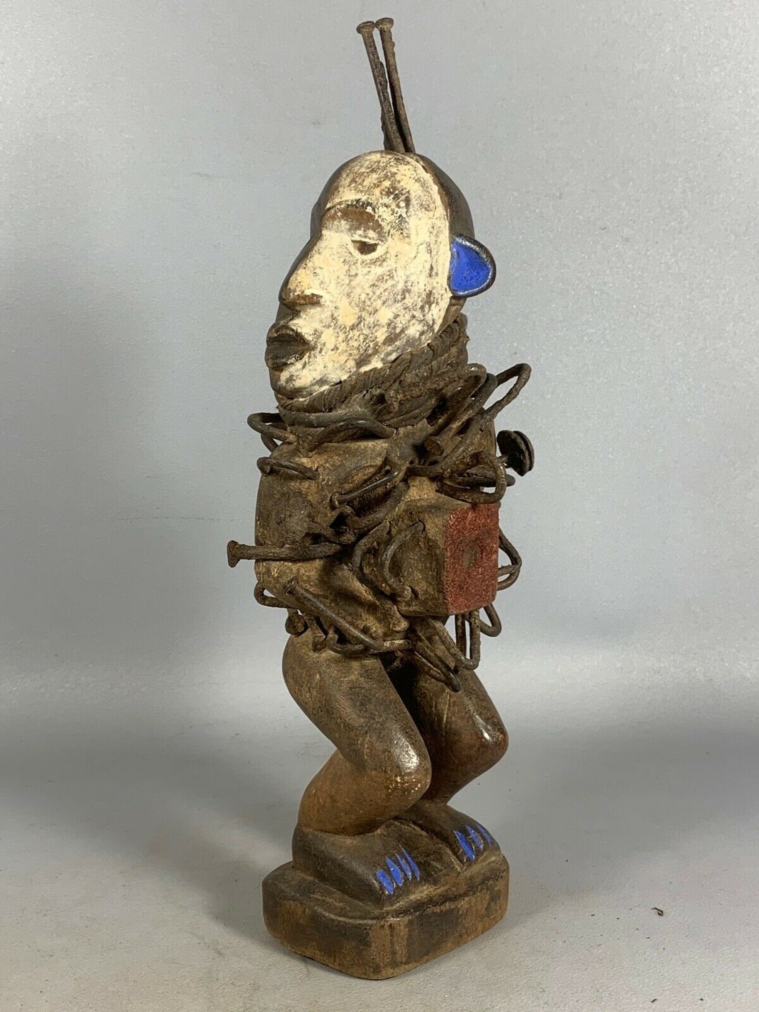 Old Tribal used African magic protection nail statue from the Bakongo, Congo.