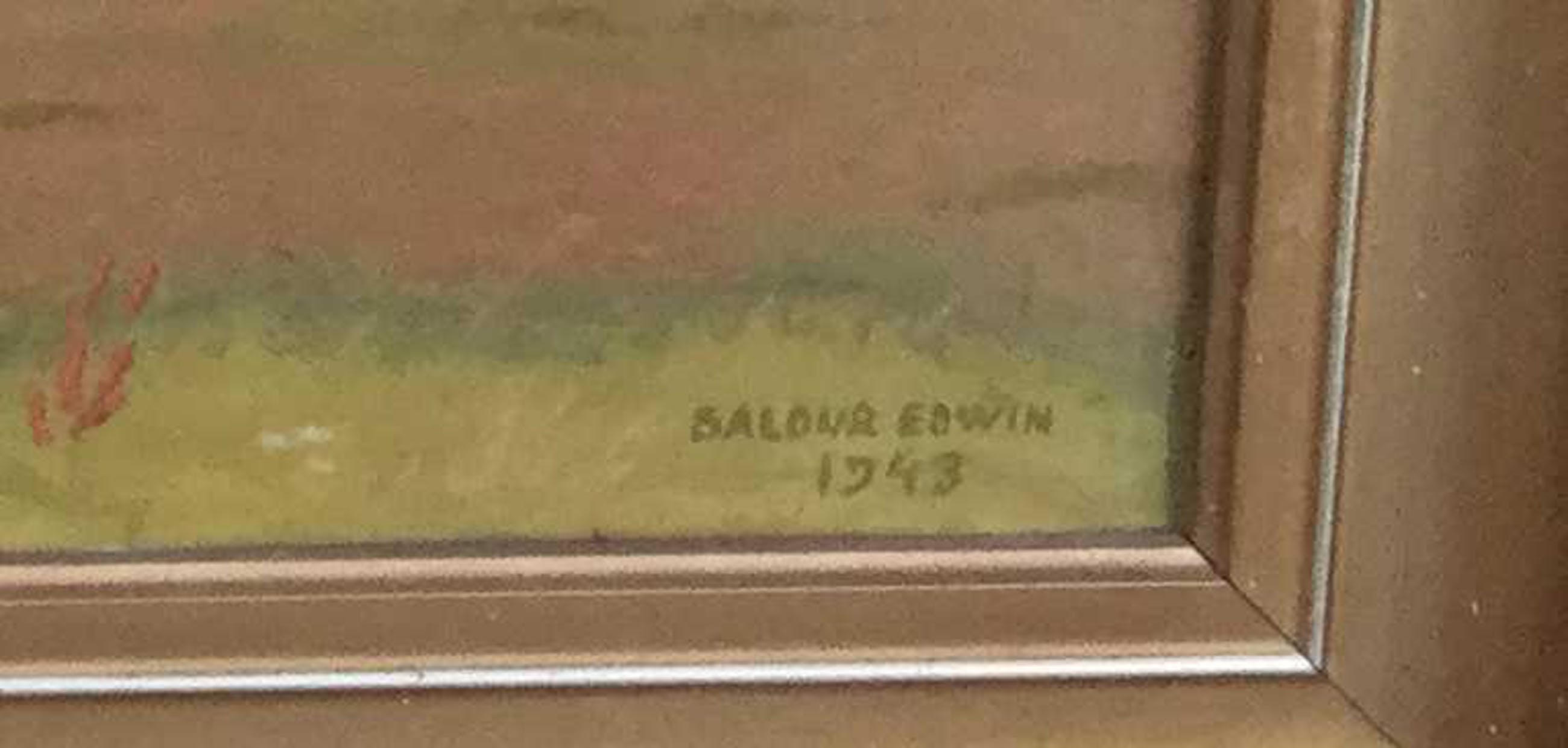 C4421D Baldur Edwin Nielsen Koe en paard in landschap Olie op paneel, rechtsonder gedateerd 1943 Paneelmaat 27.5x40.5 cm, lijstmaat 35.5 x 48.5 cm
