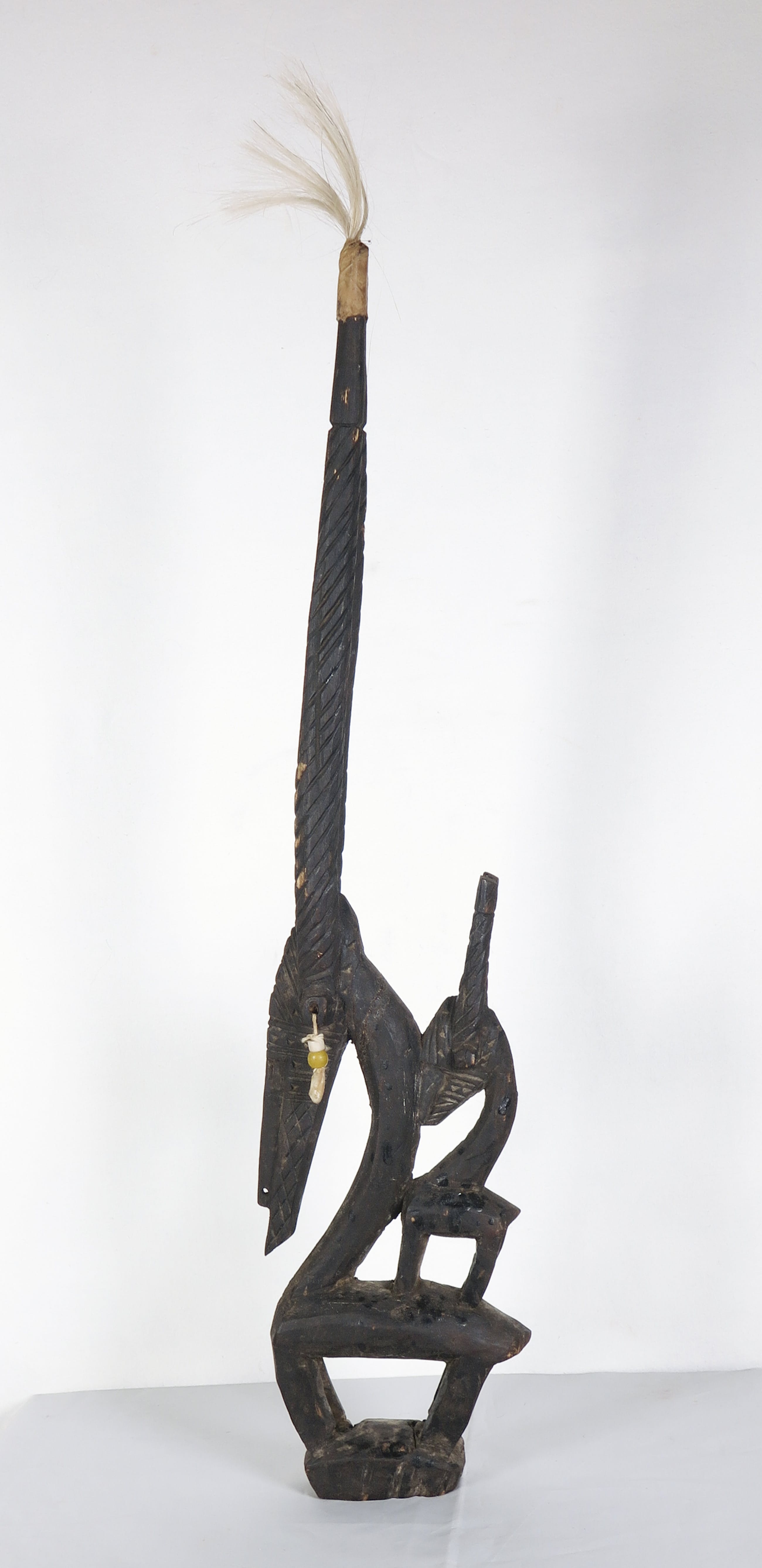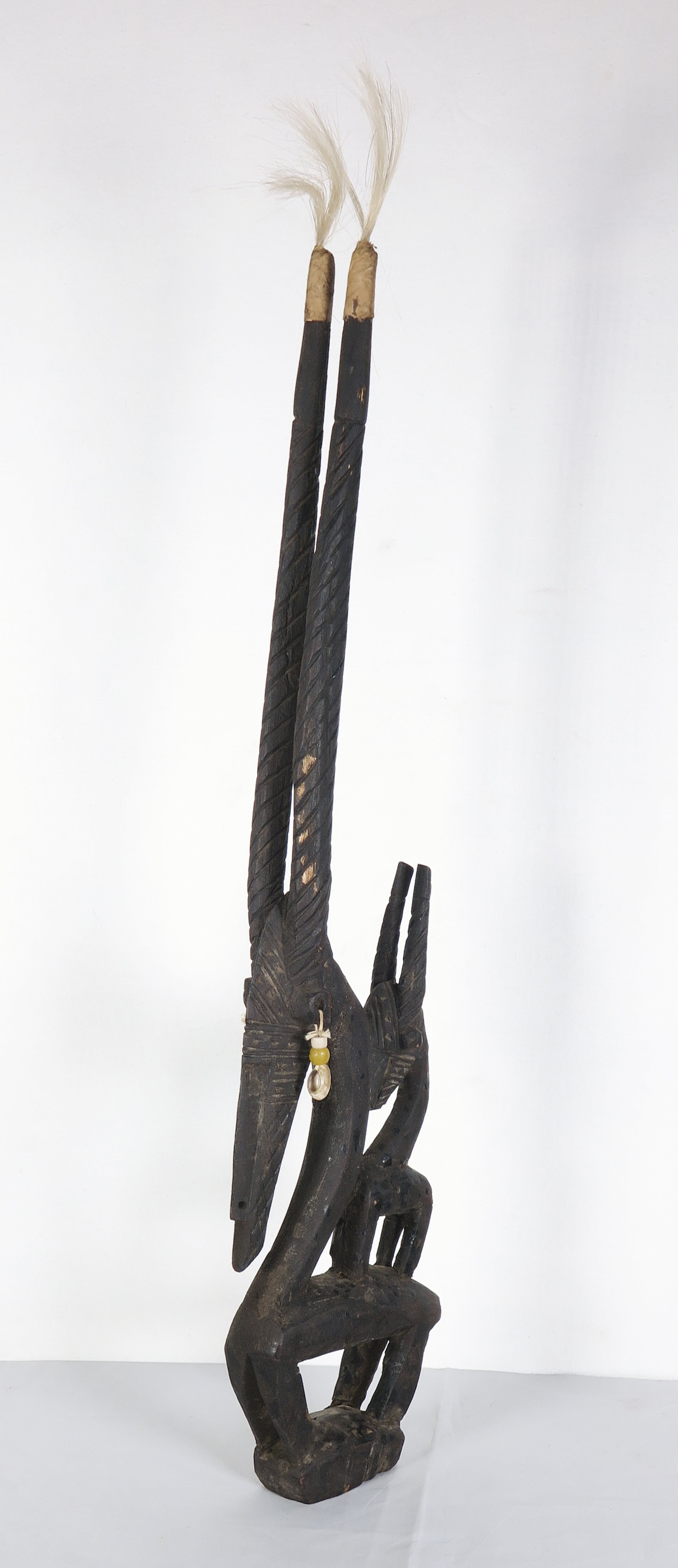 Zeldzame Ciawara antilope met pluimen en een kauri schelpen aan de zijkant. Afkomstig van de Bamana stam uit Mali