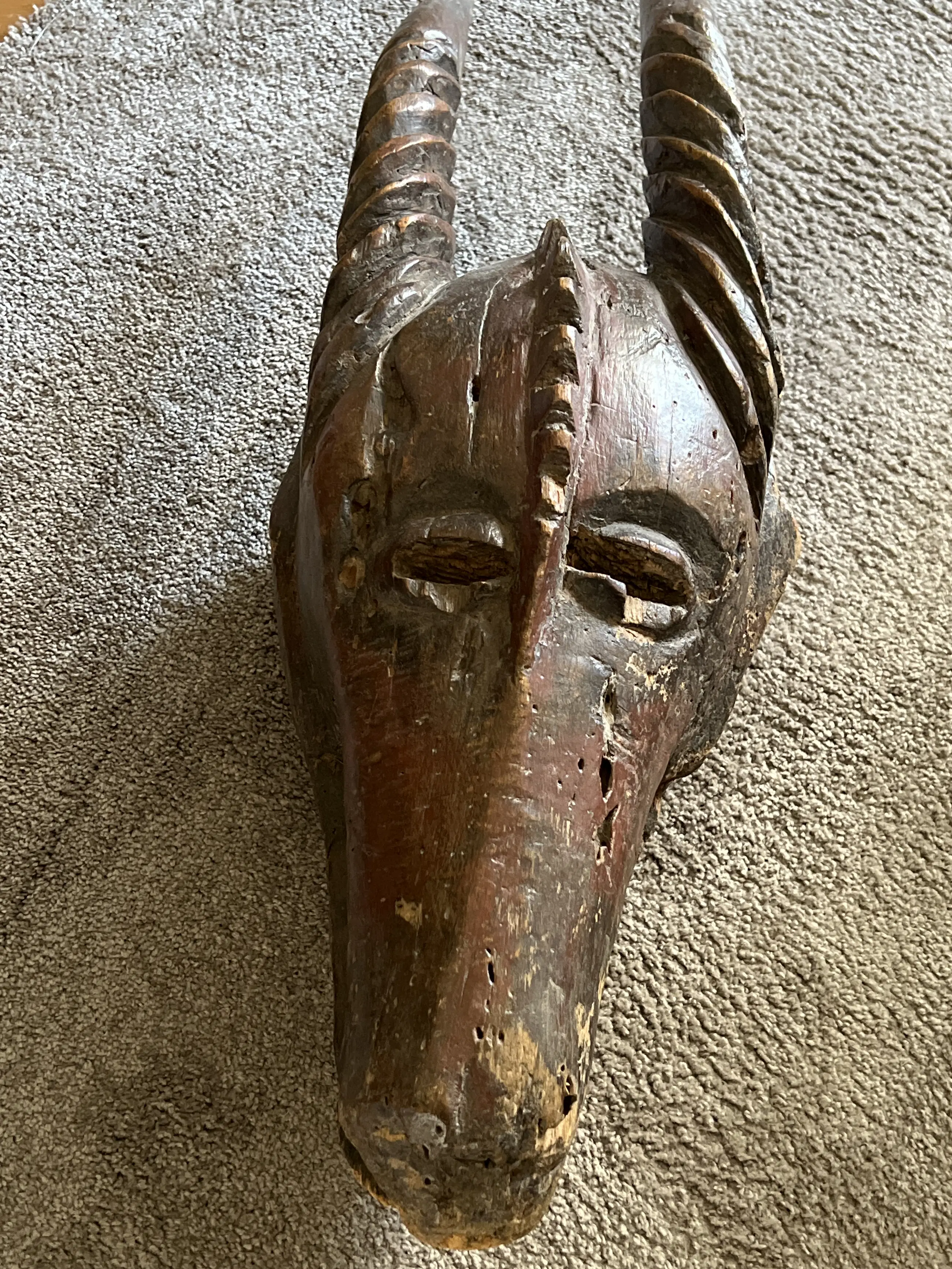 Dit masker is van hout en komt uit Mali. Bambara Het is van hout met resten beschildering Komt uit de collectie van een kunstenaar. Ger Daniels Het masker is in redelijke tot matige conditie