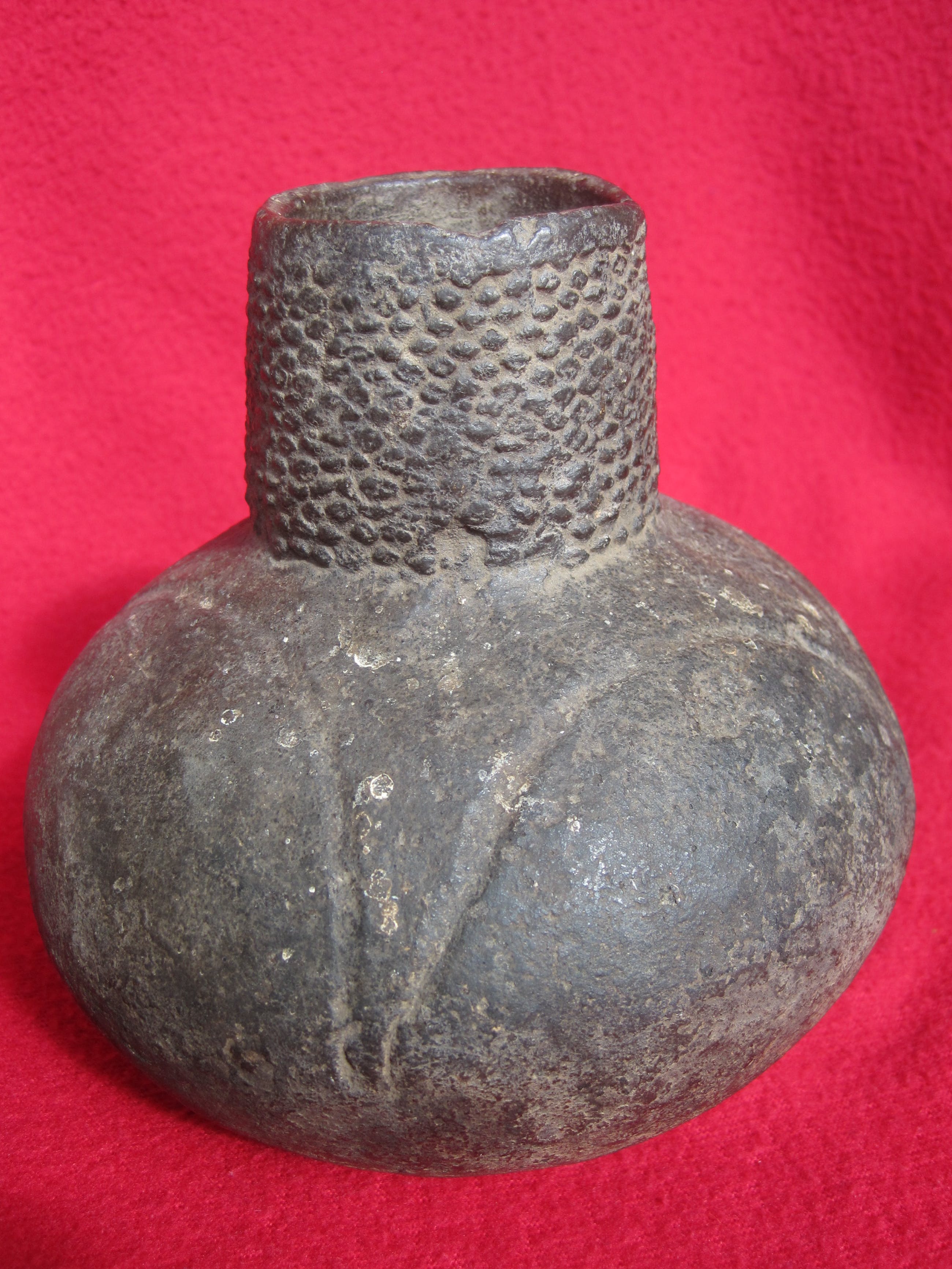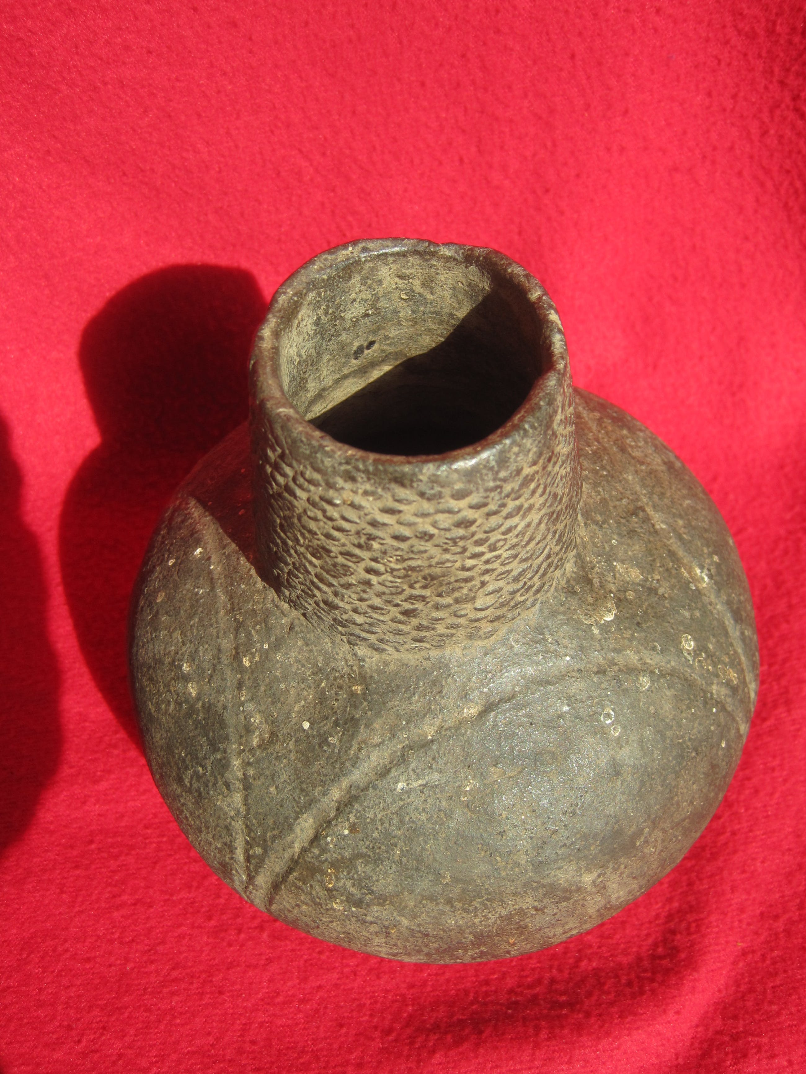 Deze 5000 jaar oude pot heb ik plm. 45 jaar geleden zelf gekocht op de rommelmarkt in Luik België. Pas jaren later kwam ik er achter dat deze pot van de zgn. Bandkeramiekers uit het Limburgse stamde. De pot verkeert in een zeer goede onbeschadigde staat.