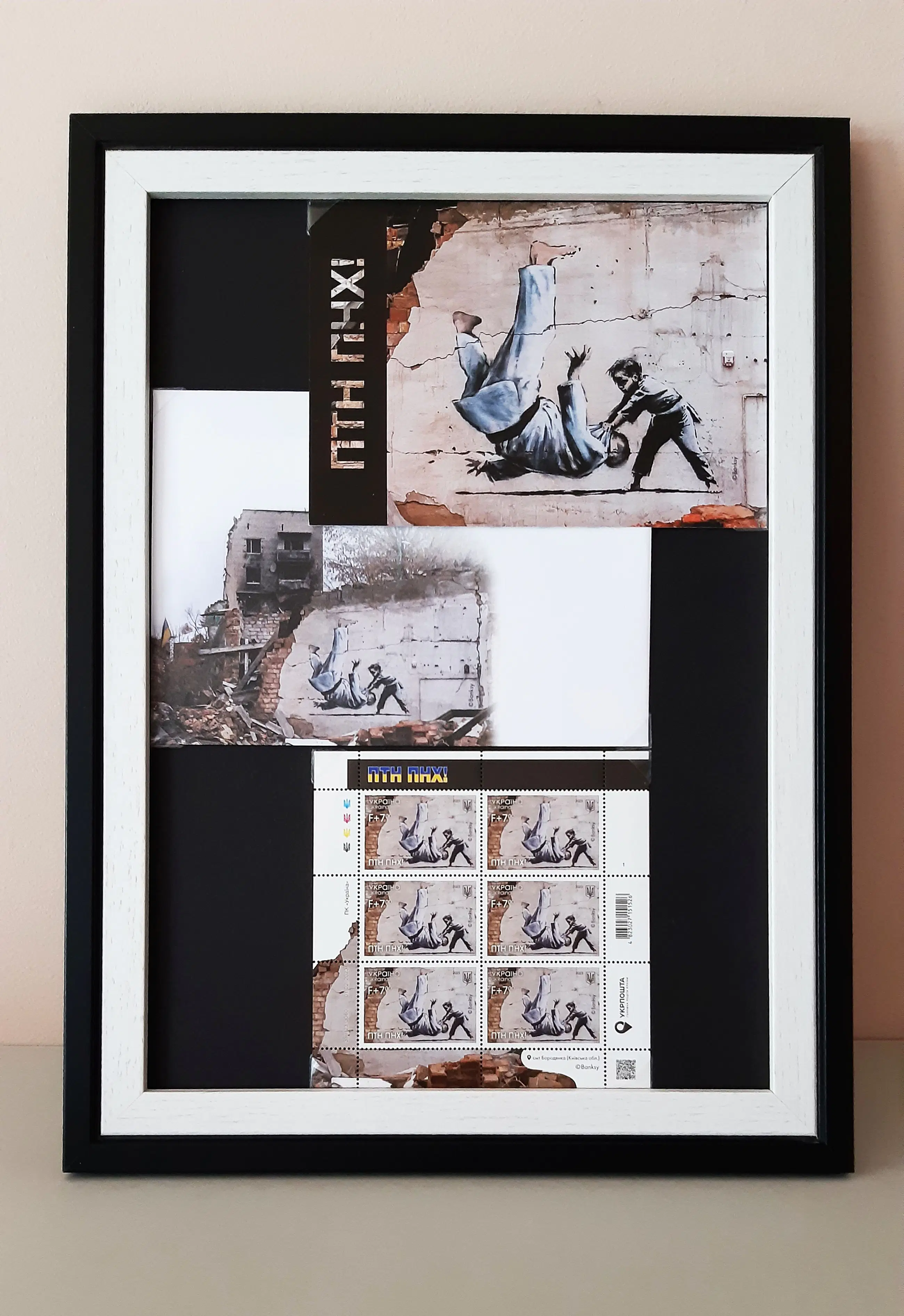Banksy (1974) - FCK PTN! Banksy ingelijst - Complete set - Postzegels (6 stuks) + envelop + ansichtkaart