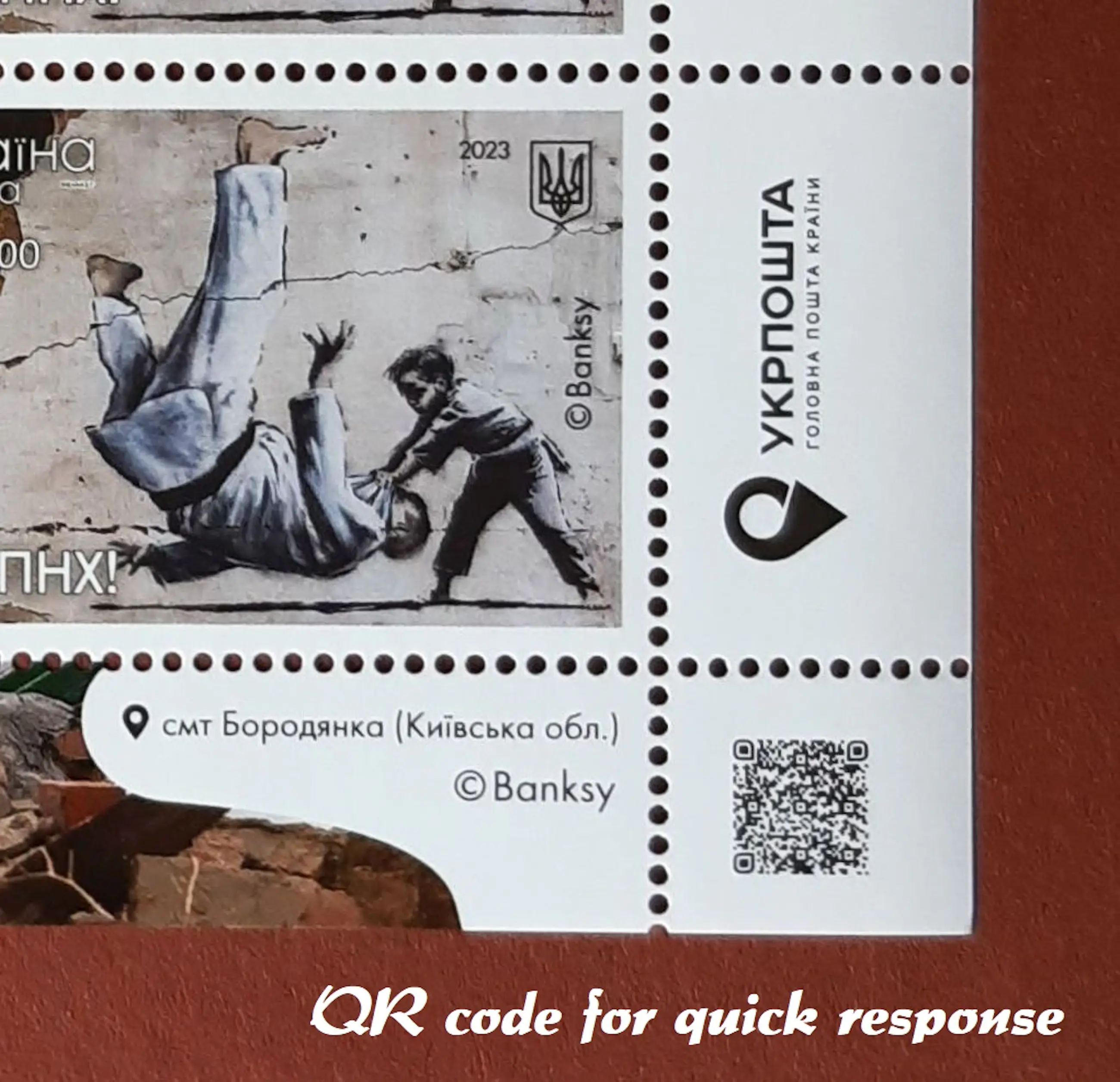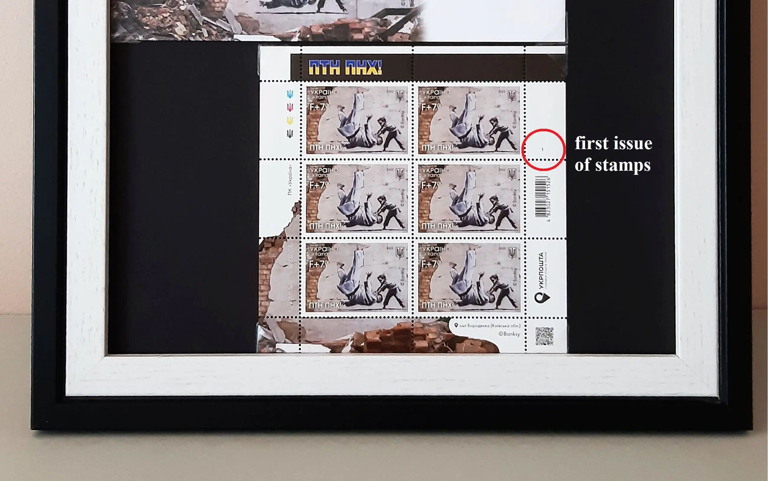 "FCK PTN (PTN PNKh)!" is de eerste postzegel ter wereld met graffiti van Banksy.