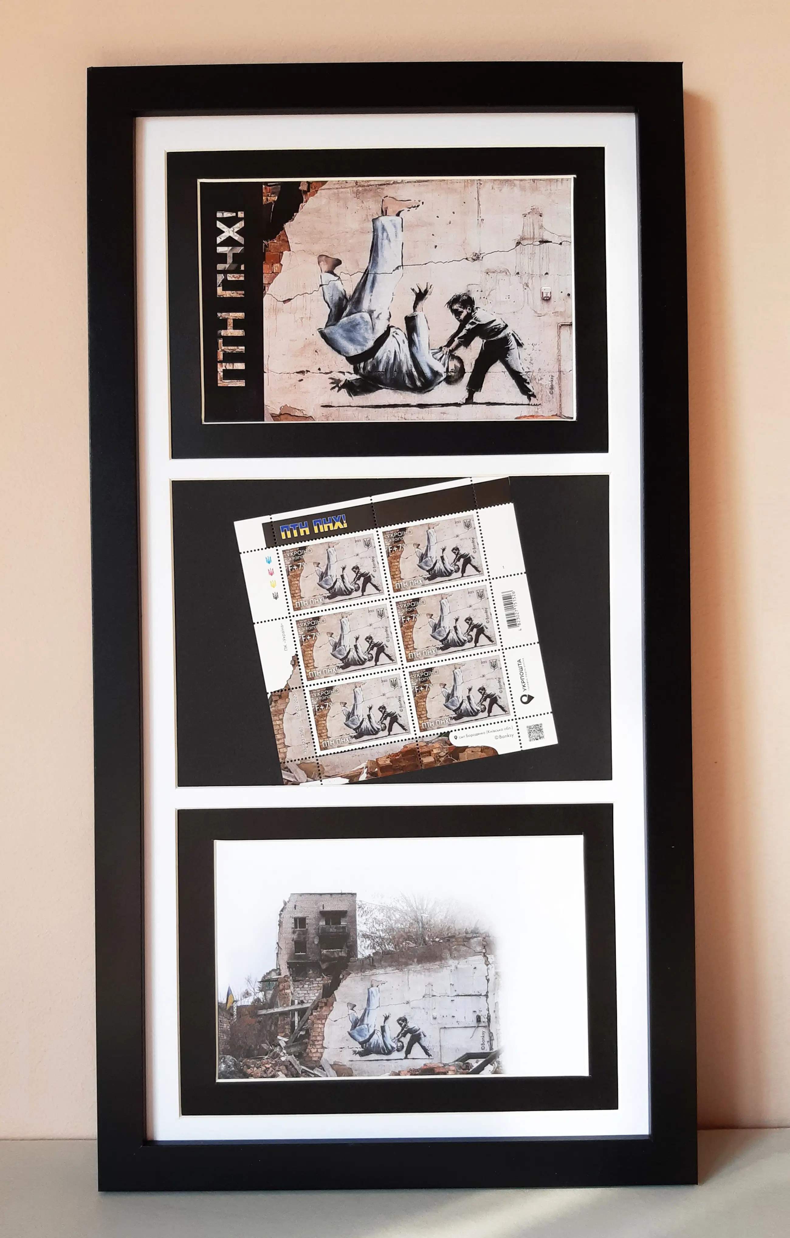 - Postzegelvel met 6 postzegels, briefkaart en envelop - geautoriseerd door @Banksy.