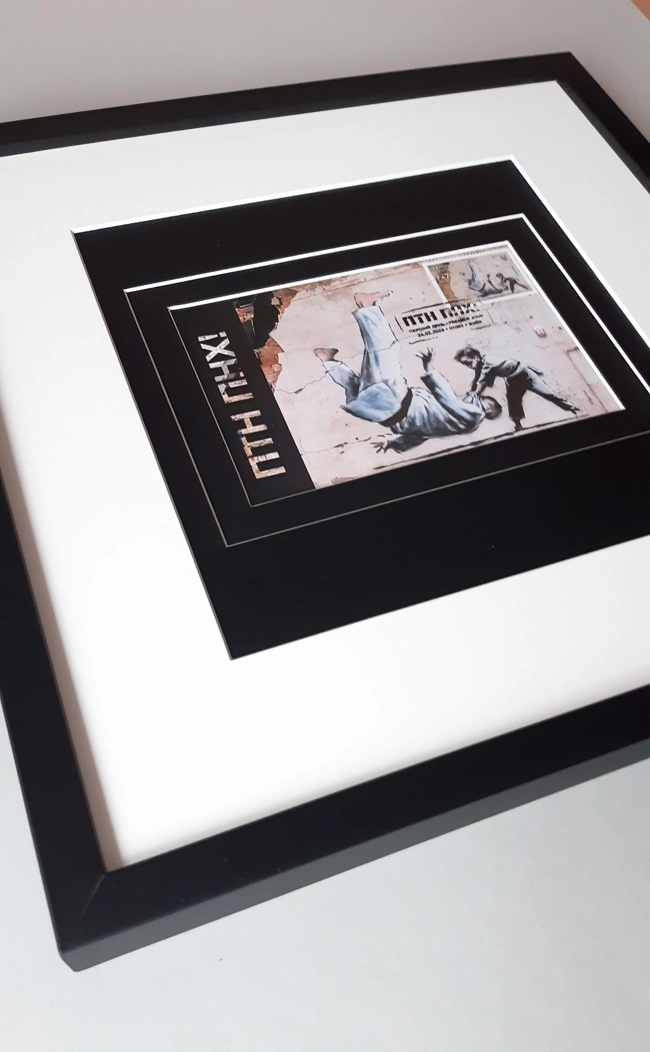 Autoriteitscertificaat: De handtekening van @Banksy op het bord is aanwezig op de rechtervoorkant van de kaart.