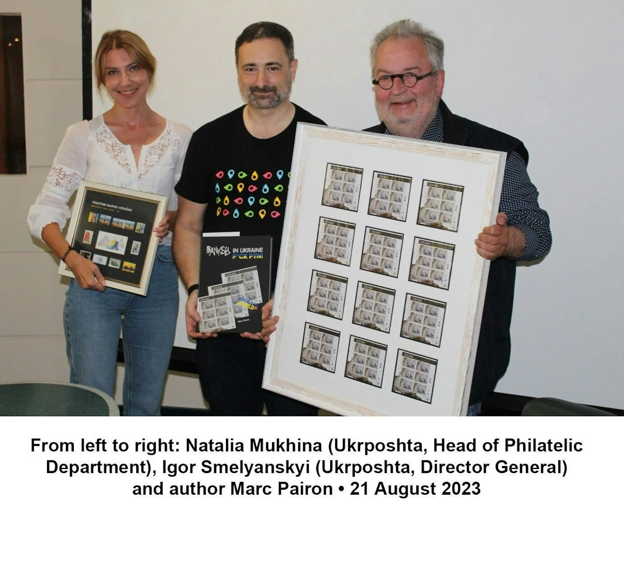 In het kunstboek "BANKSY IN OEKRAÏNE - F*CK PTN!" toont de Belgische bestsellerauteur en kunstkenner Mark Pyron een van de pagina's van het mysterieuze werk van Banksy, dat hij in Oekraïne maakte tijdens het eerste jaar van de grootschalige Russische invasie. Het boek wordt aangevuld met een beschrijving en illustraties van de postzegeluitgave "PTN PNH!", die op 24 februari 2023 door Ukrposhta werd uitgegeven.