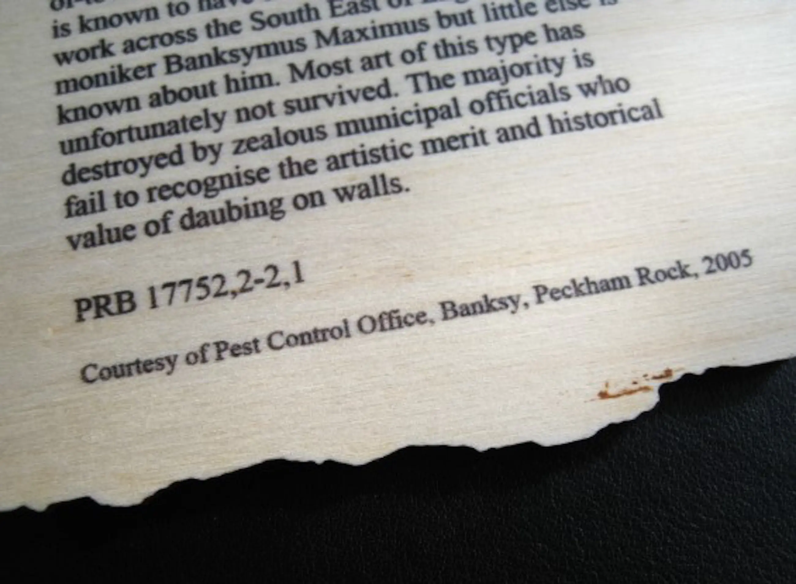 De houten replica is gemaakt met toestemming van Pest Control en is dus een officieel werk van Banksy.