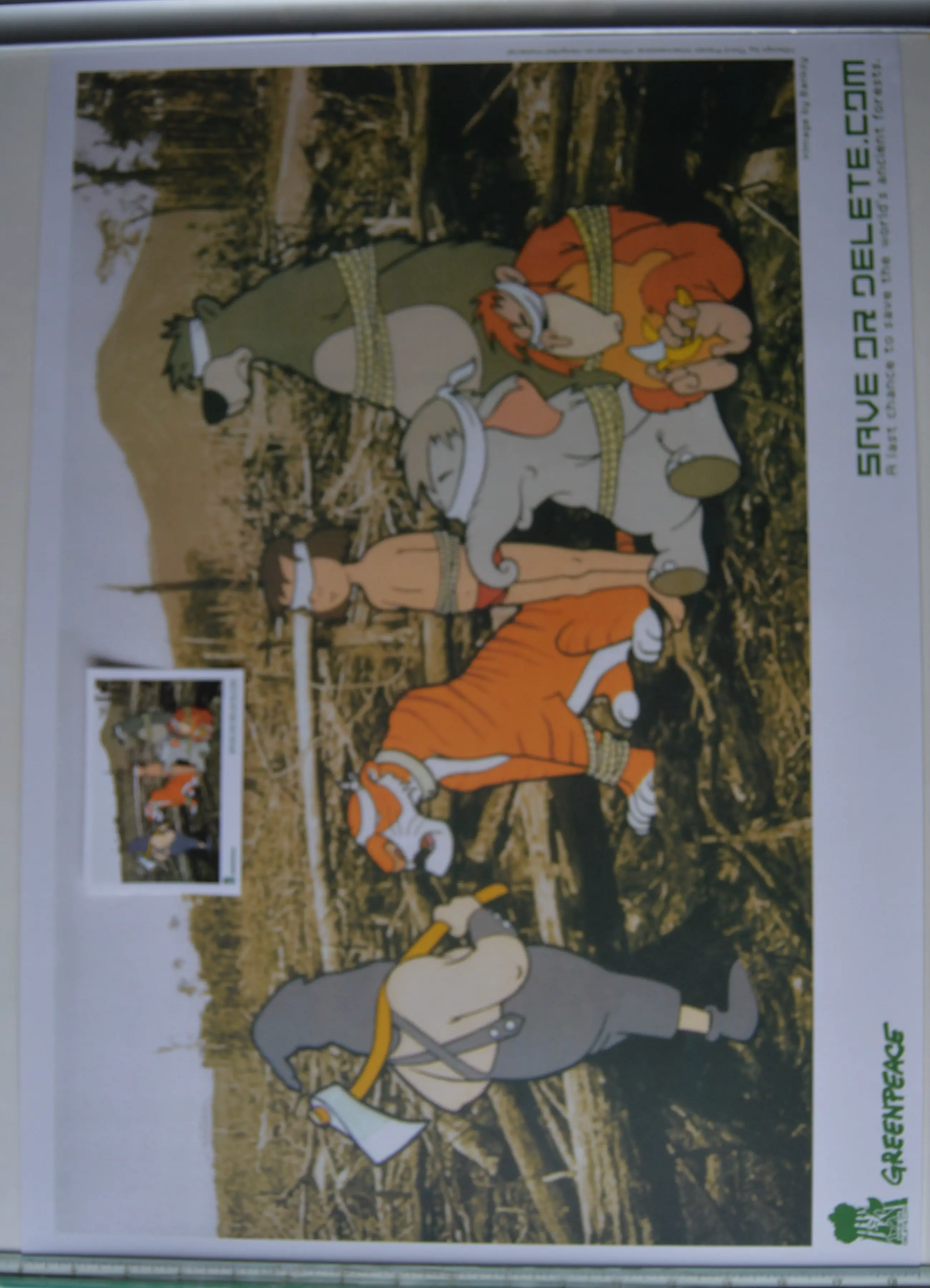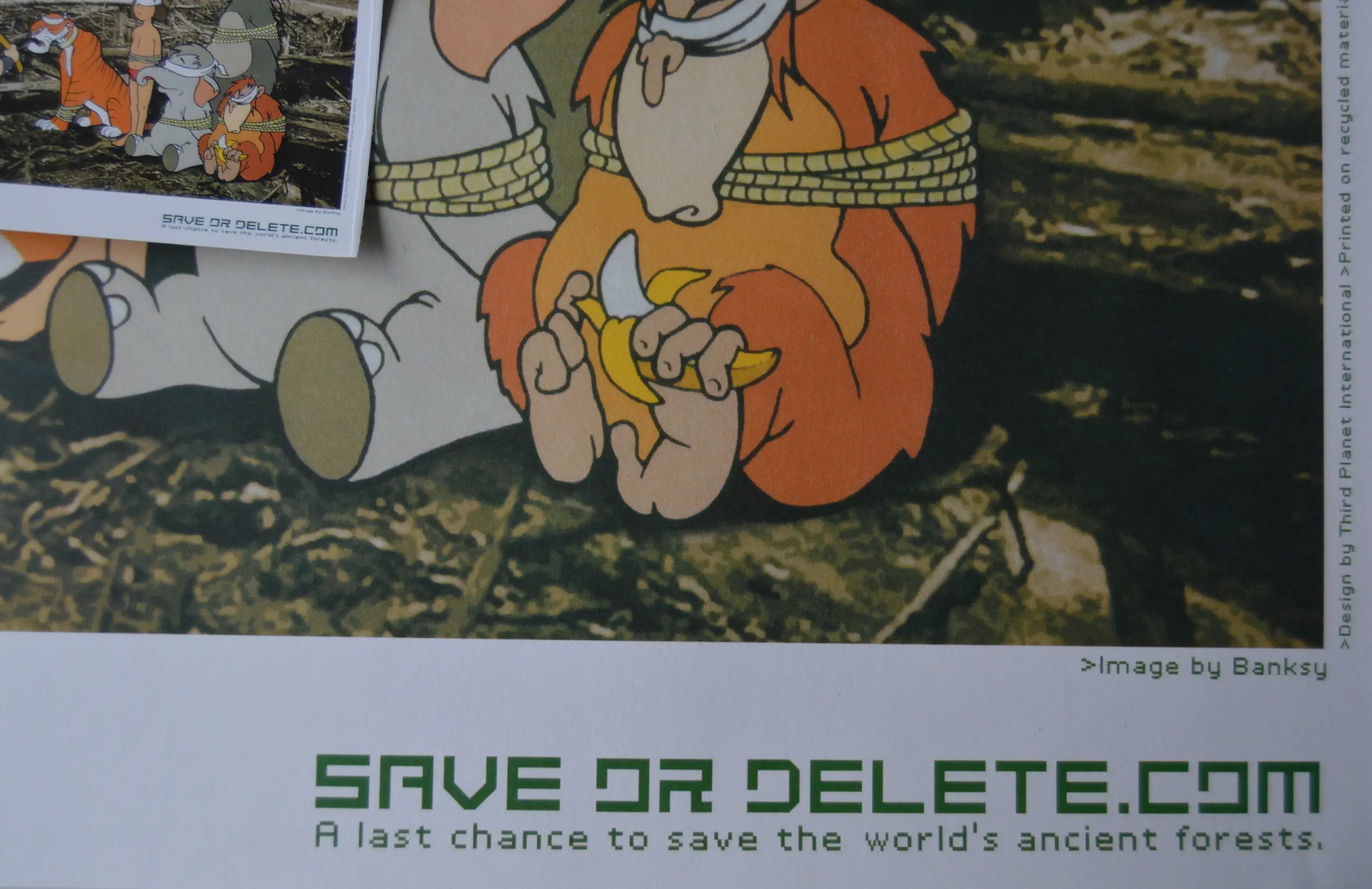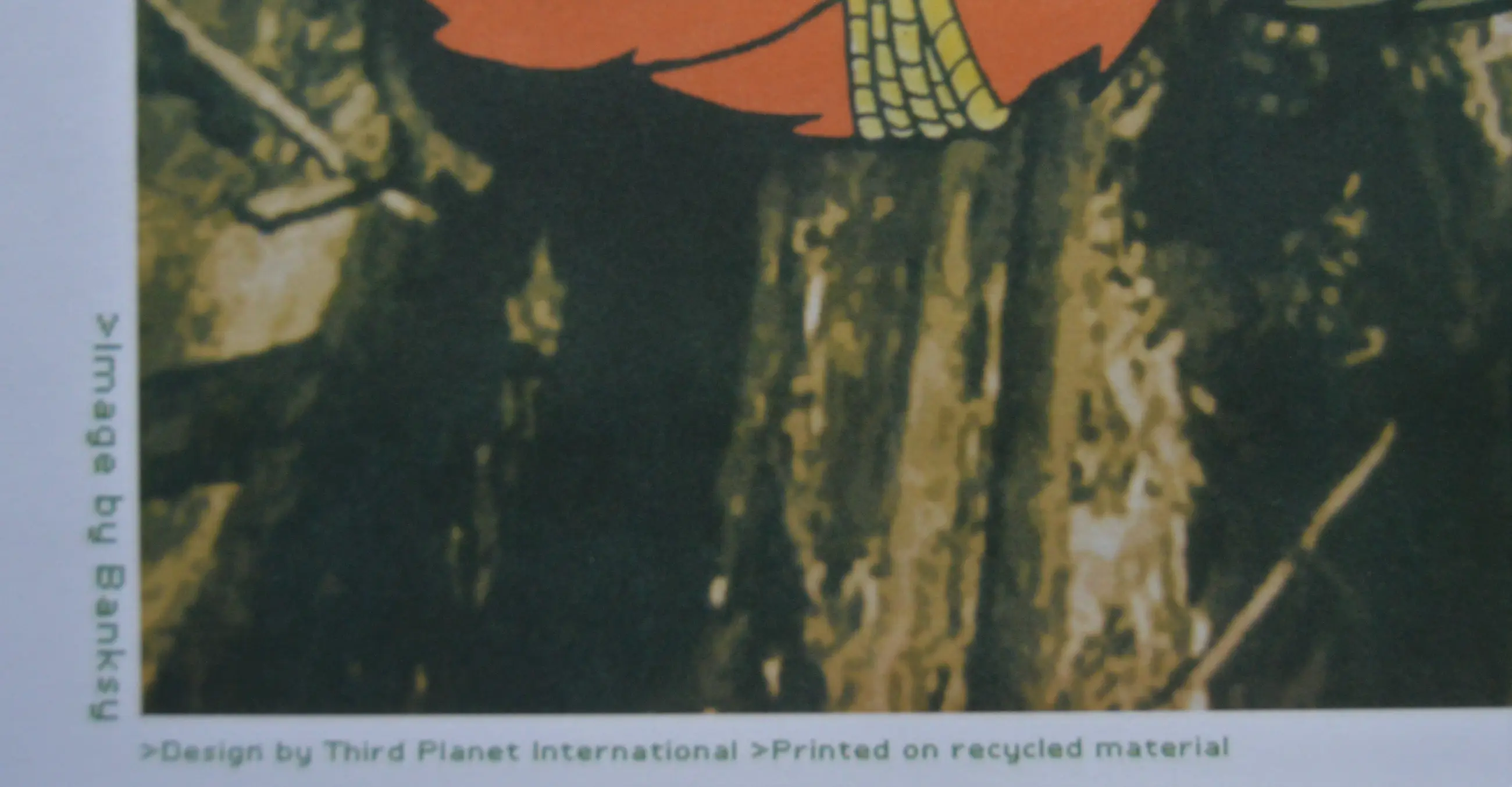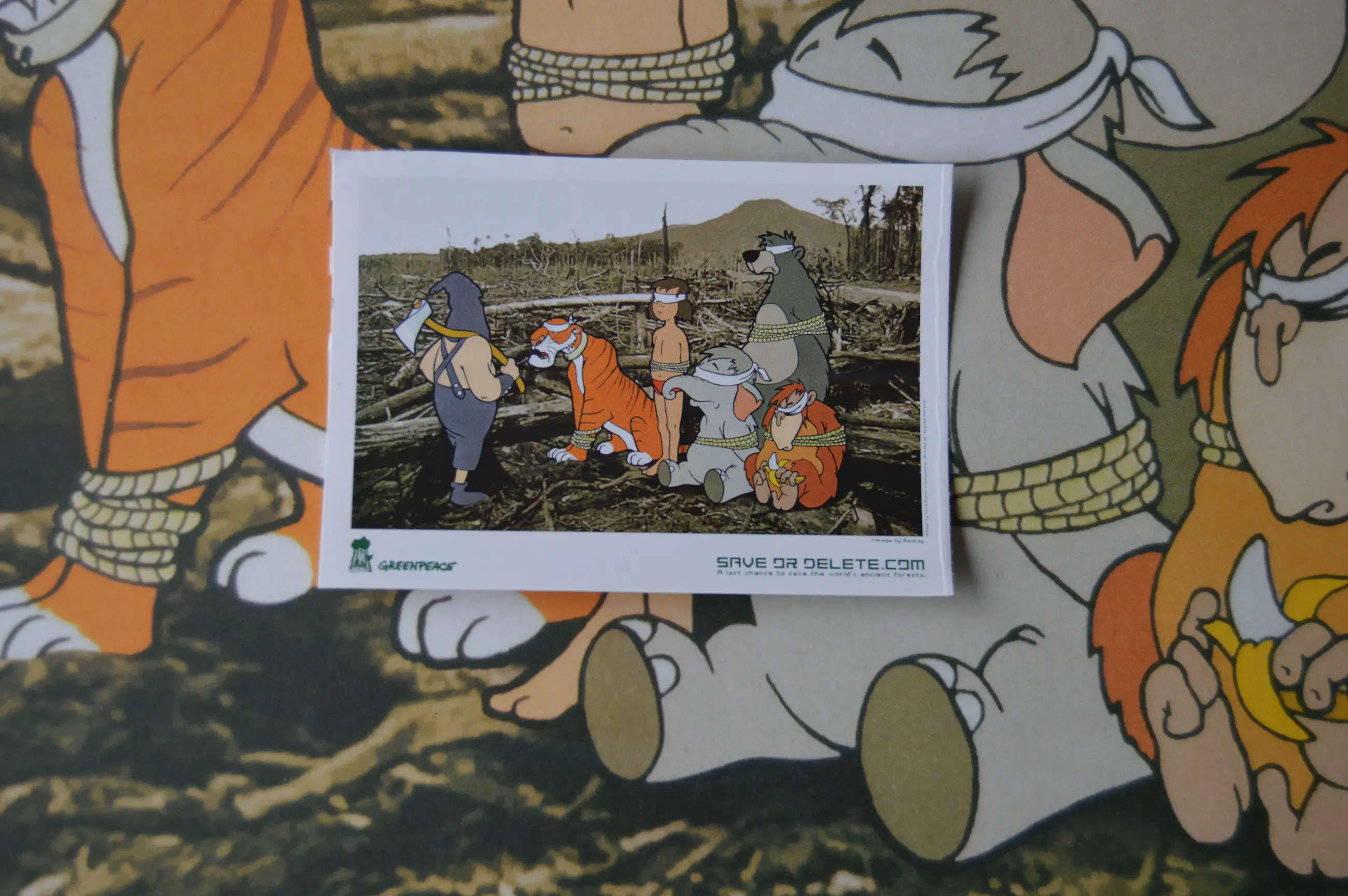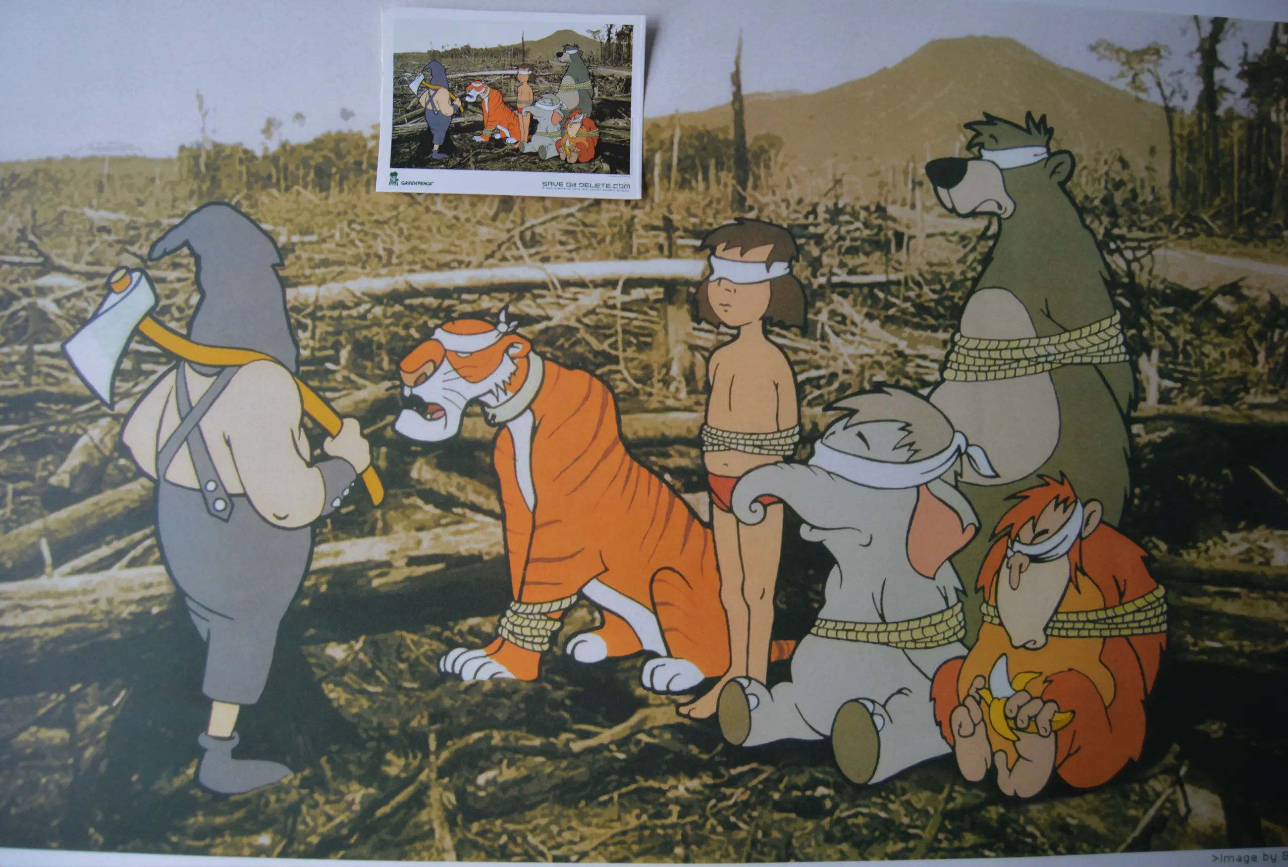 Parodie op Disneys Jungle Book door Banksy Poster is uitgebracht door Greenpeace voor een campagne tegen ontbossing. Met een originele stkker! Gedrukt op gerecyceld papier! Verzending aangetekend in koker.
